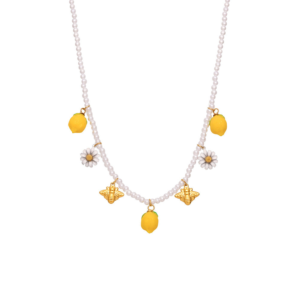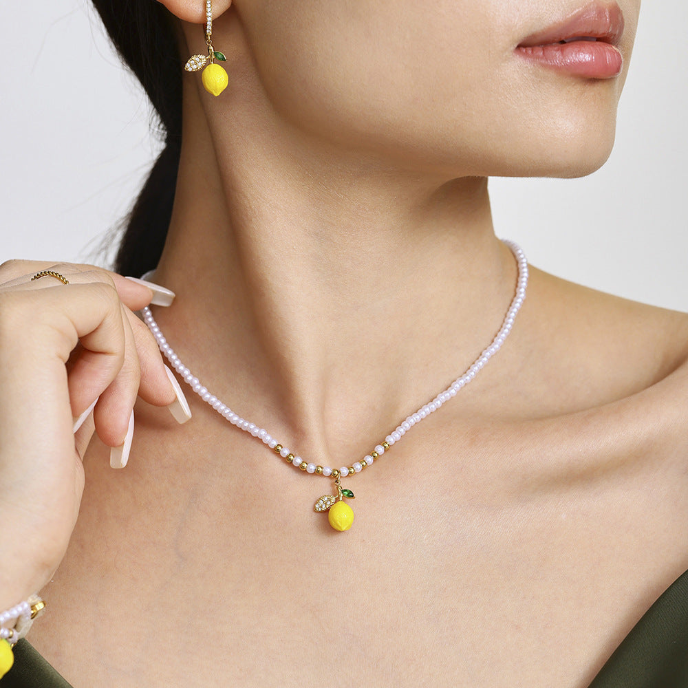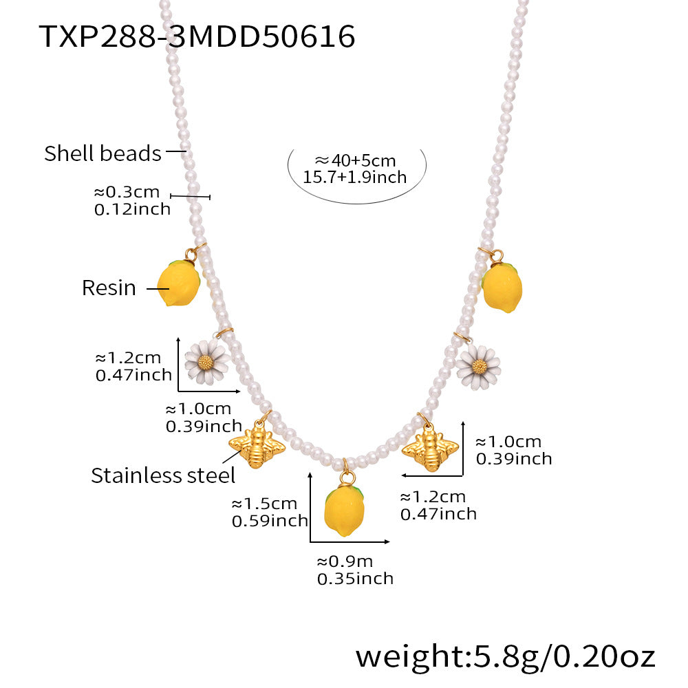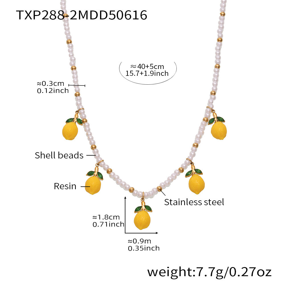B廠【TXP288】歐美飾品不鏽鋼貝珠串珠項鍊小檸檬檸檬吊墜DIY多配件 25.06-3
