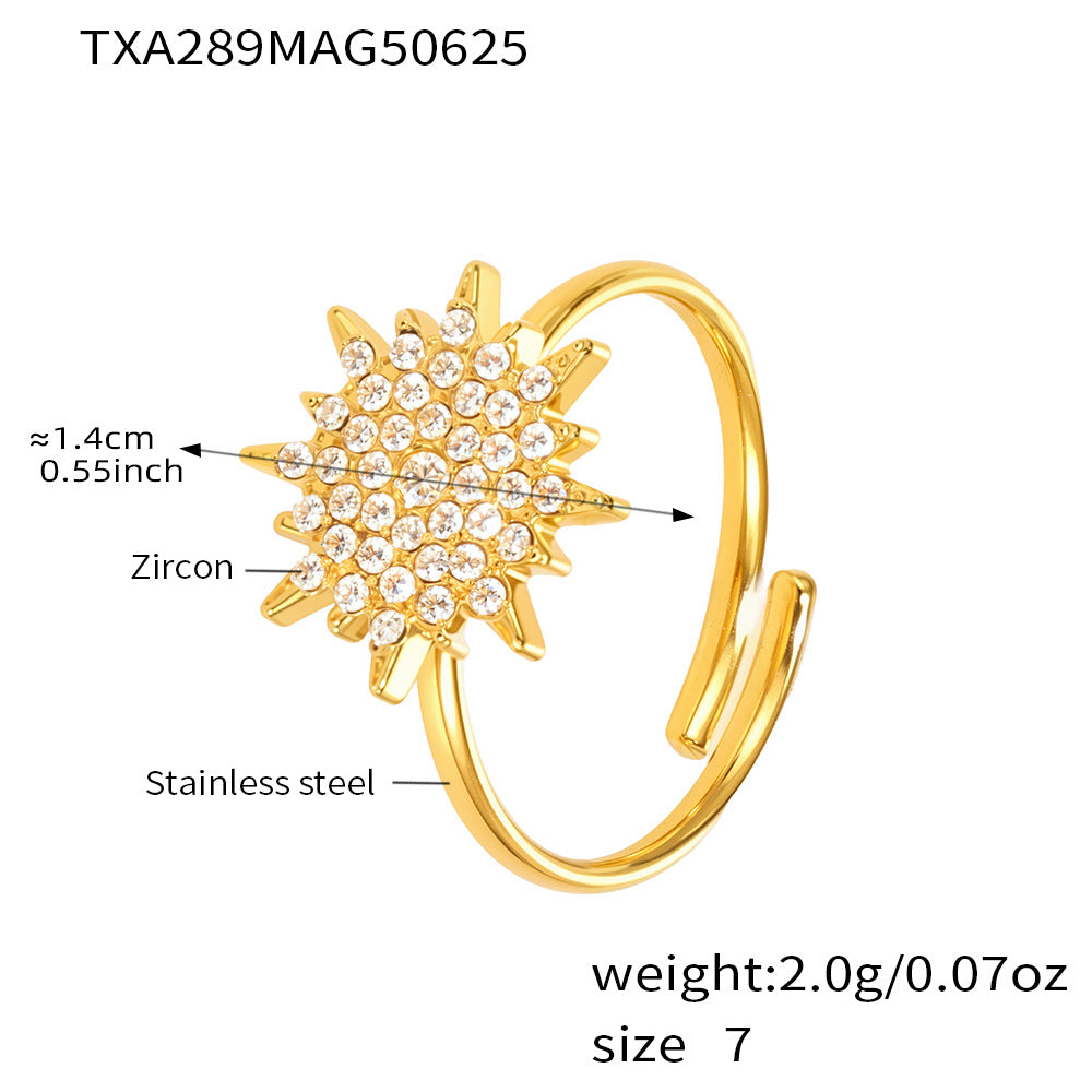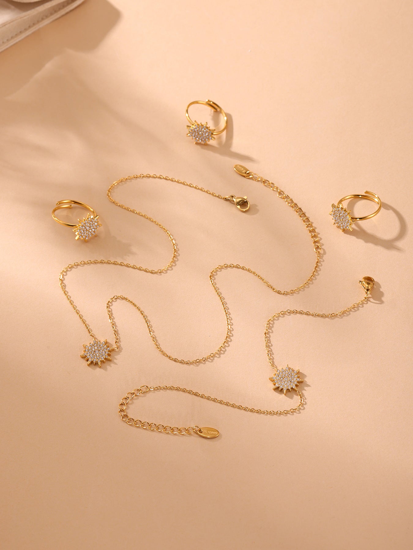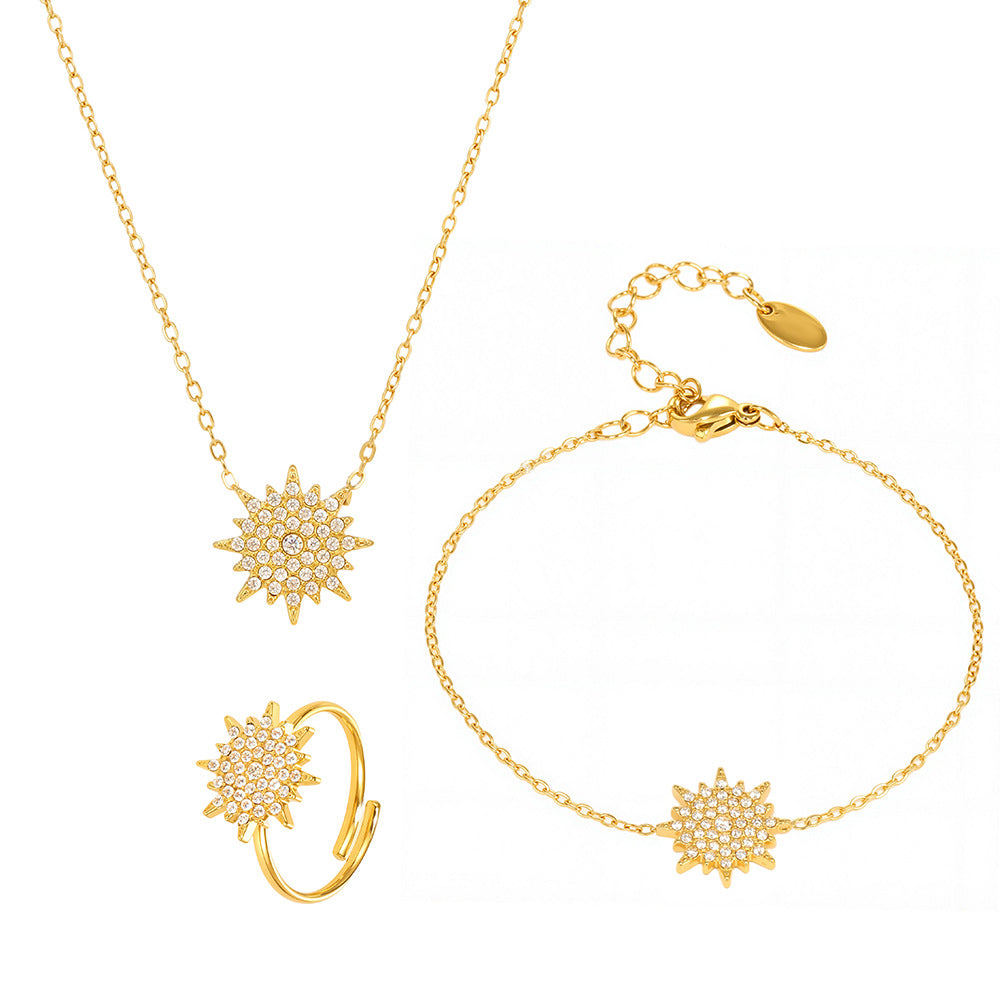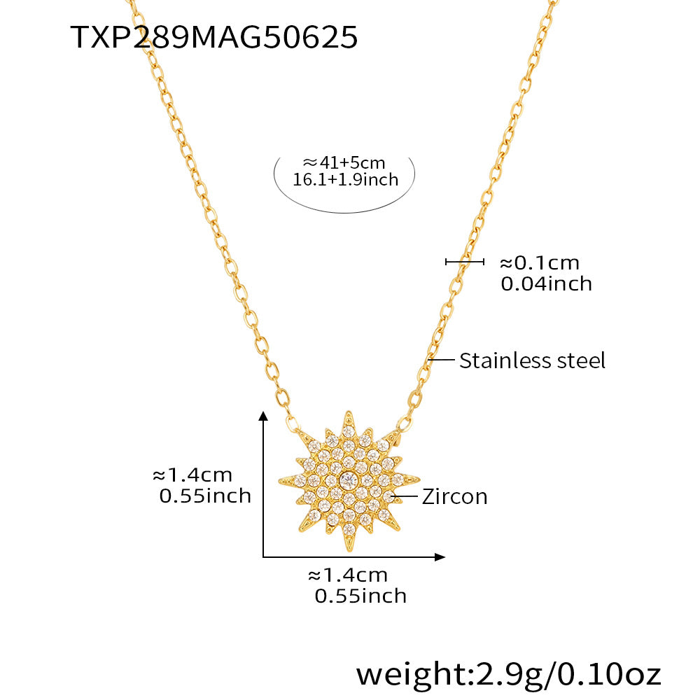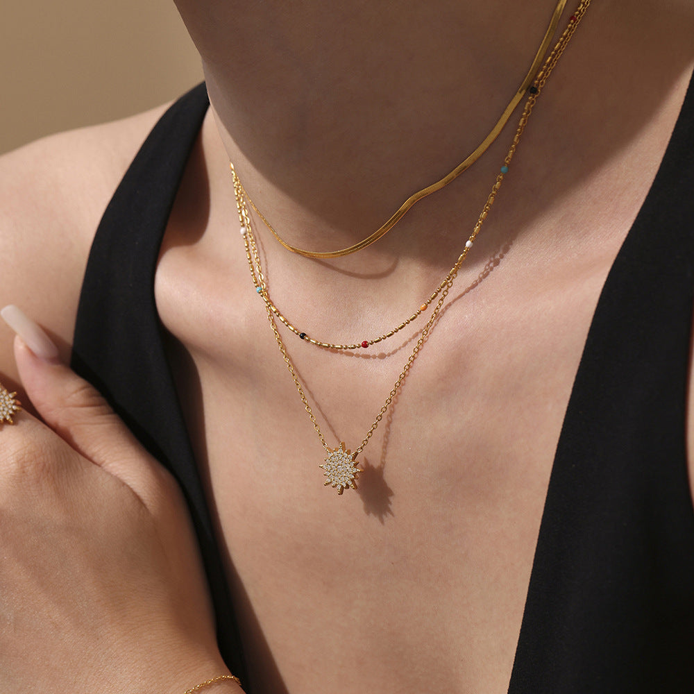 B廠【TXP289】超閃小太陽鑲嵌5A鋯石鎖骨雙層項鍊戒指組不銹鋼材質 25.07-1