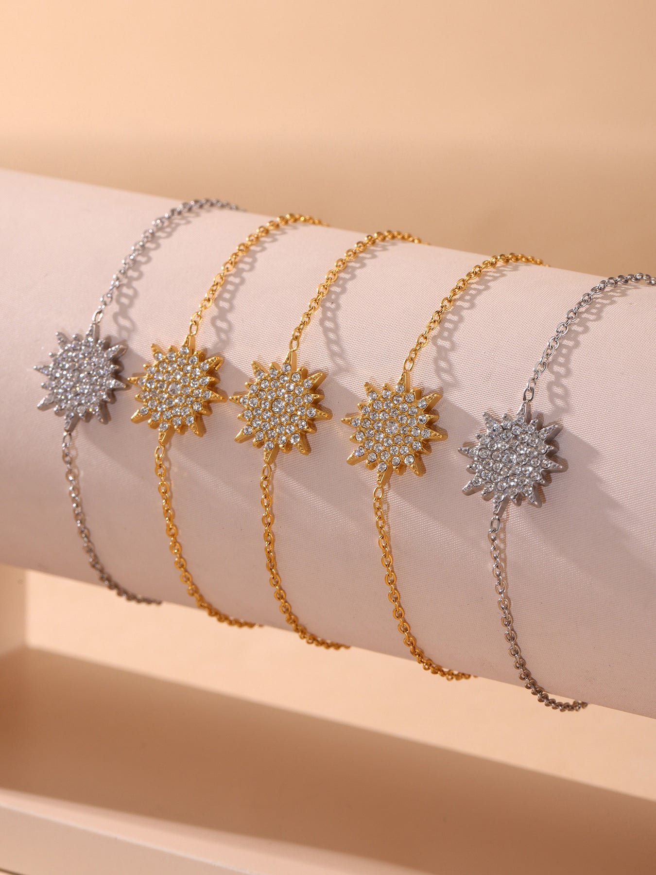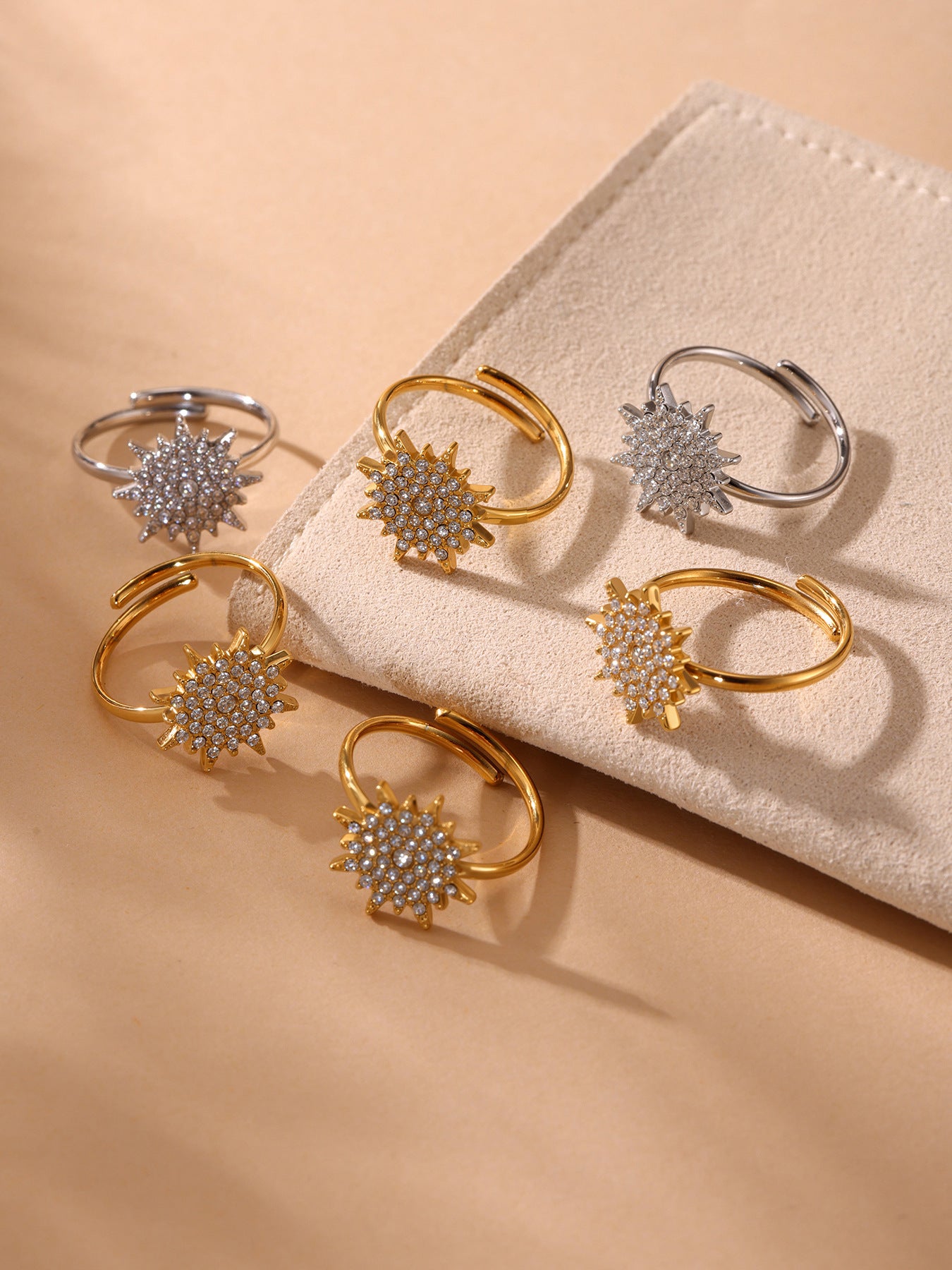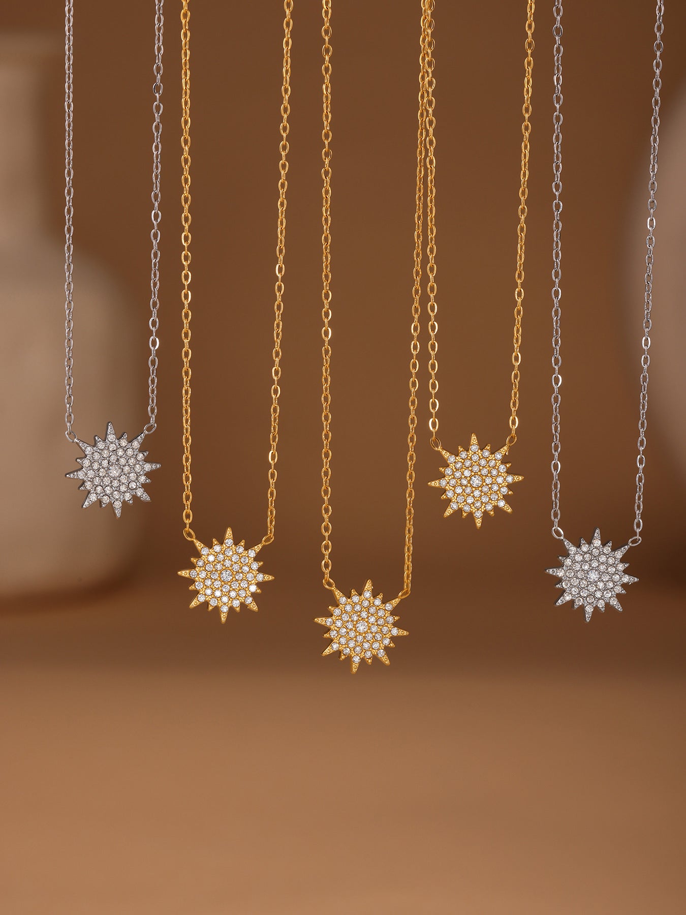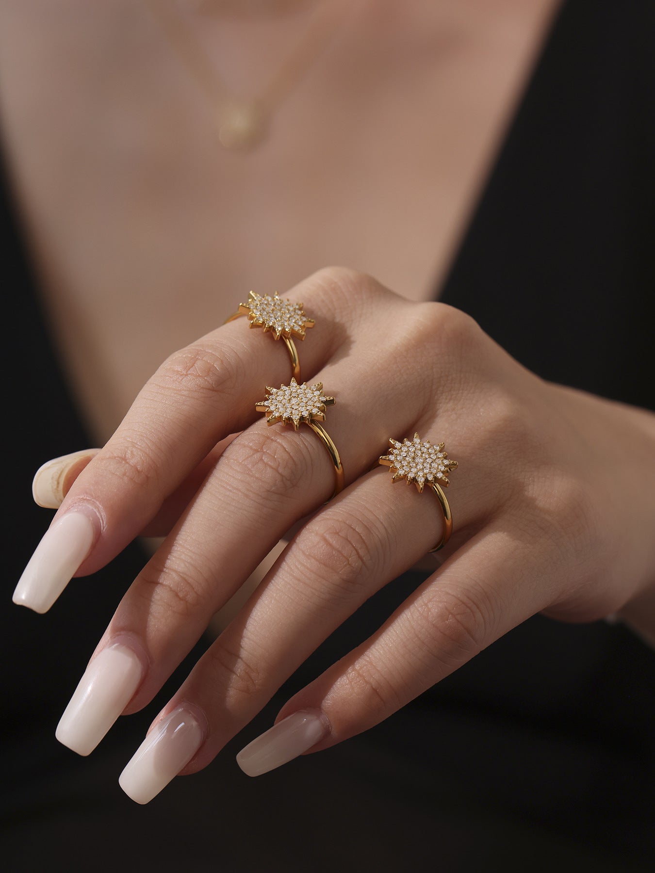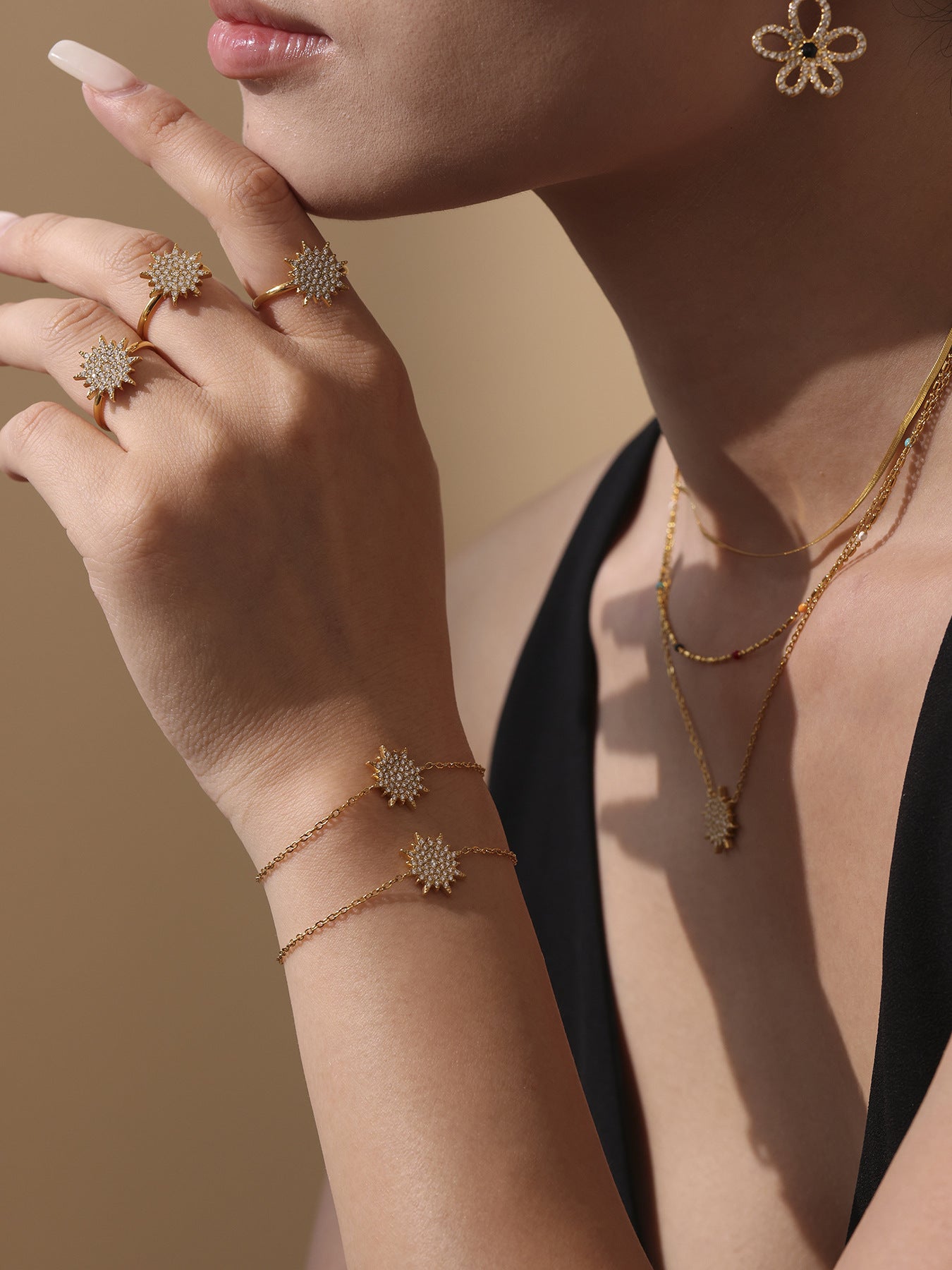B廠【TXP289】超閃小太陽鑲嵌5A鋯石鎖骨雙層項鍊戒指組不銹鋼材質 25.07-1