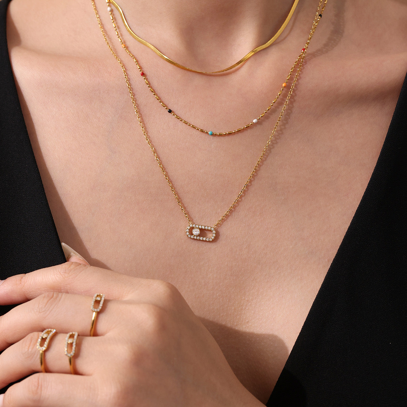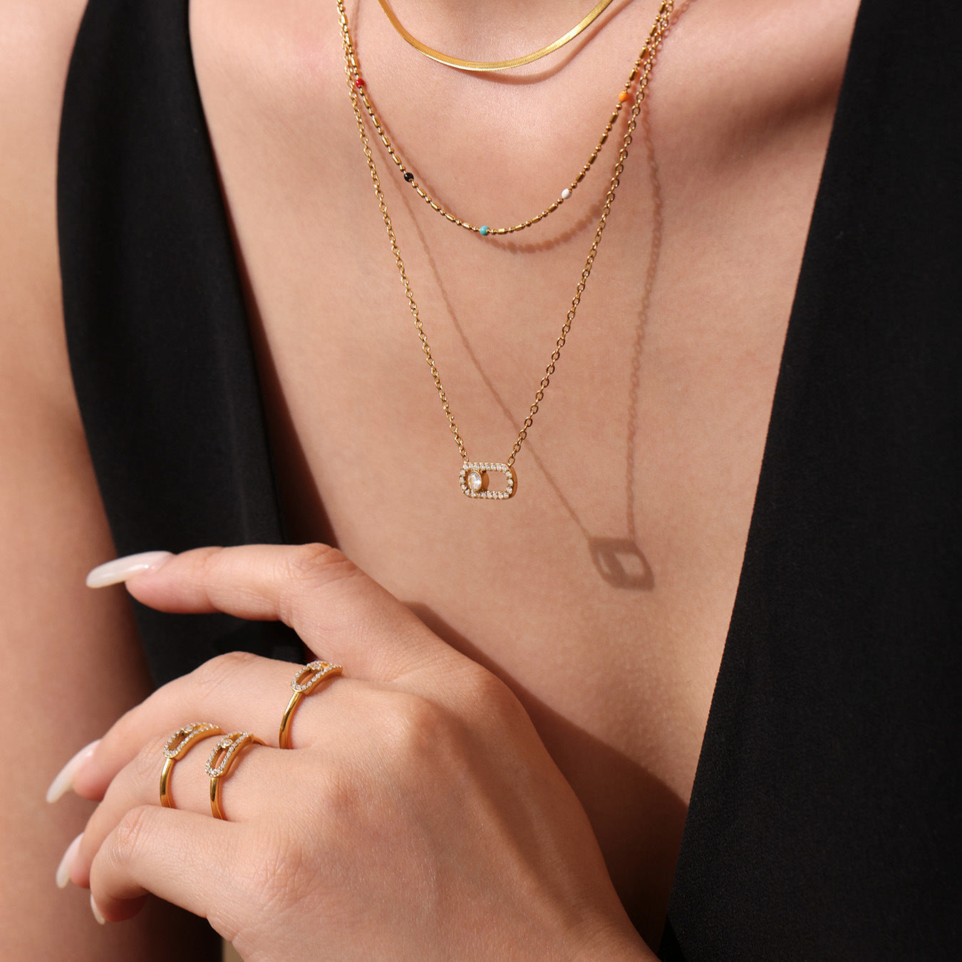 B廠【TXP290】歐美飾品不鏽鋼5A鋯石鎖骨項鍊戒指首飾組18k鍍金不掉色 25.07-1