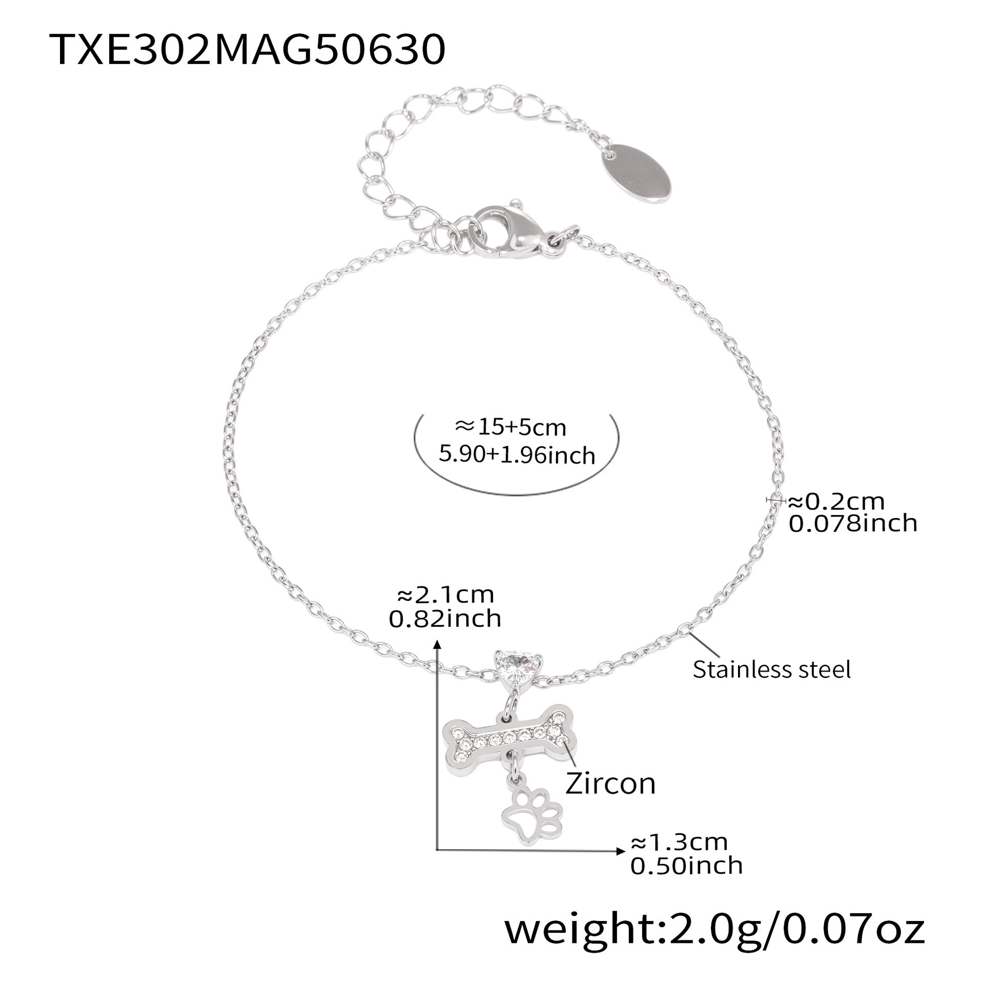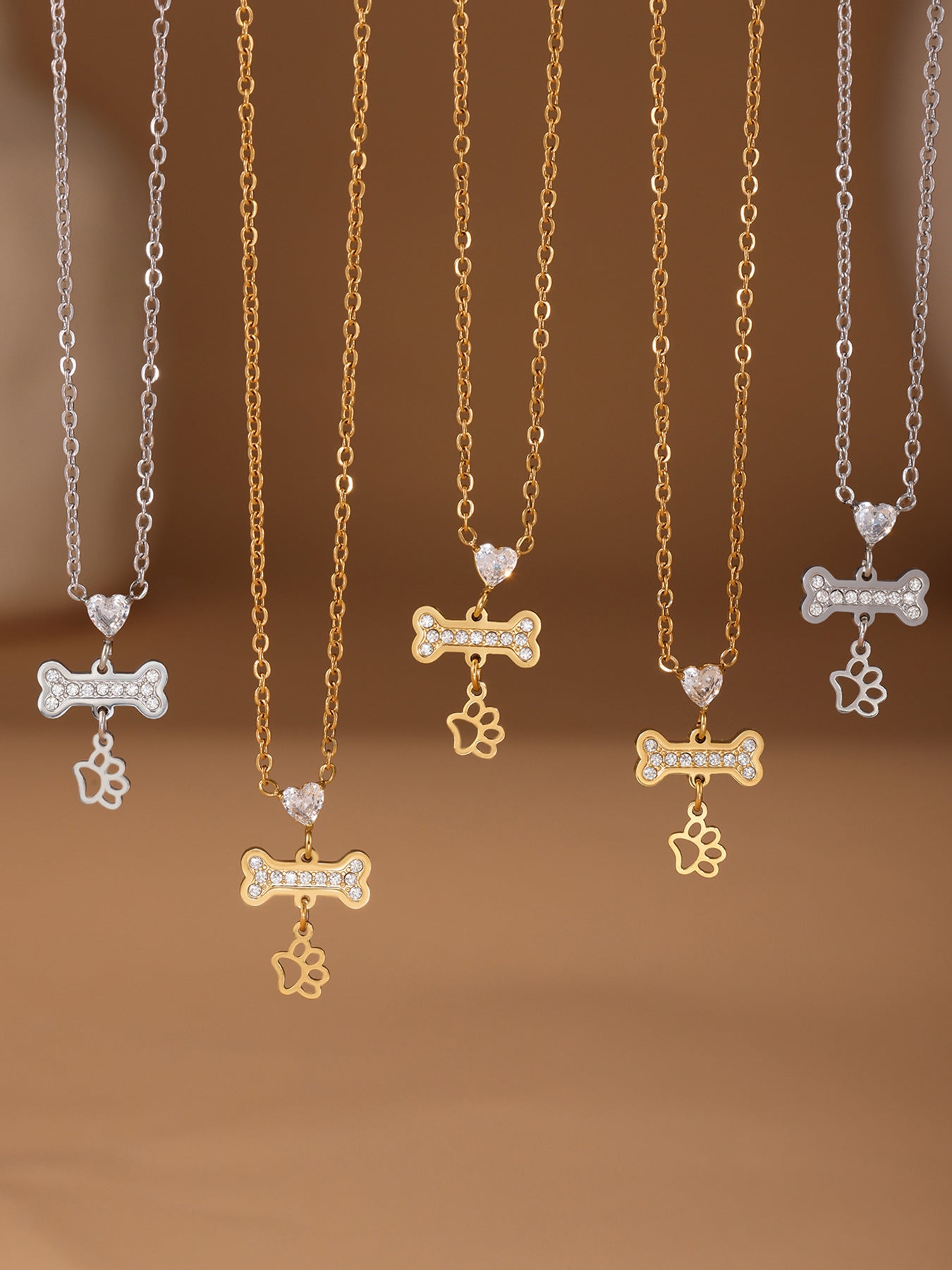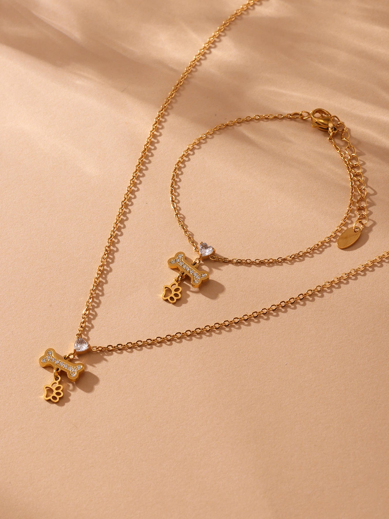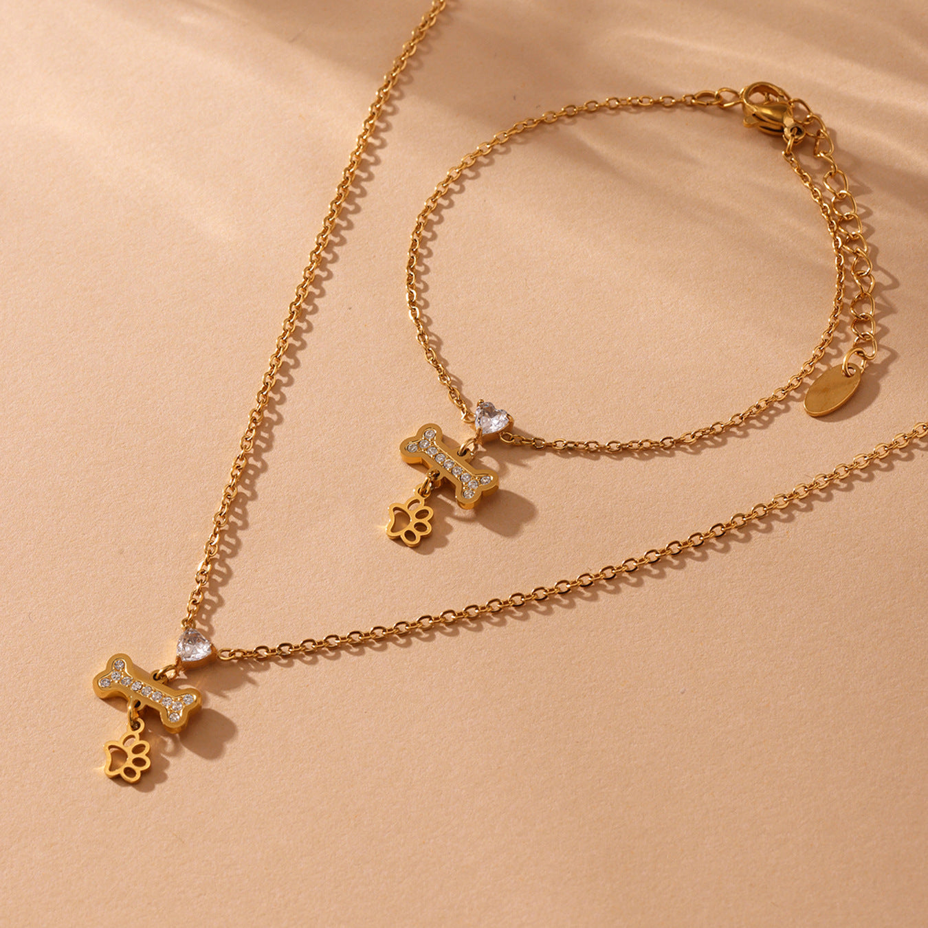 B廠【TXP302】歐美飾品不銹鋼小狗可愛爪子骨頭吊墜鎖骨項鍊手鍊首飾套裝 25.07-2