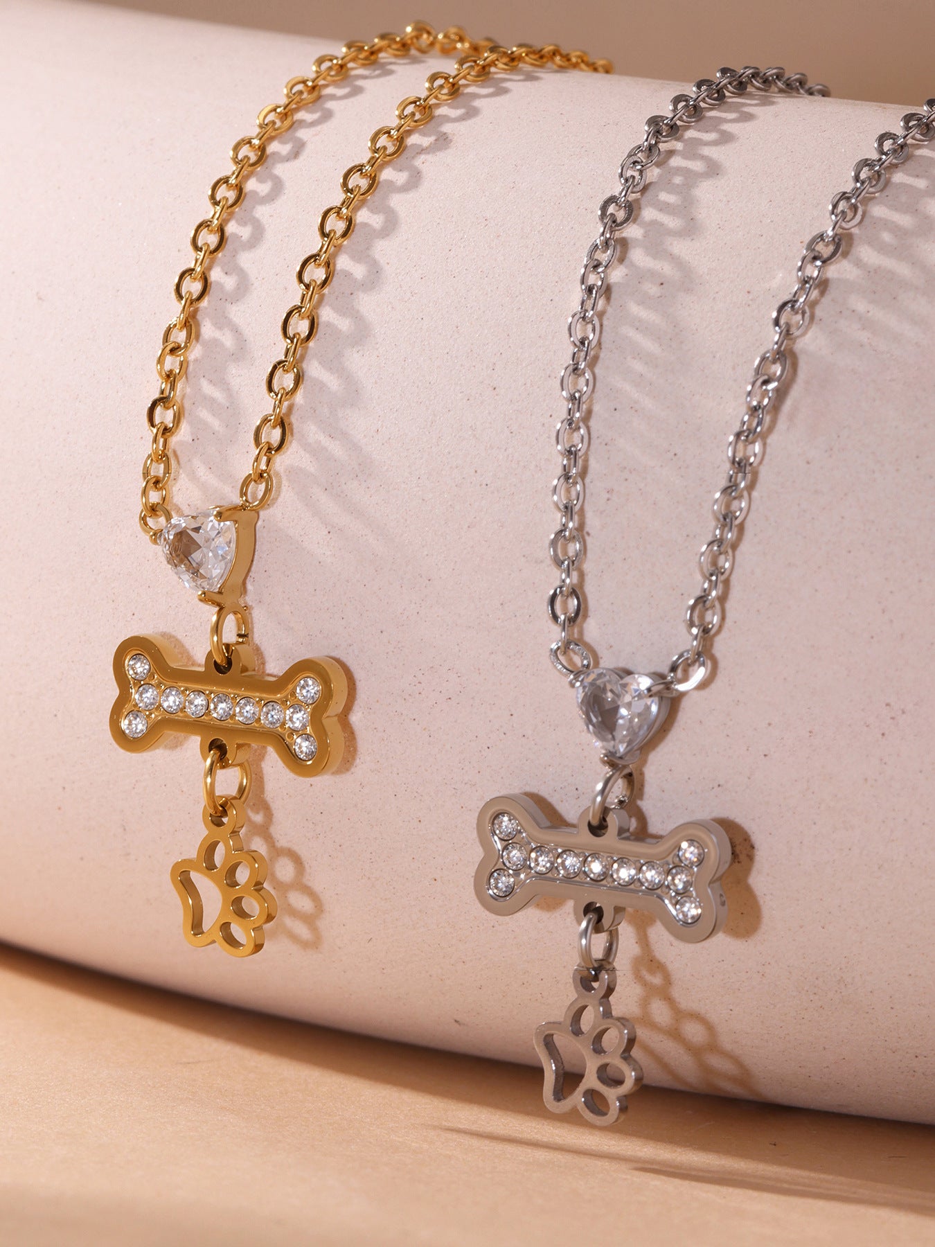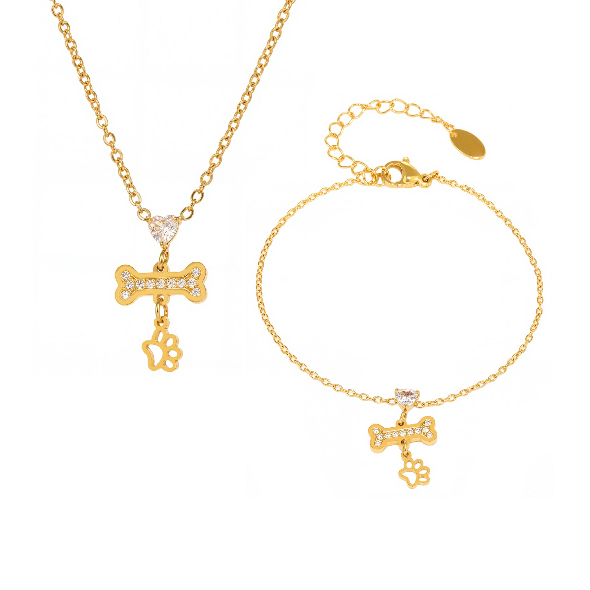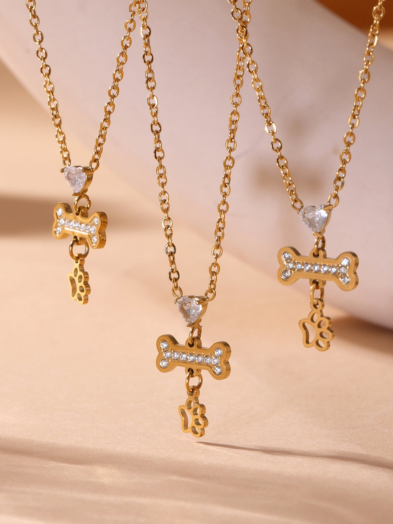 B廠【TXP302】歐美飾品不銹鋼小狗可愛爪子骨頭吊墜鎖骨項鍊手鍊首飾套裝 25.07-2