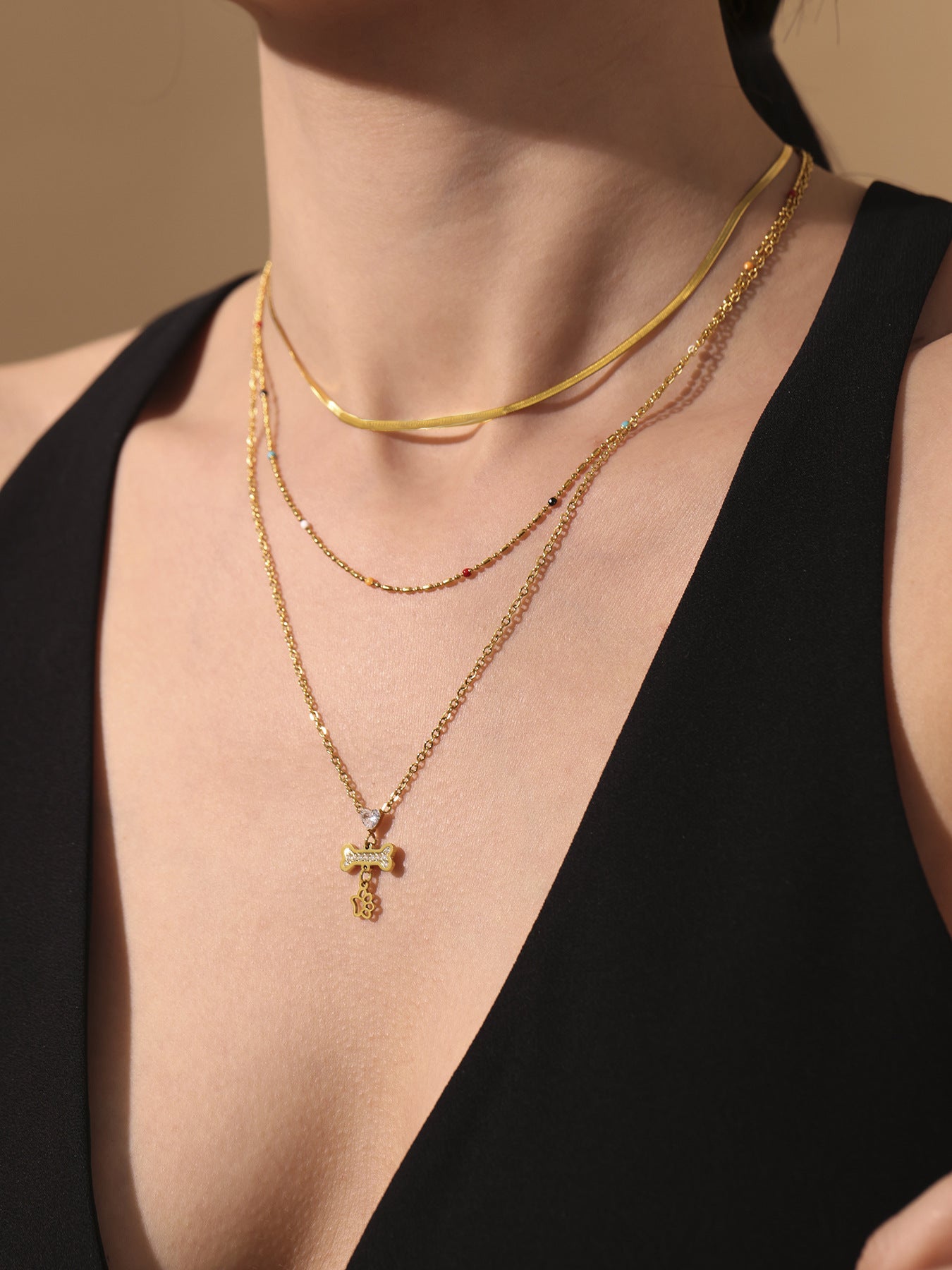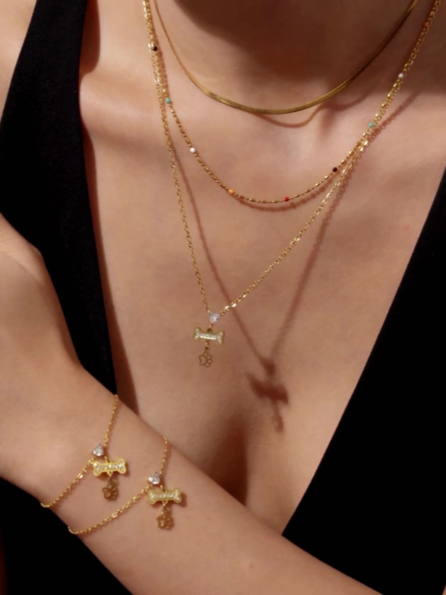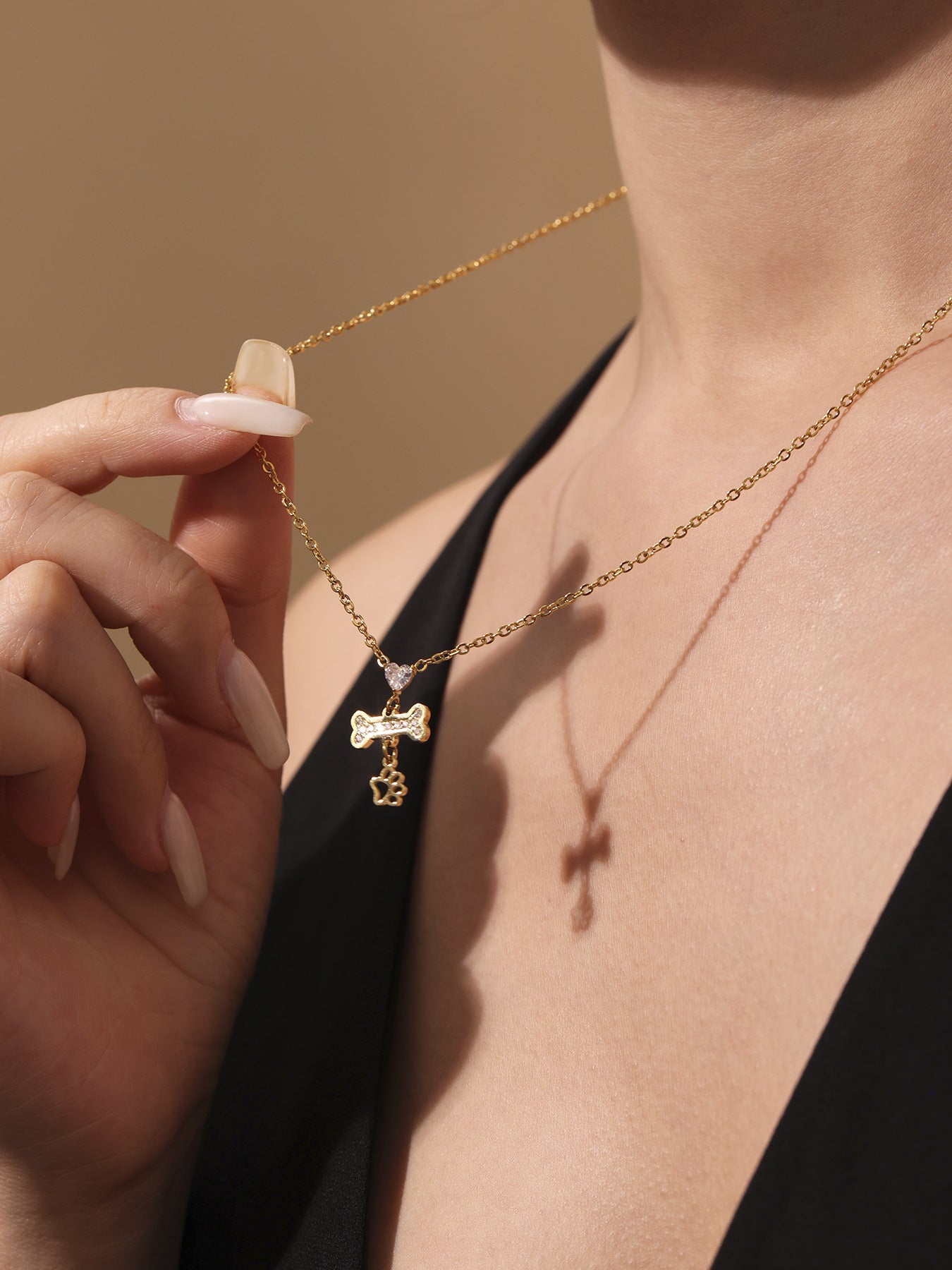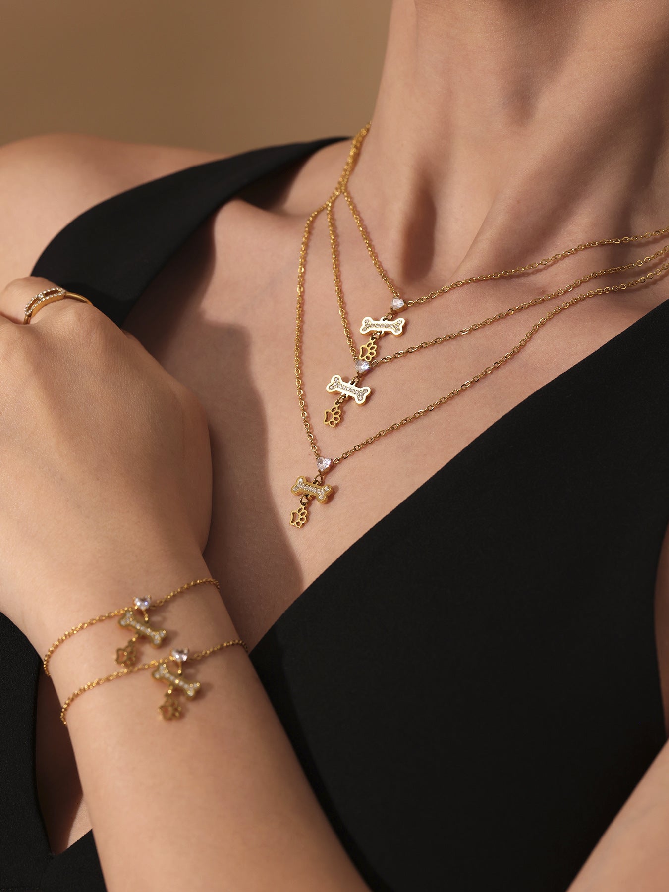 B廠【TXP302】歐美飾品不銹鋼小狗可愛爪子骨頭吊墜鎖骨項鍊手鍊首飾套裝 25.07-2