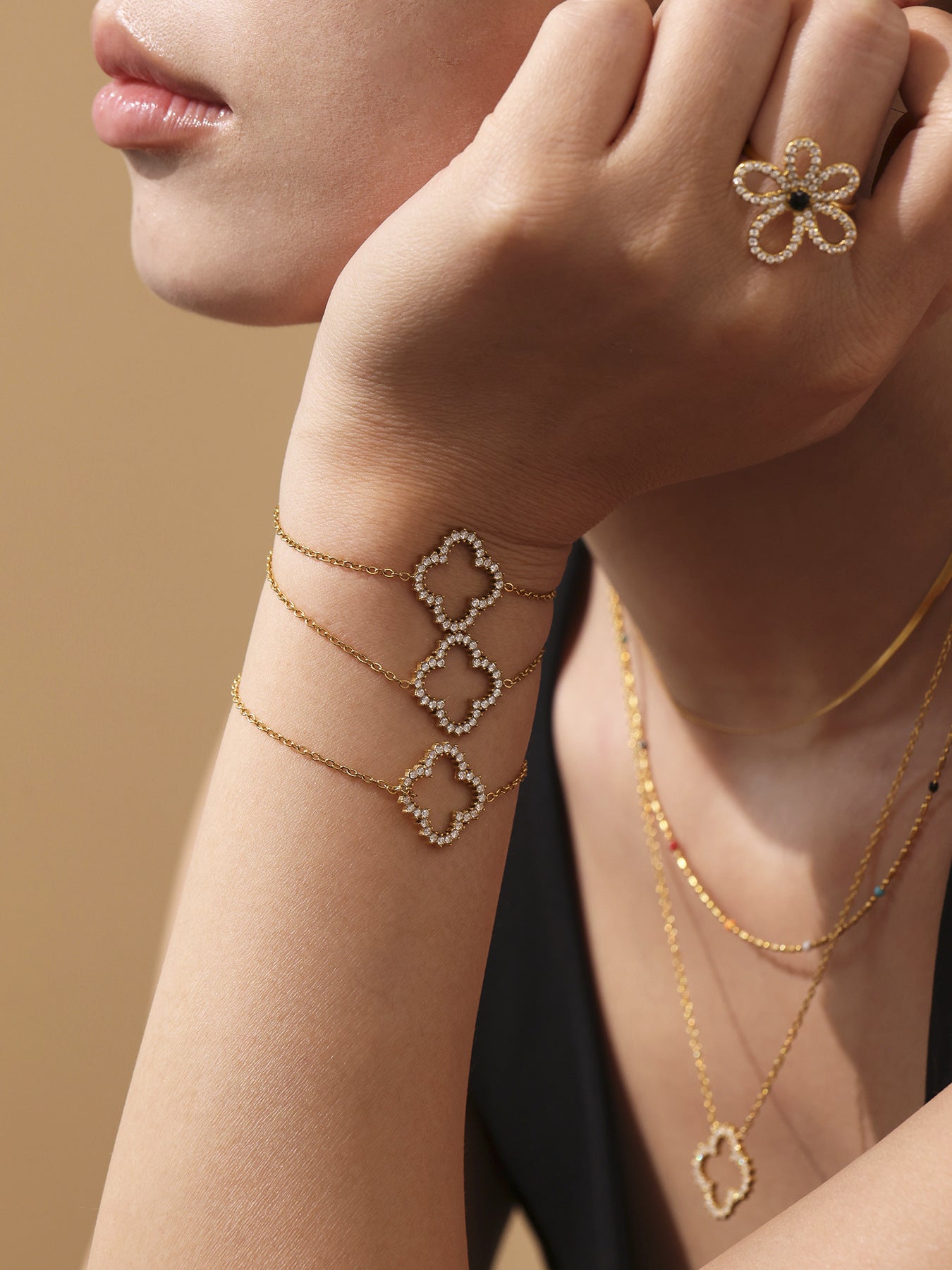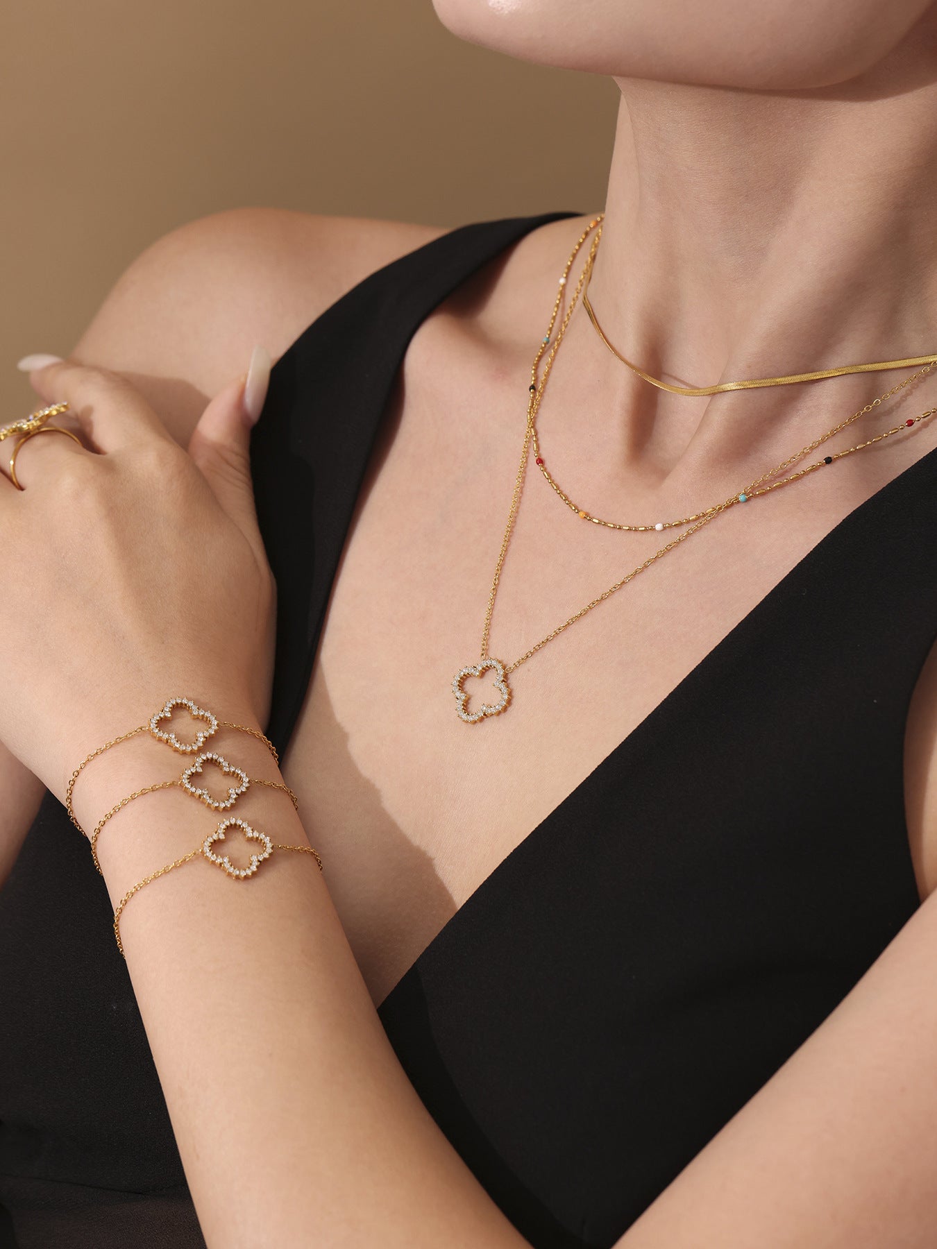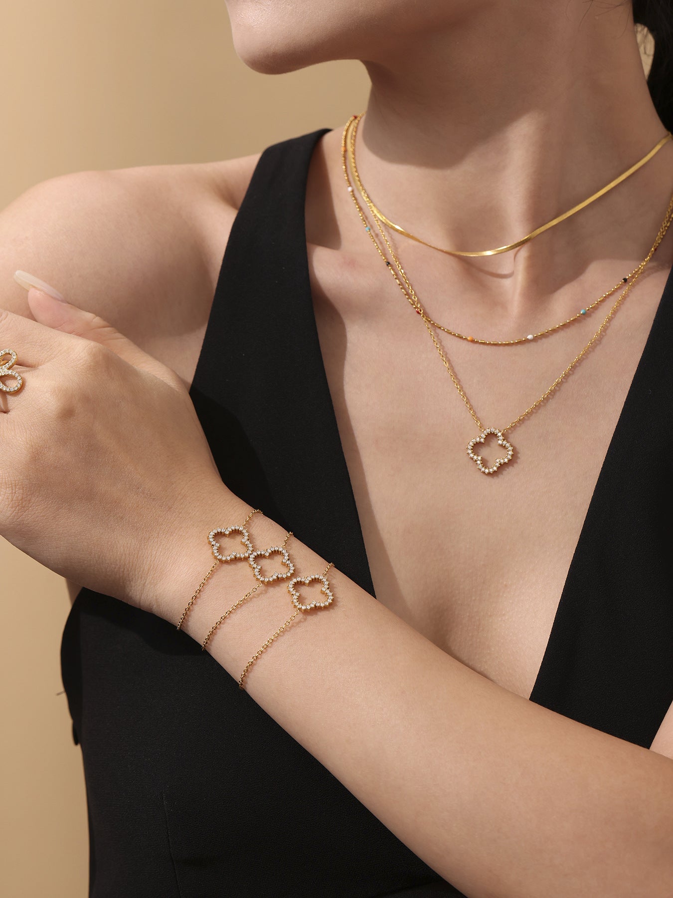 B廠【TXP305】歐美飾品5A鋯石超閃小花項鍊手鍊手鍊套組不鏽鋼鍍18k金不掉色 25.07-2
