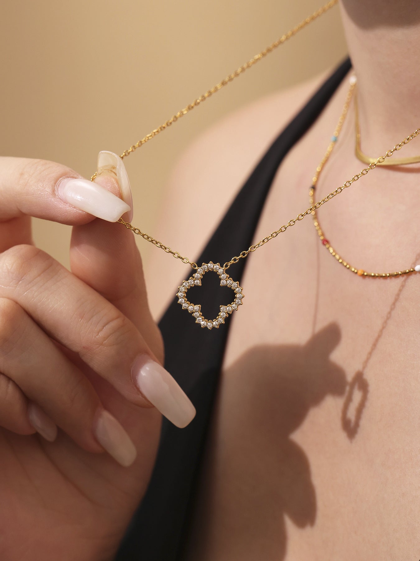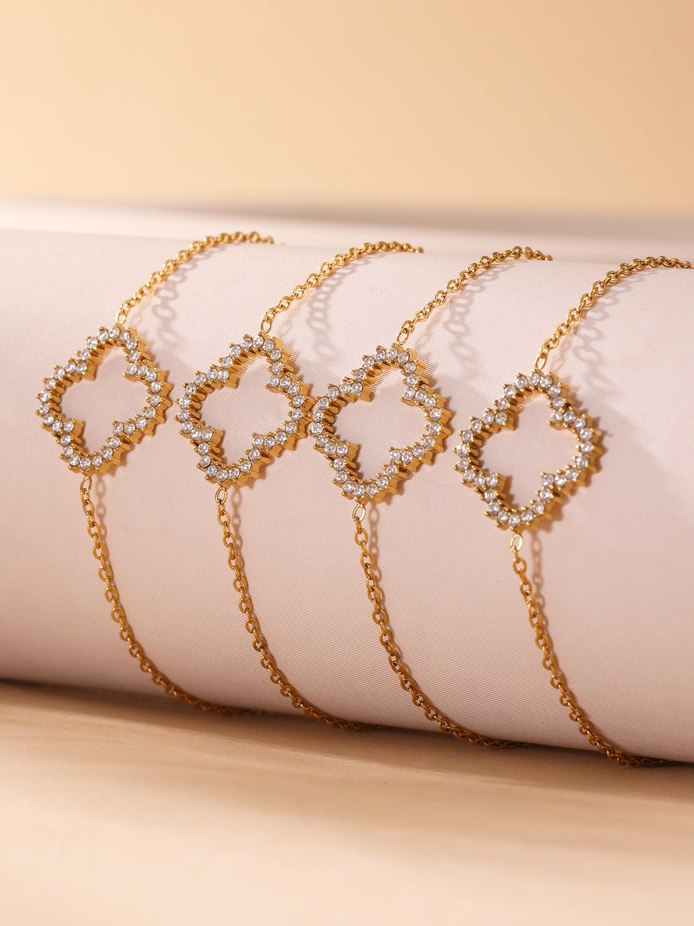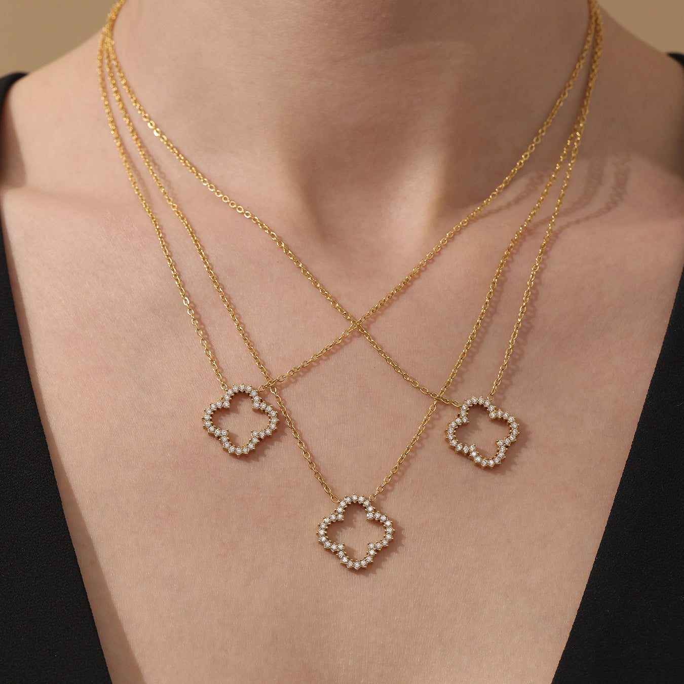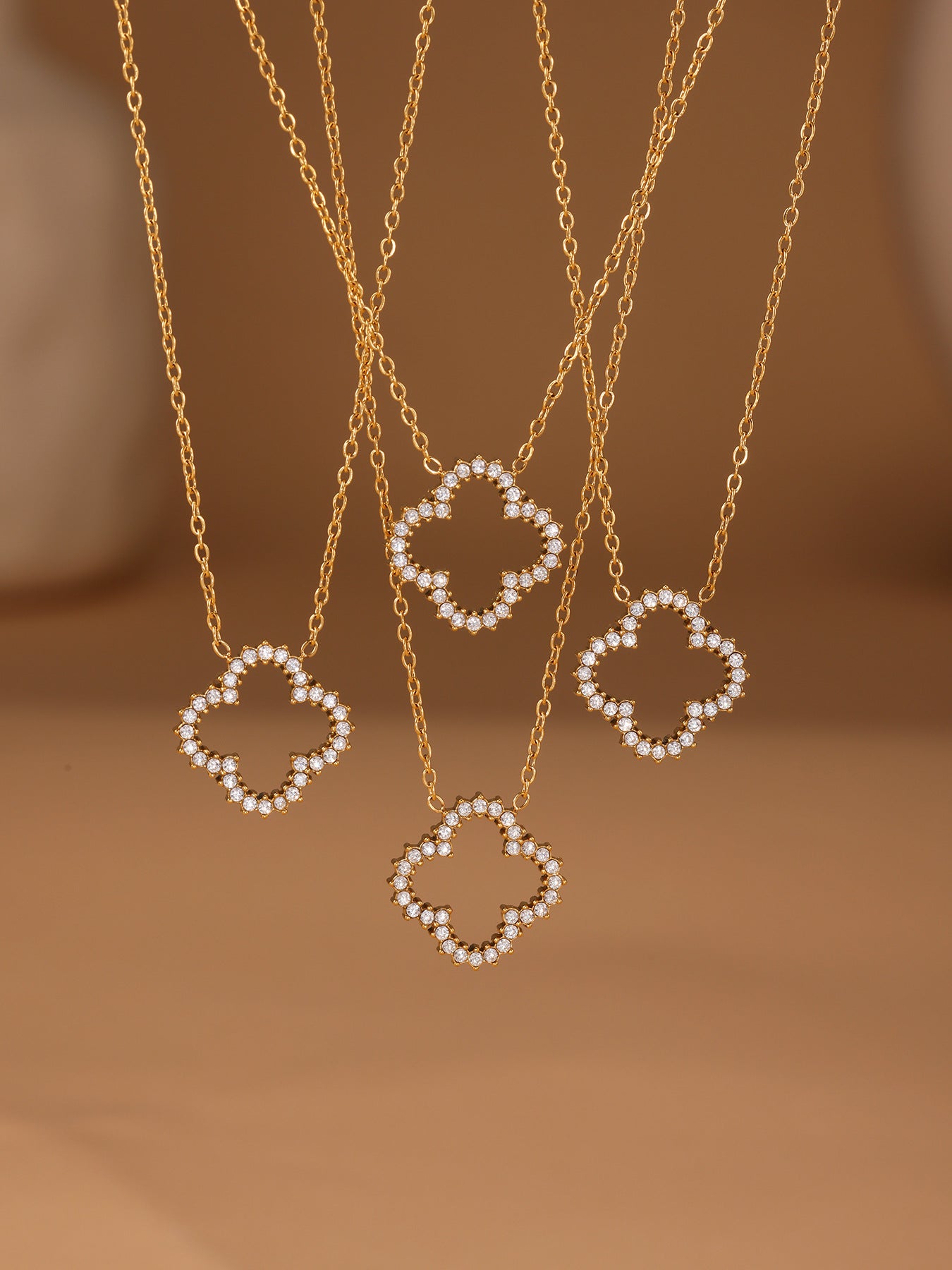 B廠【TXP305】歐美飾品5A鋯石超閃小花項鍊手鍊手鍊套組不鏽鋼鍍18k金不掉色 25.07-2