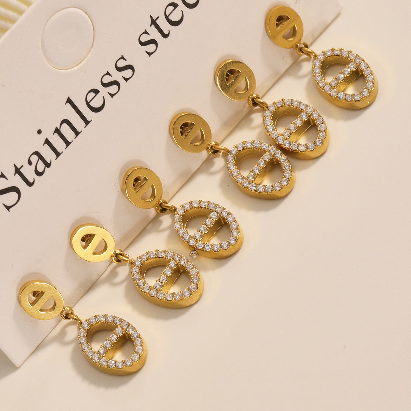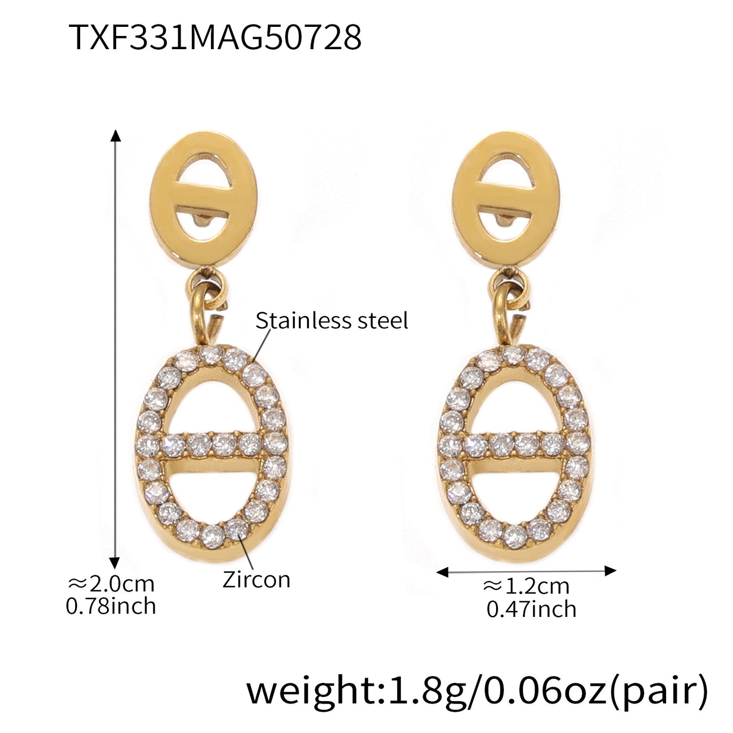 B廠【TXP331】新款不鏽鋼5A鋯石雙人天滿鑽流蘇項鍊耳環組ins開口戒指 25.08-1