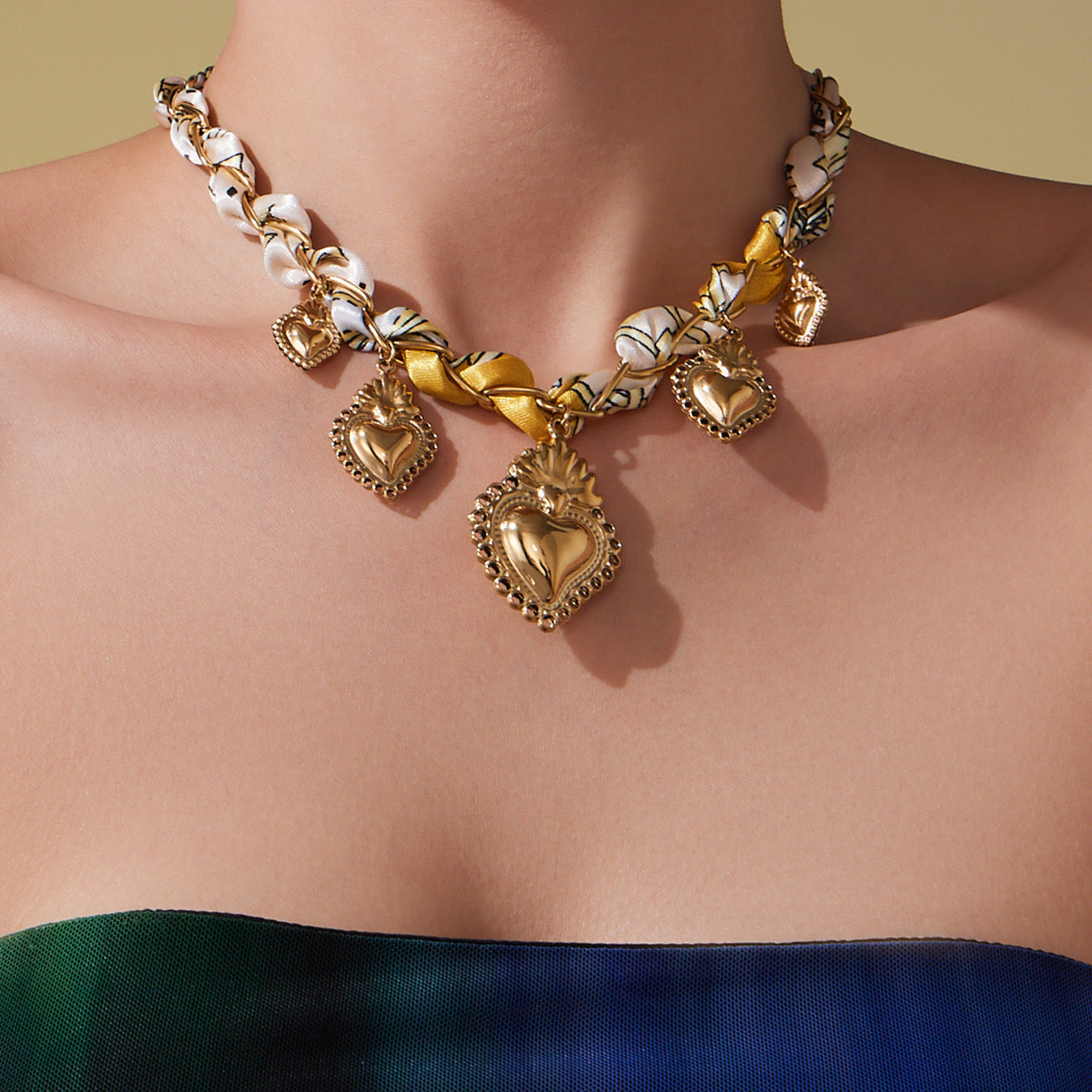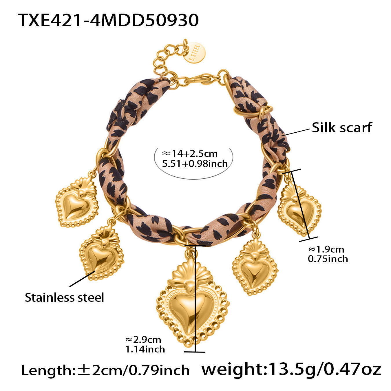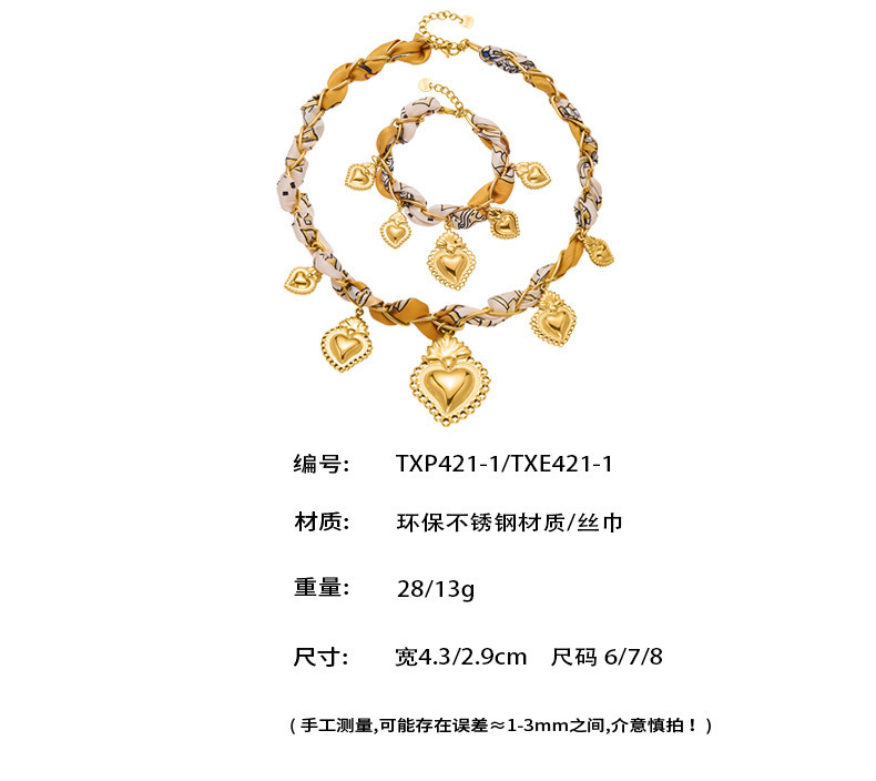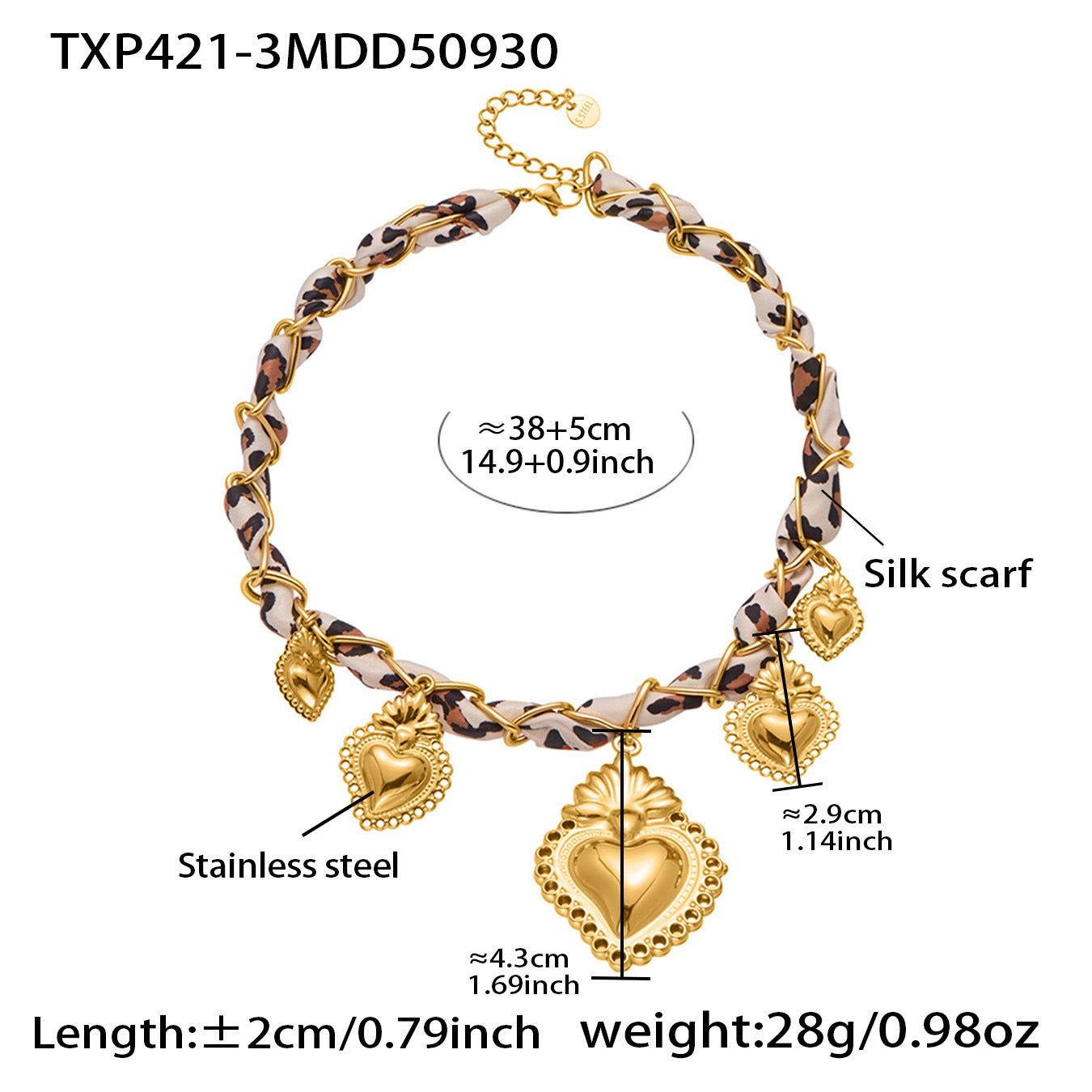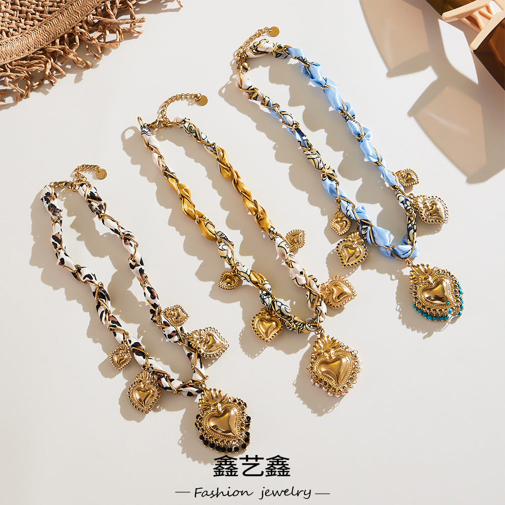 B廠【TXP421】歐美復古絲巾不銹鋼多愛心吊墜項鍊手鍊設計小眾首飾套裝女 25.10-3