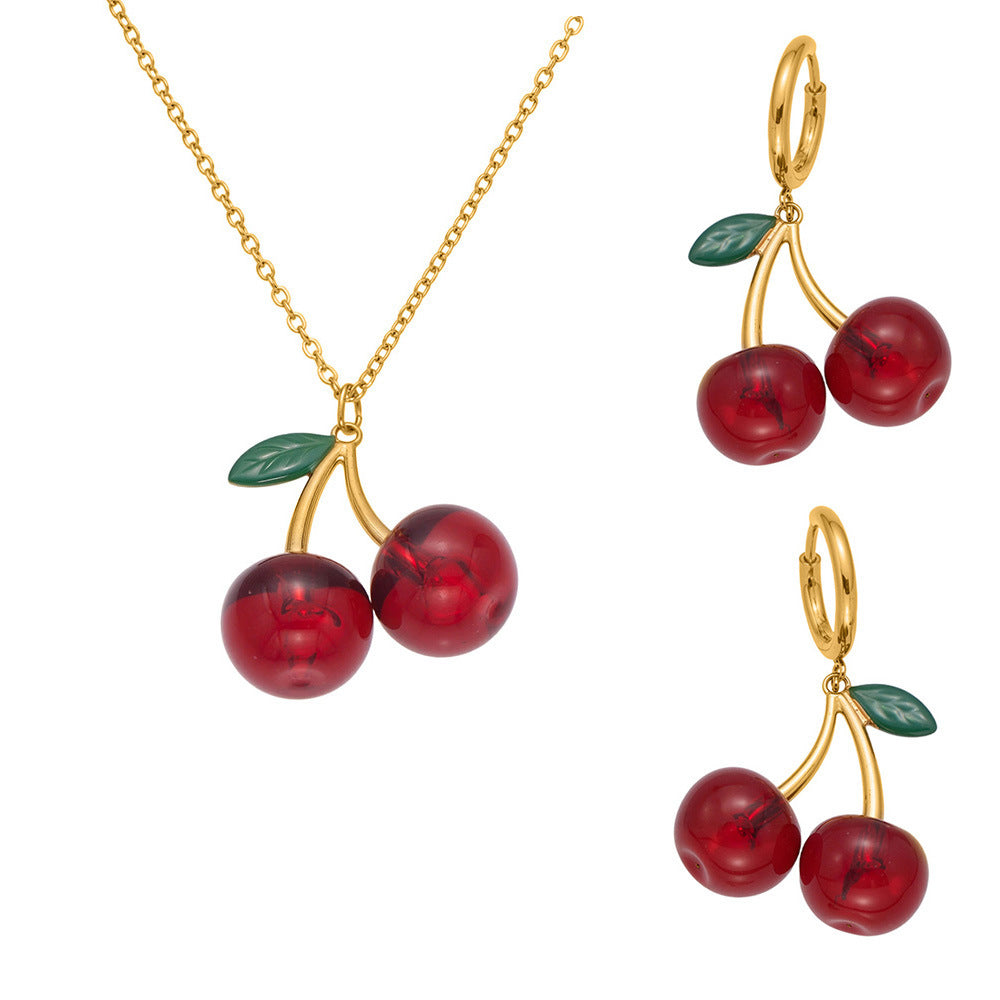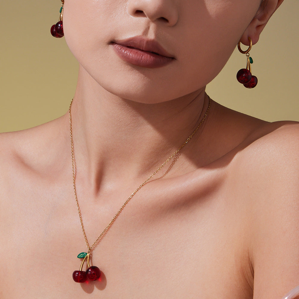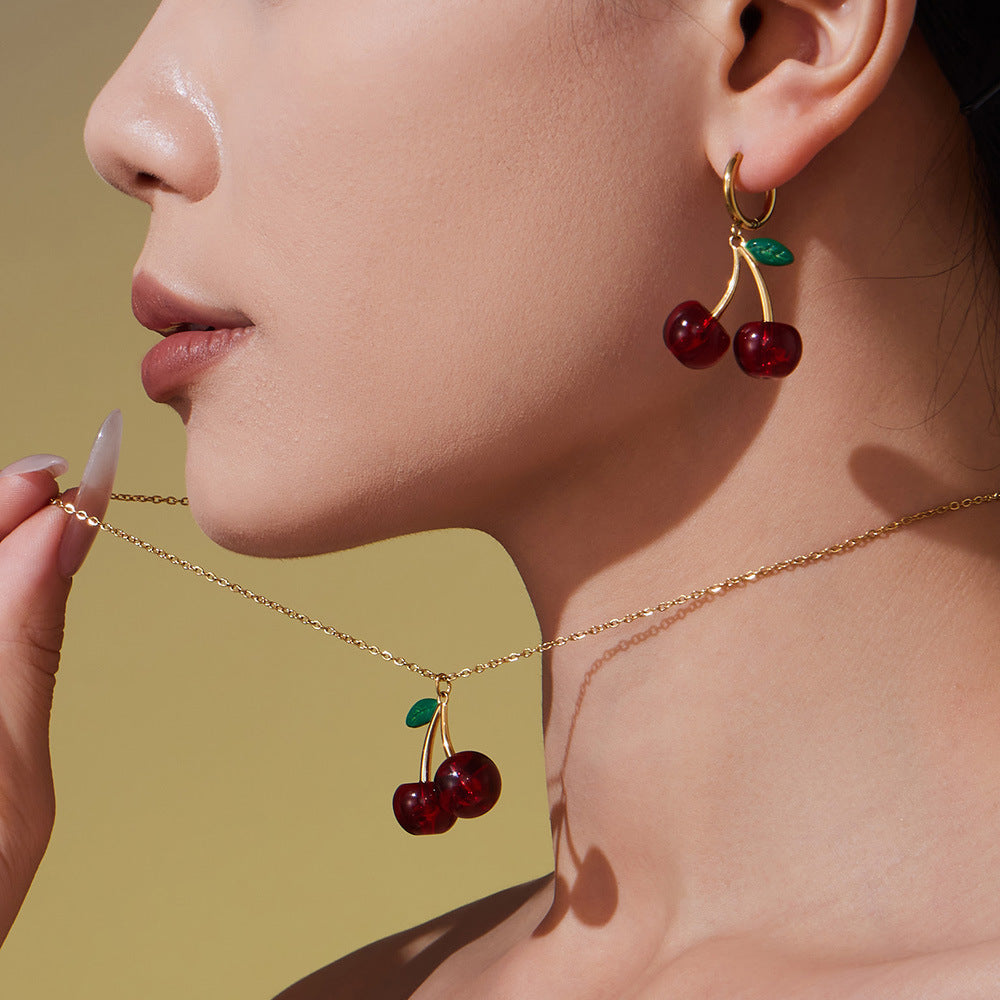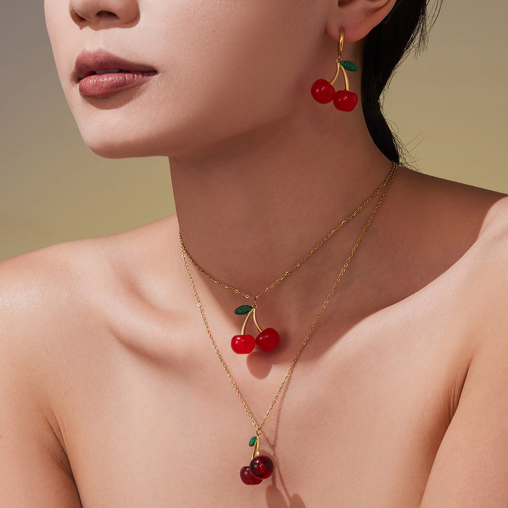B廠【TXP423】 櫻桃項鍊潮趣水果耳環 ins網紅清新可愛少女時尚珠寶首飾 25.10-2