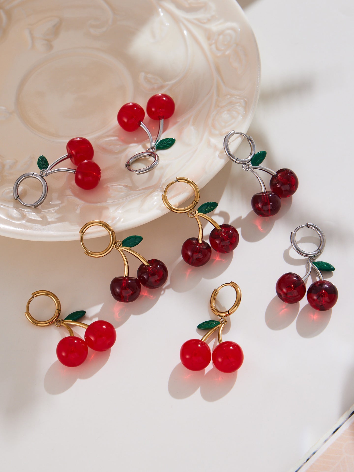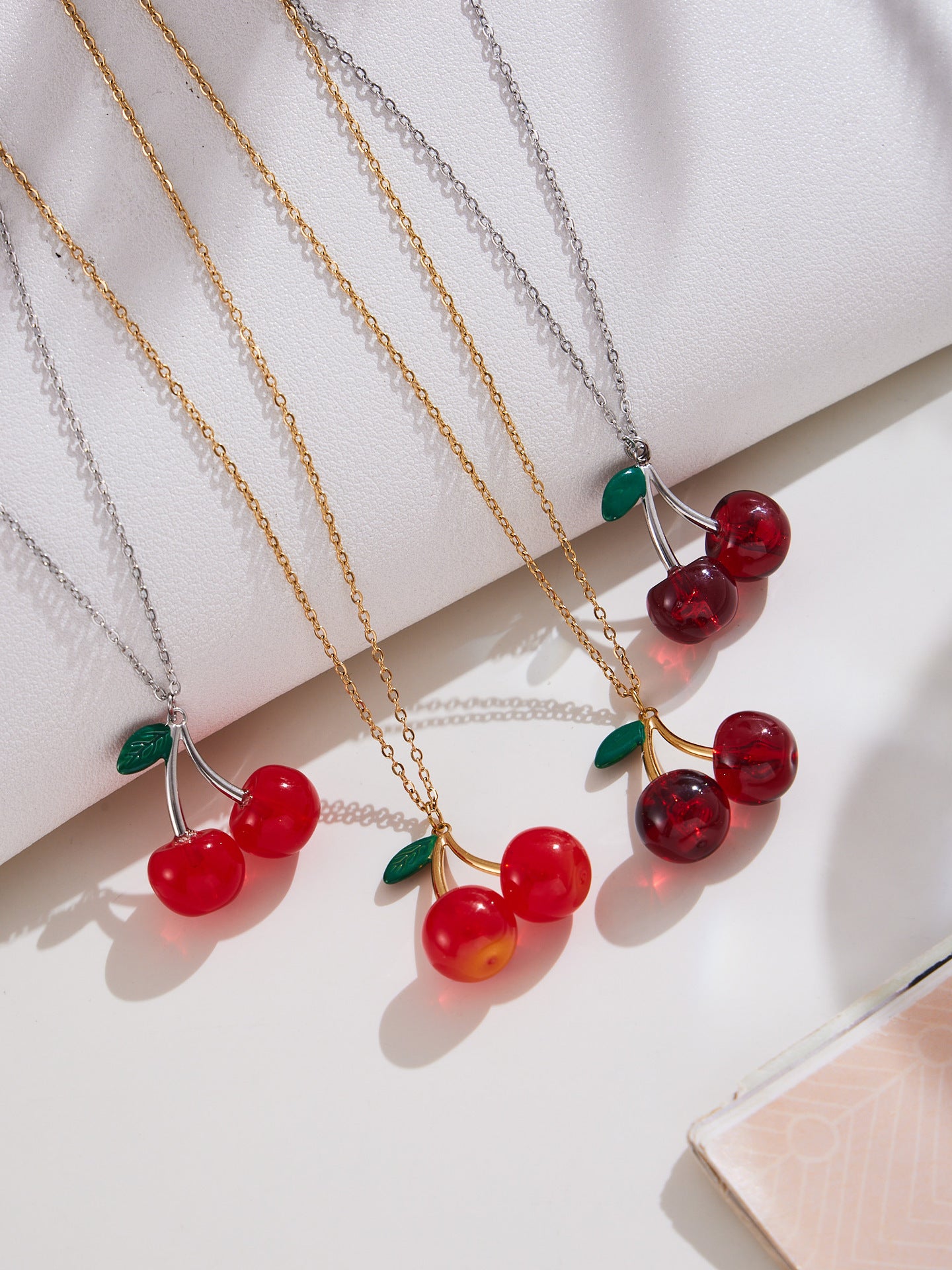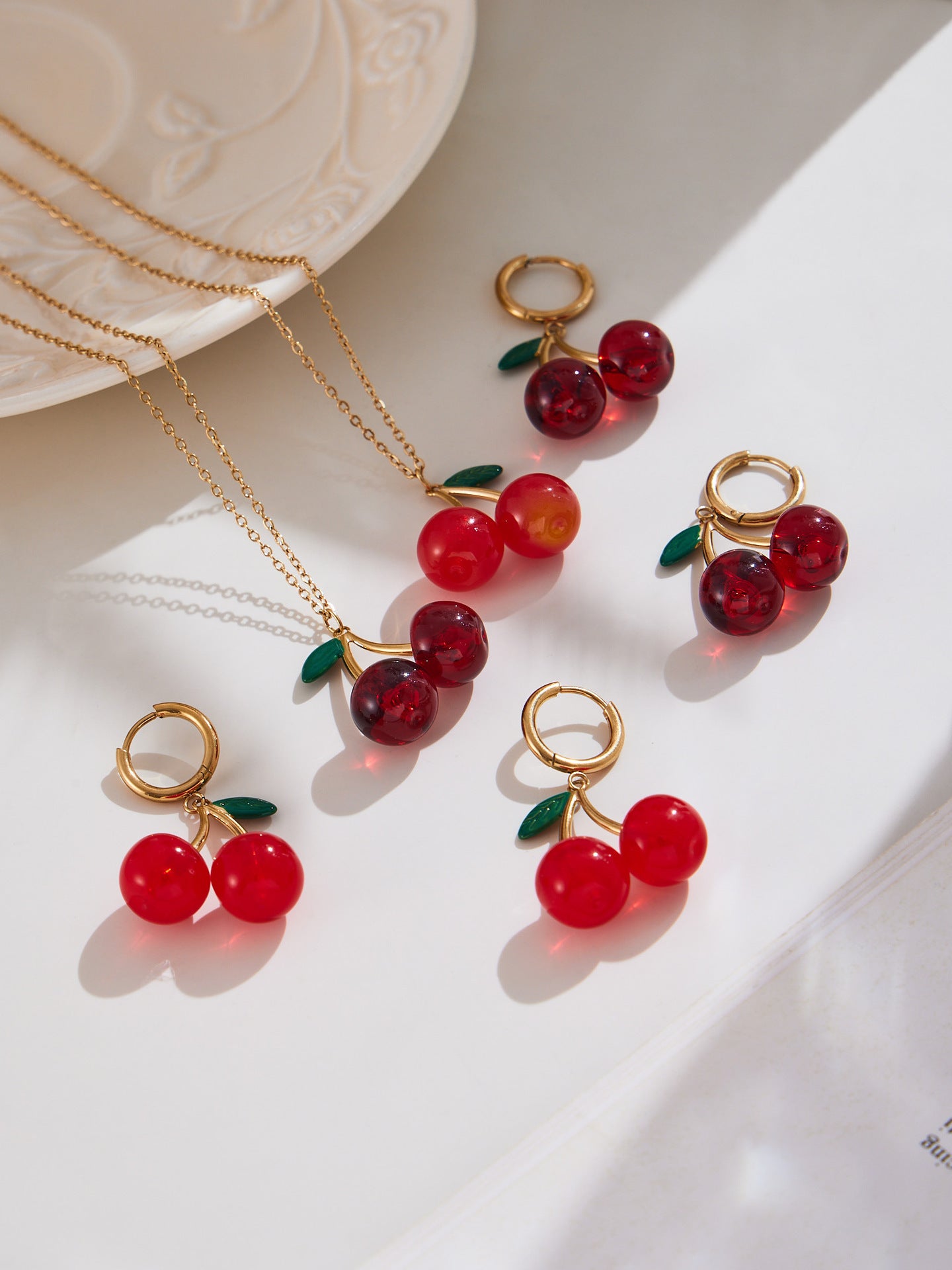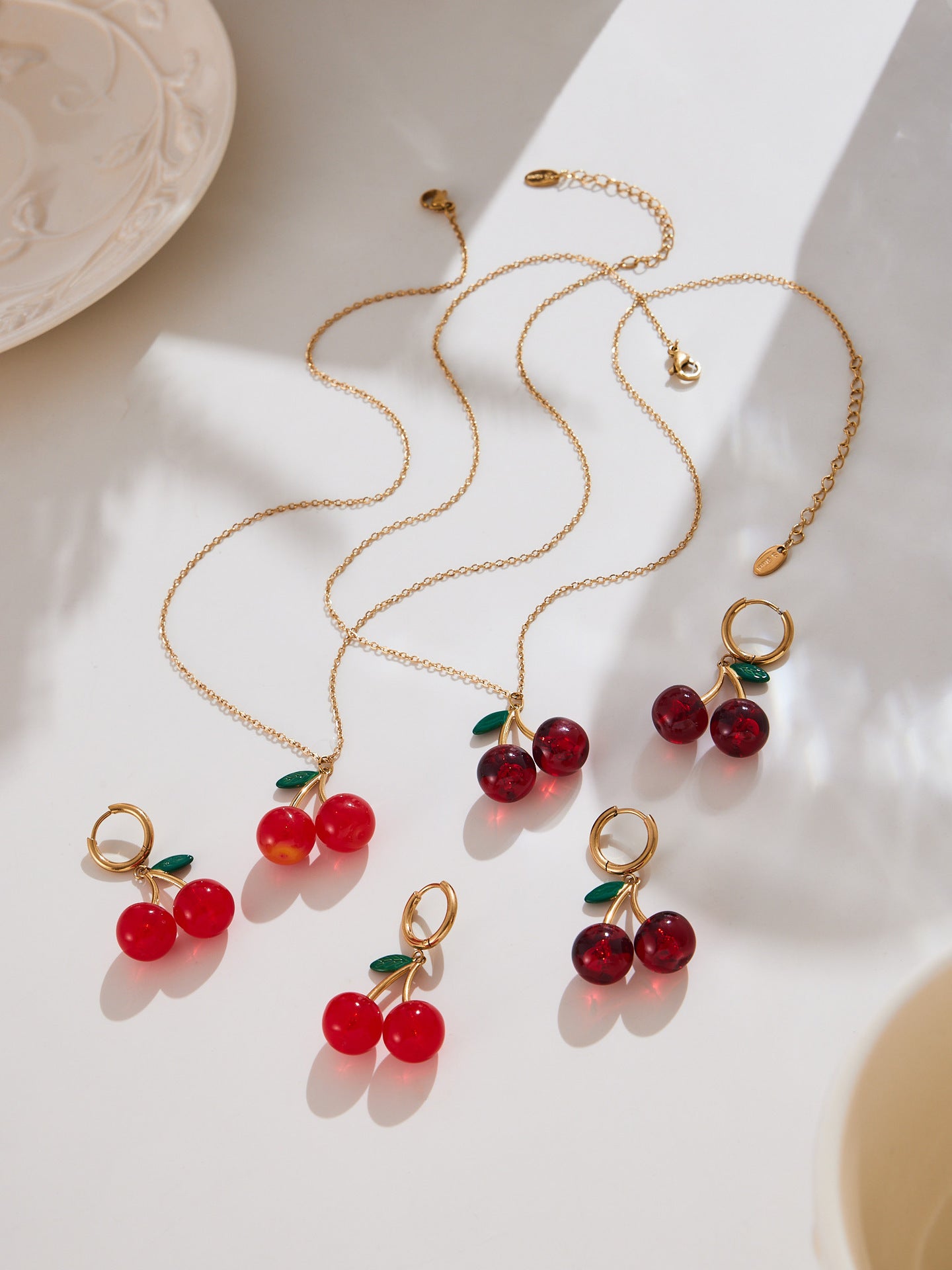B廠【TXP423】 櫻桃項鍊潮趣水果耳環 ins網紅清新可愛少女時尚珠寶首飾 25.10-2