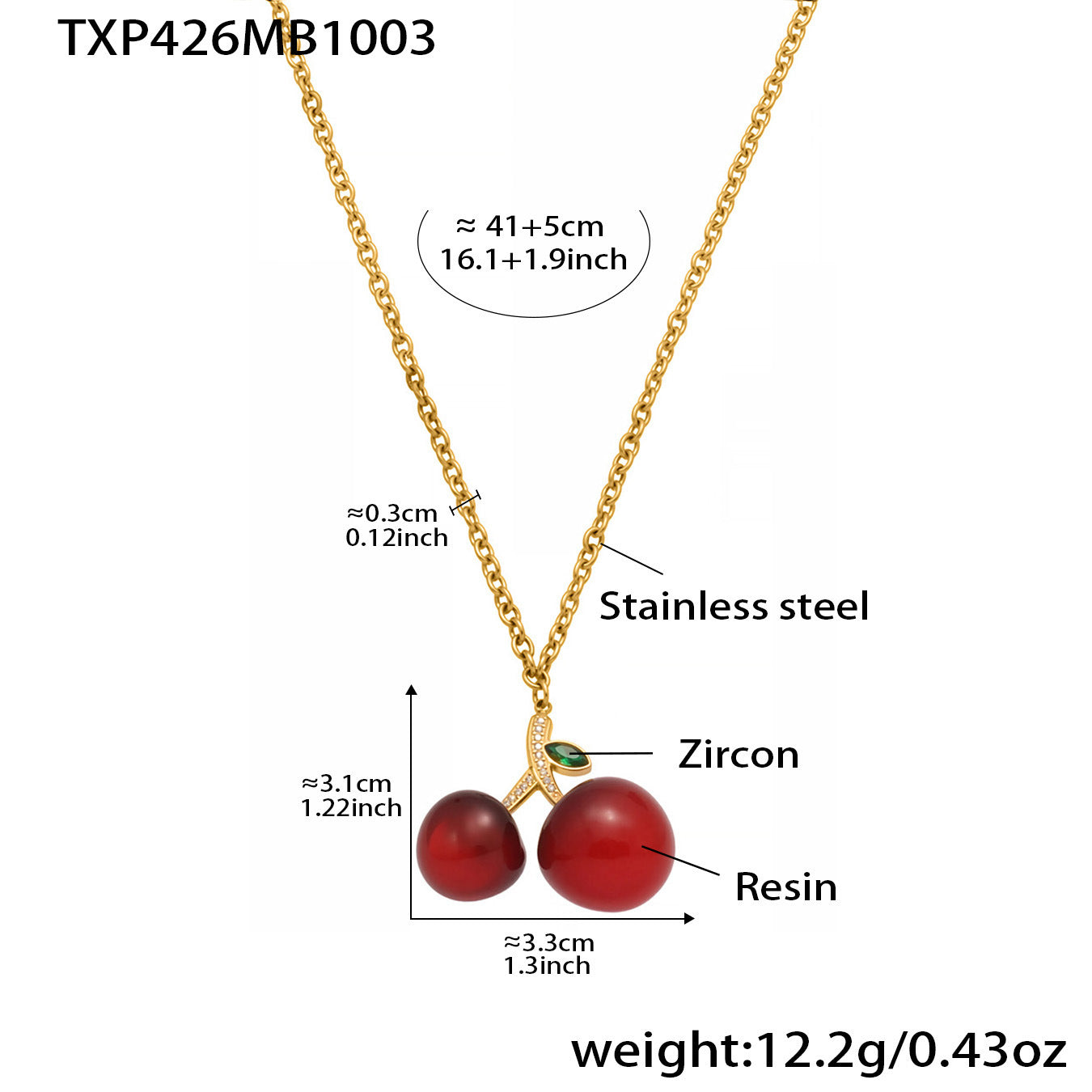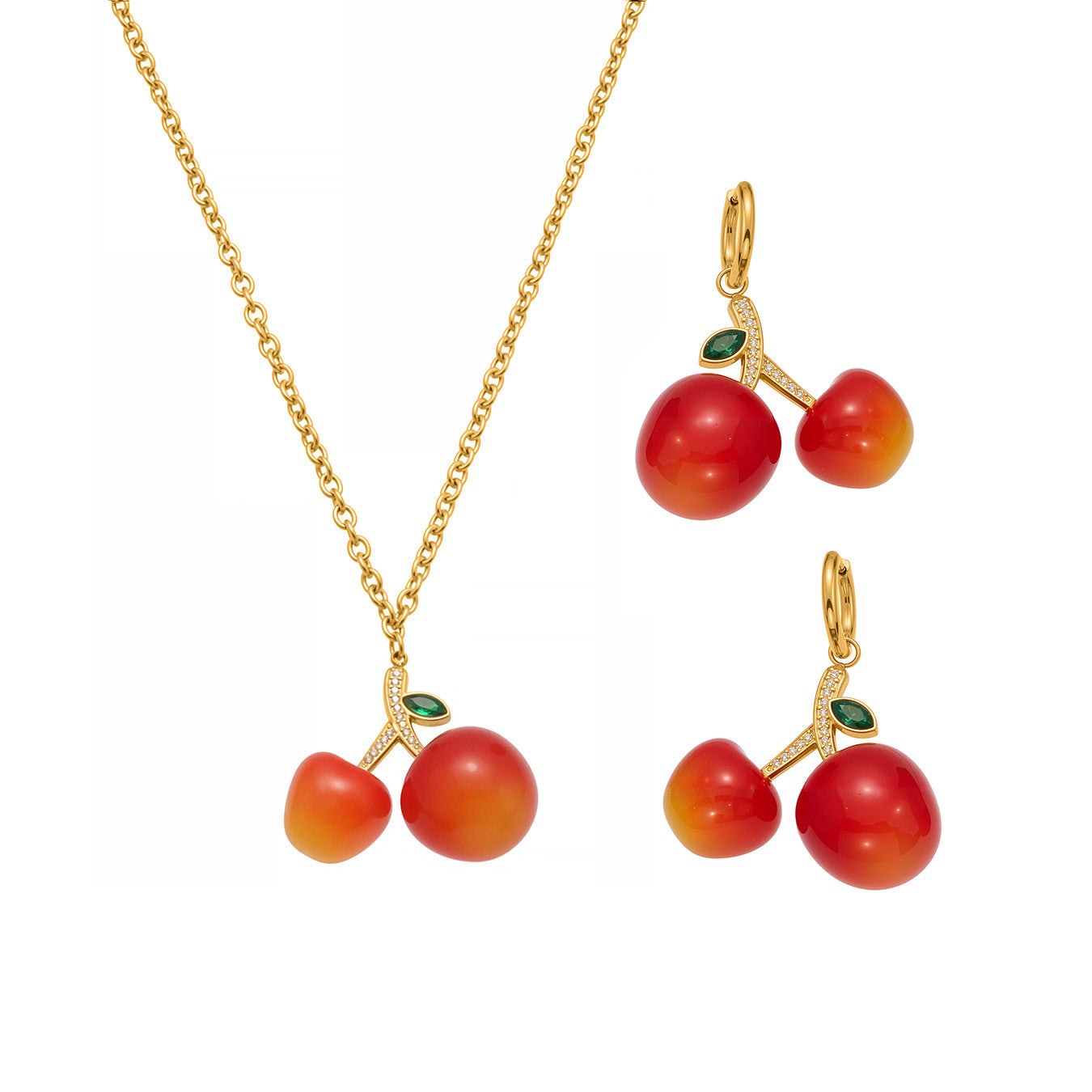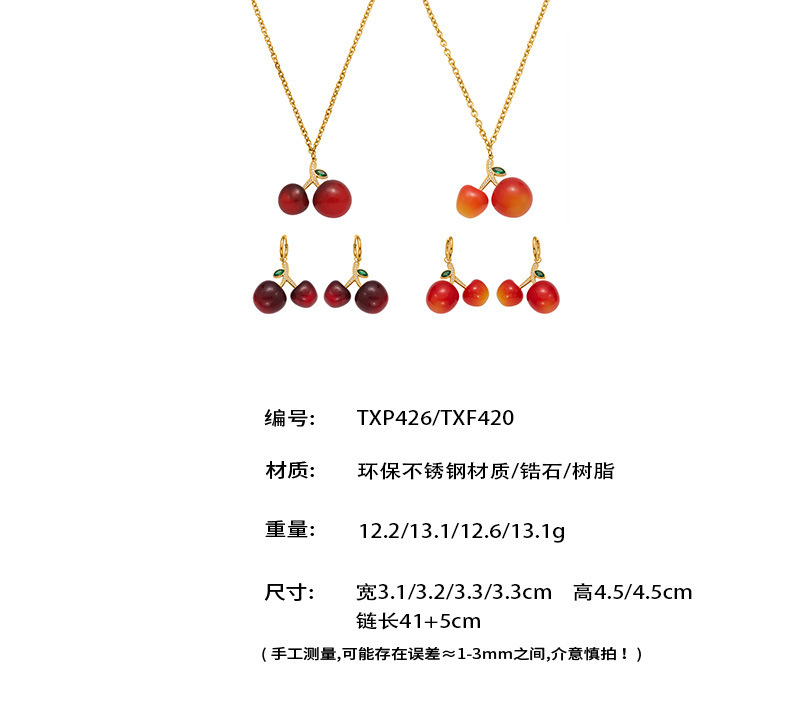 B廠【TXP426】百搭氛圍感樹脂鋯石櫻桃吊墜項鍊耳環跨境小眾氣質首飾套裝 25.10-2