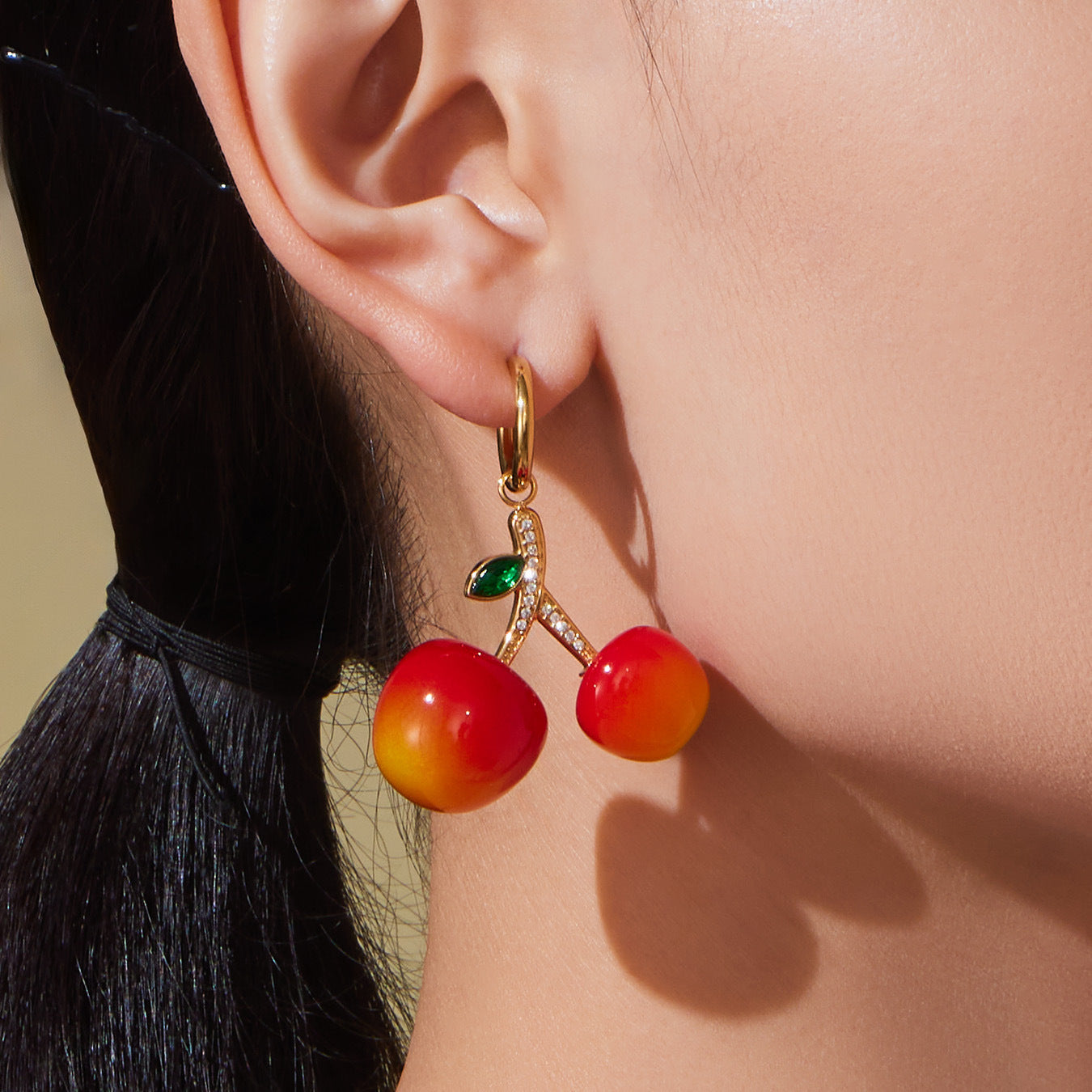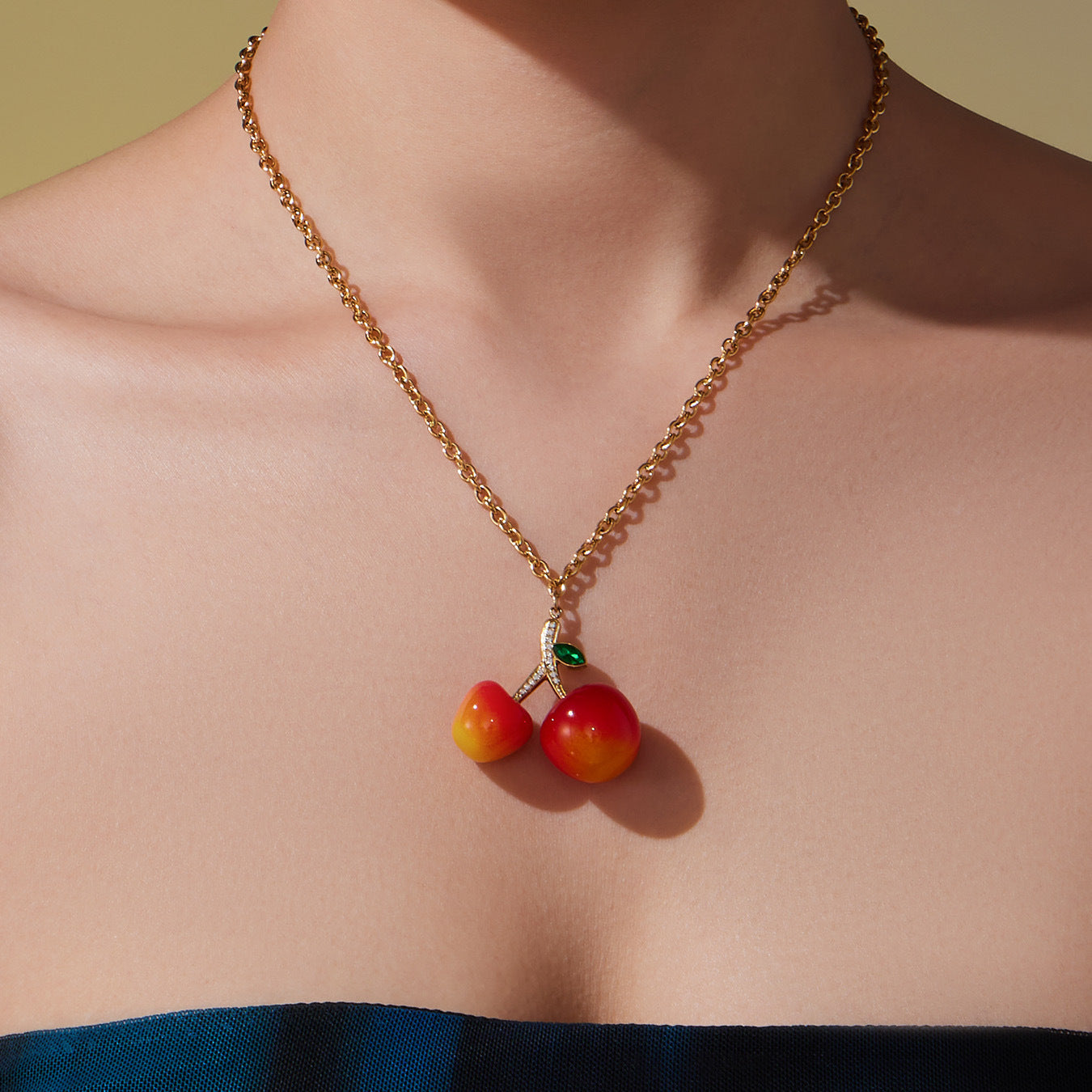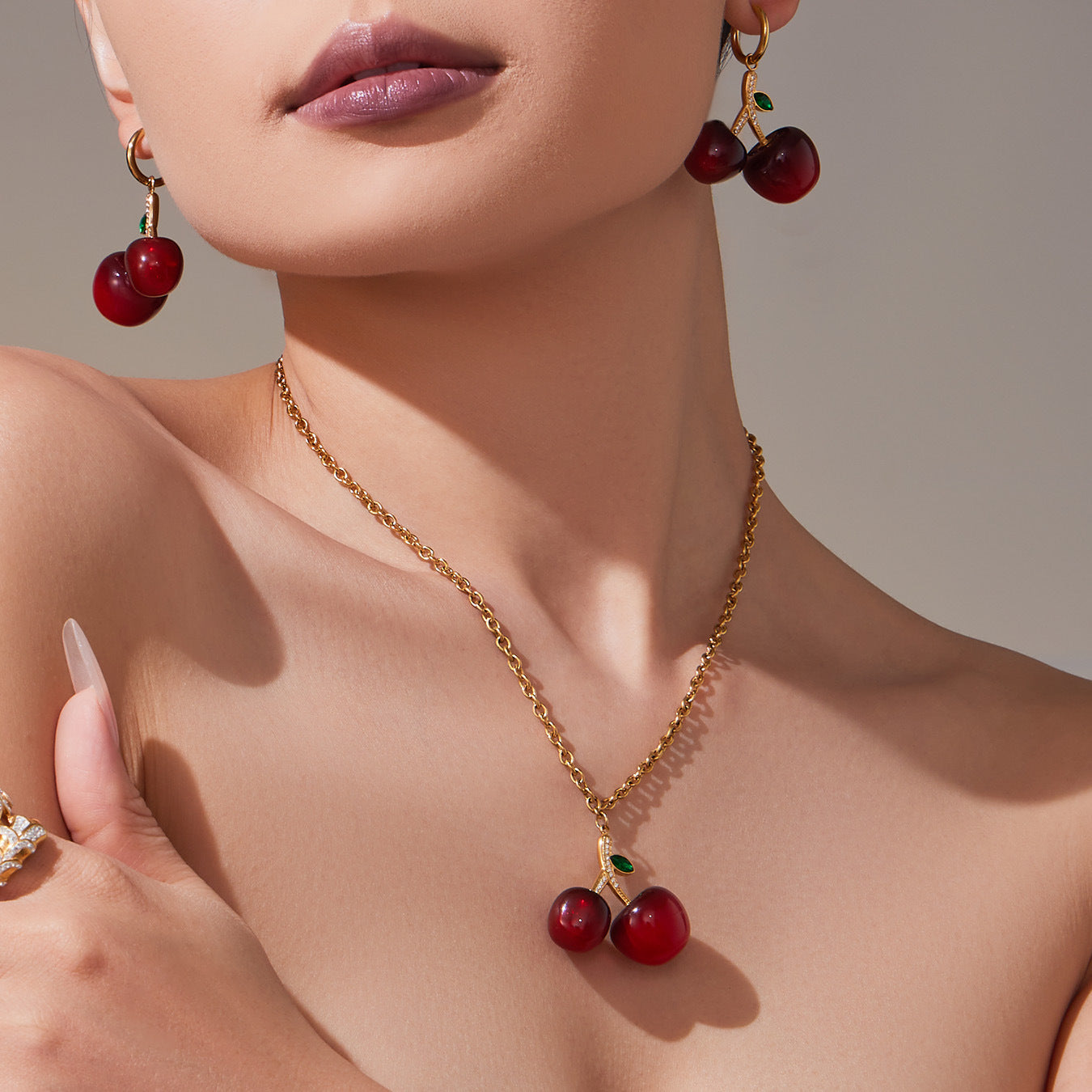 B廠【TXP426】百搭氛圍感樹脂鋯石櫻桃吊墜項鍊耳環跨境小眾氣質首飾套裝 25.10-2