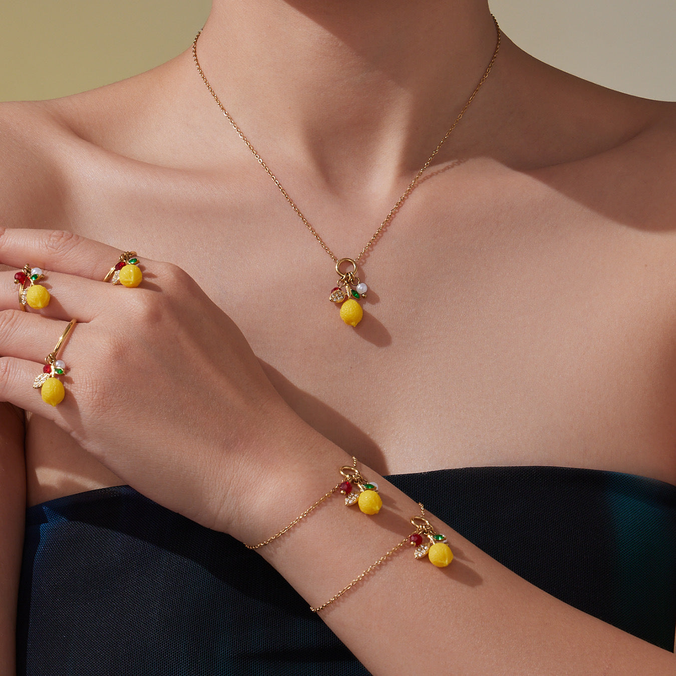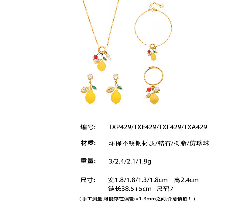 B廠【TXP429】檸檬吊墜5A鋯石耳環項鍊套裝歐美時尚百搭個性氣質水果首飾 25.10-3