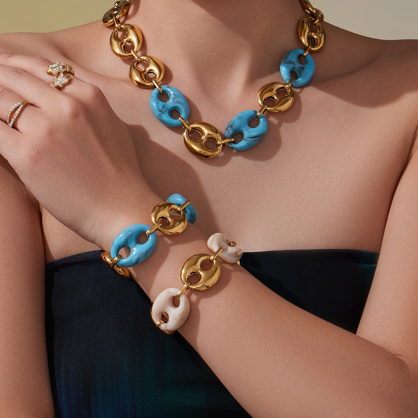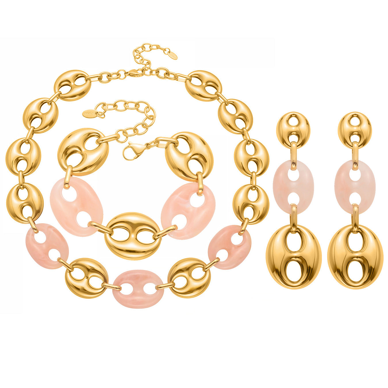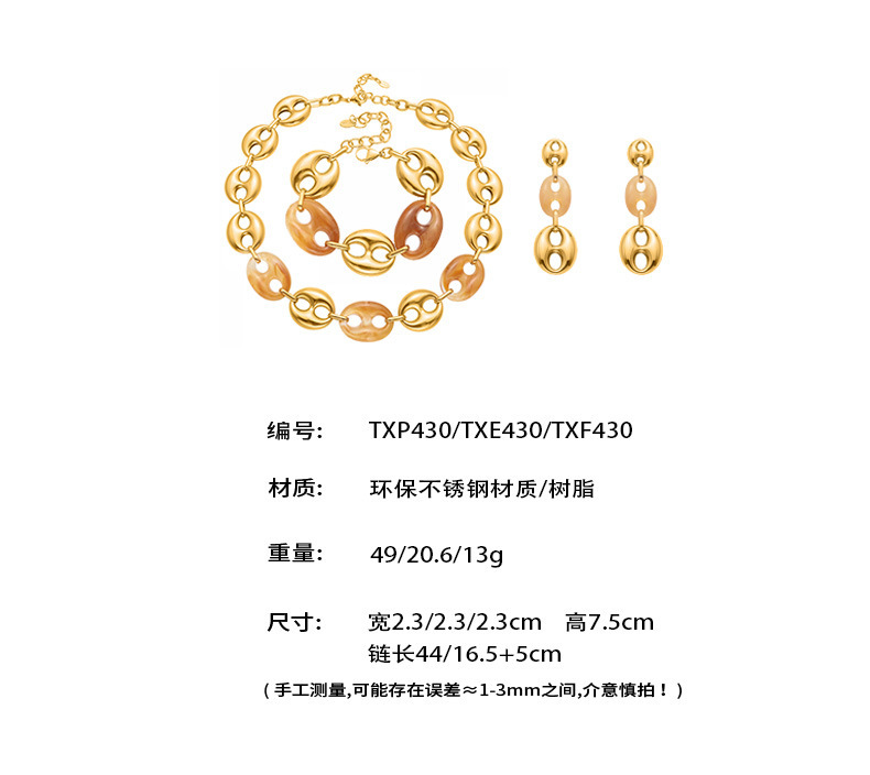 B廠【TXP430】不銹鋼豬鼻子樹脂項鍊多色時尚手工鍊鍍18k金項鍊手鍊耳環 25.10-3