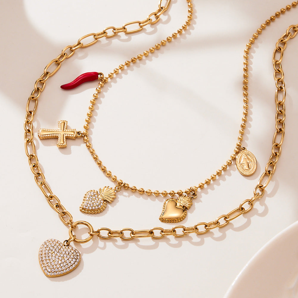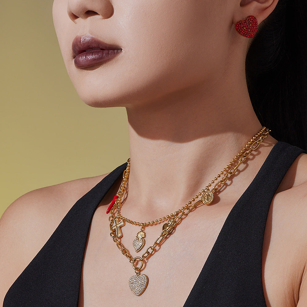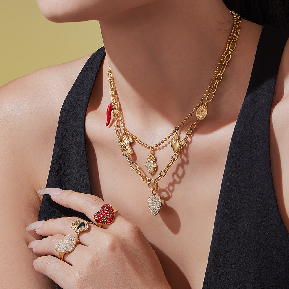 B廠【TXP450】5A鋯石皇冠愛心滿鑽開口戒指項鍊耳環組不銹鋼鍍18k真金 25.10-4