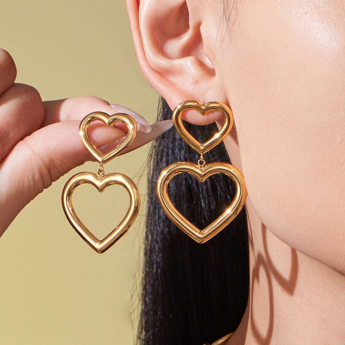 B廠【TXP452】不銹鋼幾何愛心項鍊手鍊耳環 鍍18k金個性誇張珠寶首飾套裝 25.10-4