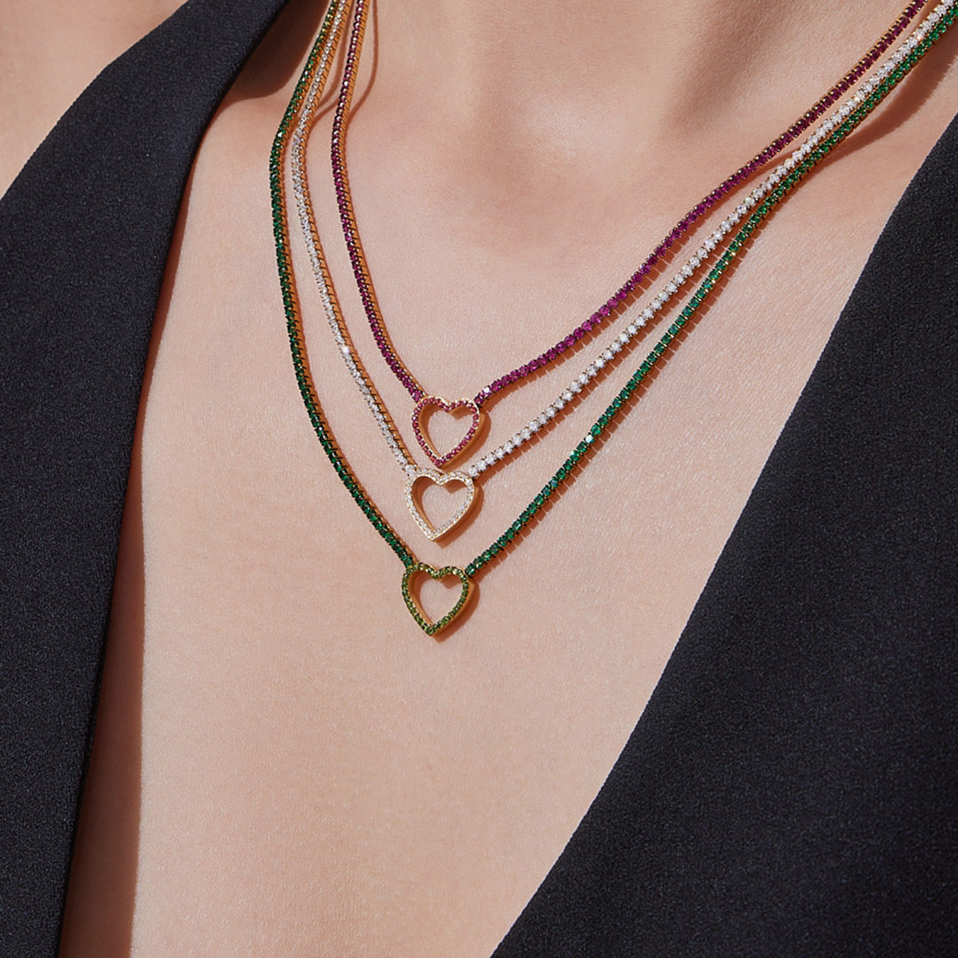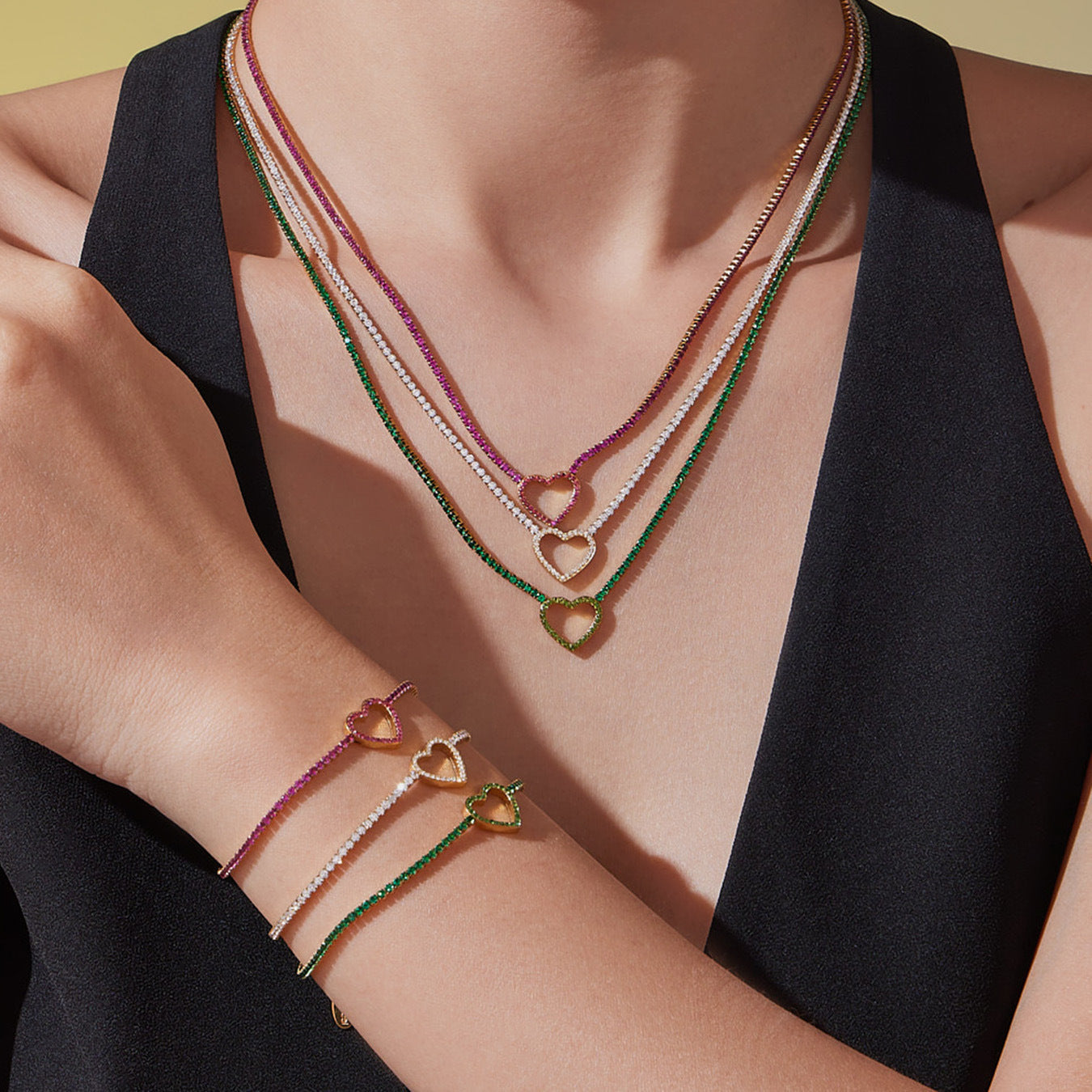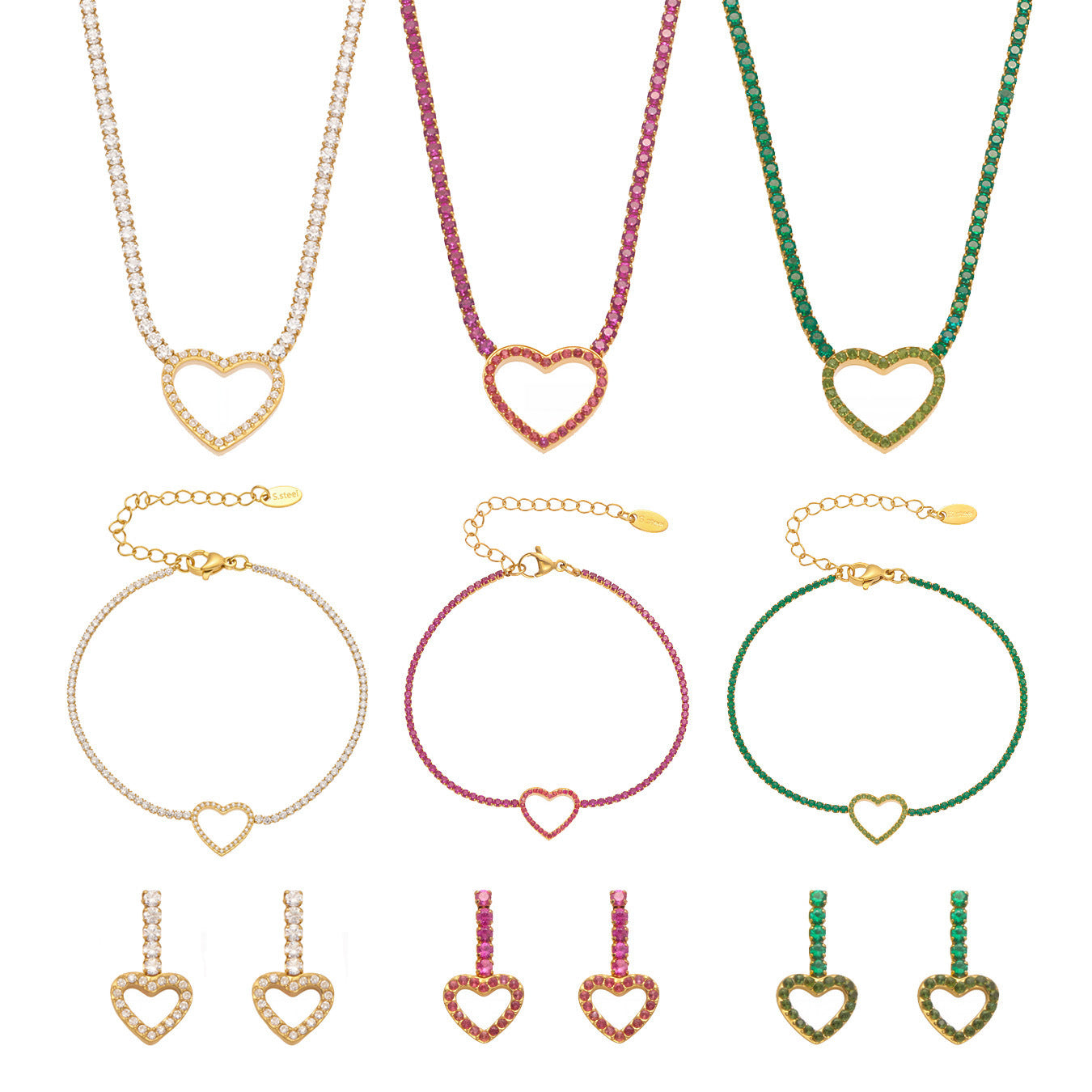 B廠【TXP455】不銹鋼滿鑽愛心鋯石項鍊手鍊耳環 鍍18k金歐美時尚輕奢首飾 25.10-4