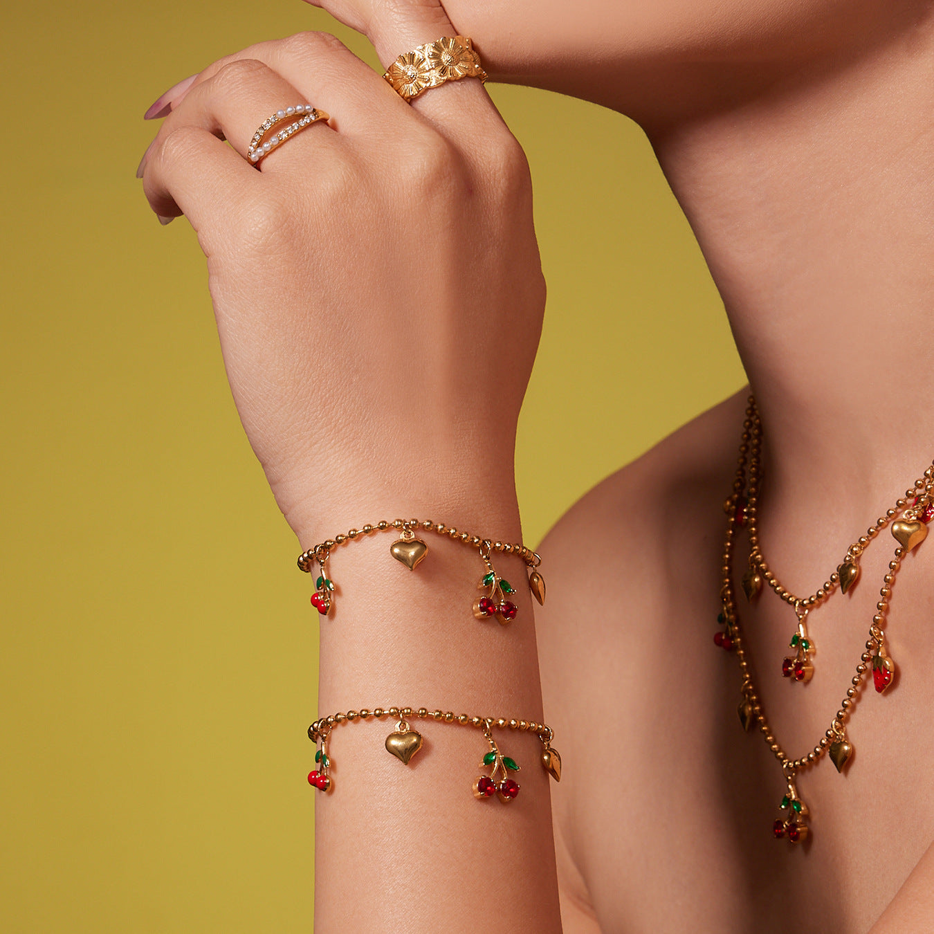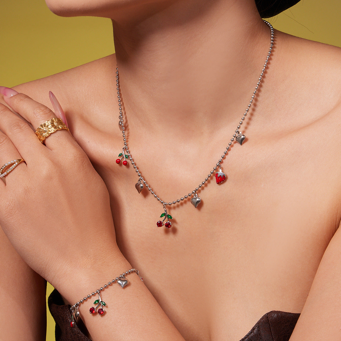 B廠【TXP471】跨境新款清新可愛櫻桃吊墜流蘇項鍊手鍊耳環 小巧百搭首飾 25.11-3