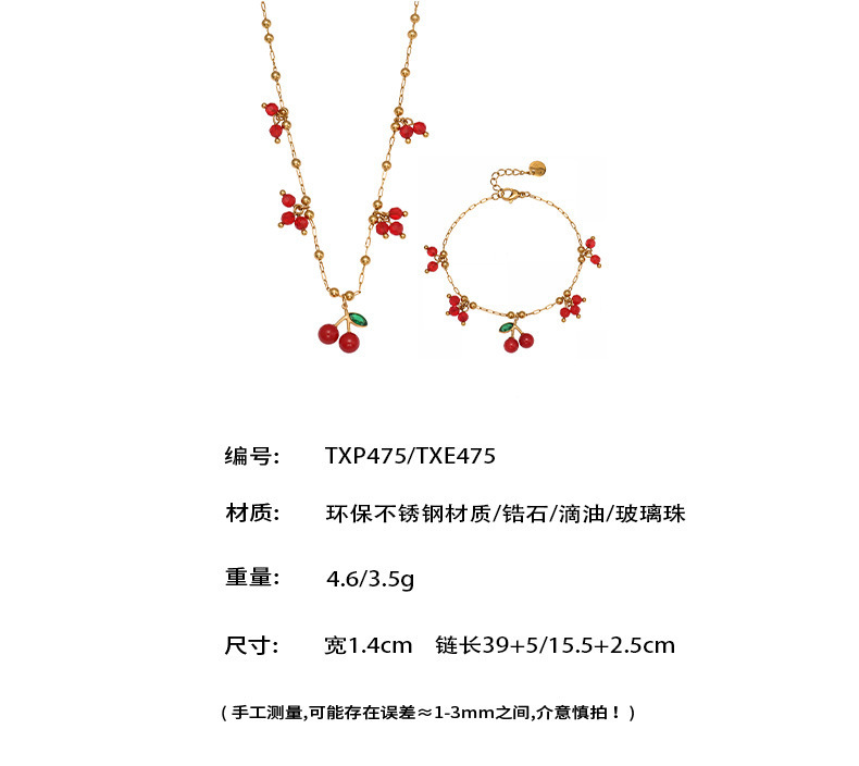 B廠【TXP475】不銹鋼大小櫻桃水果吊墜項鍊手鍊不銹鋼鍍18k真金飾品套裝 25.11-3