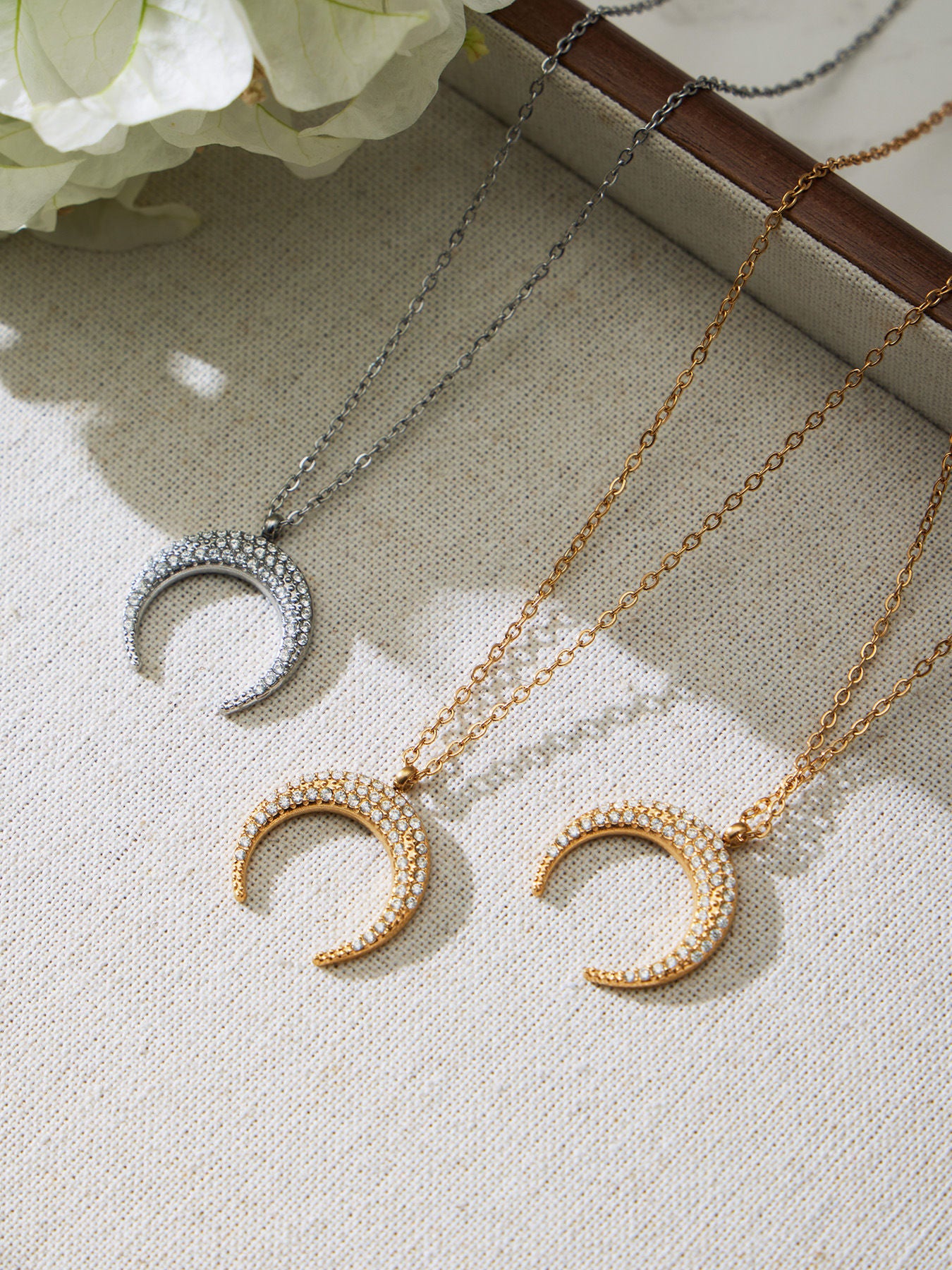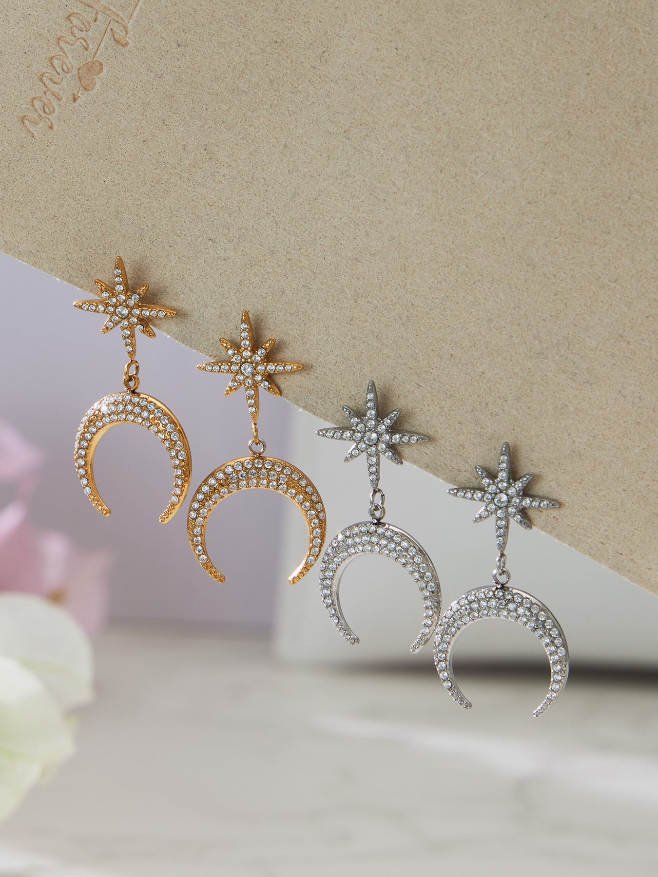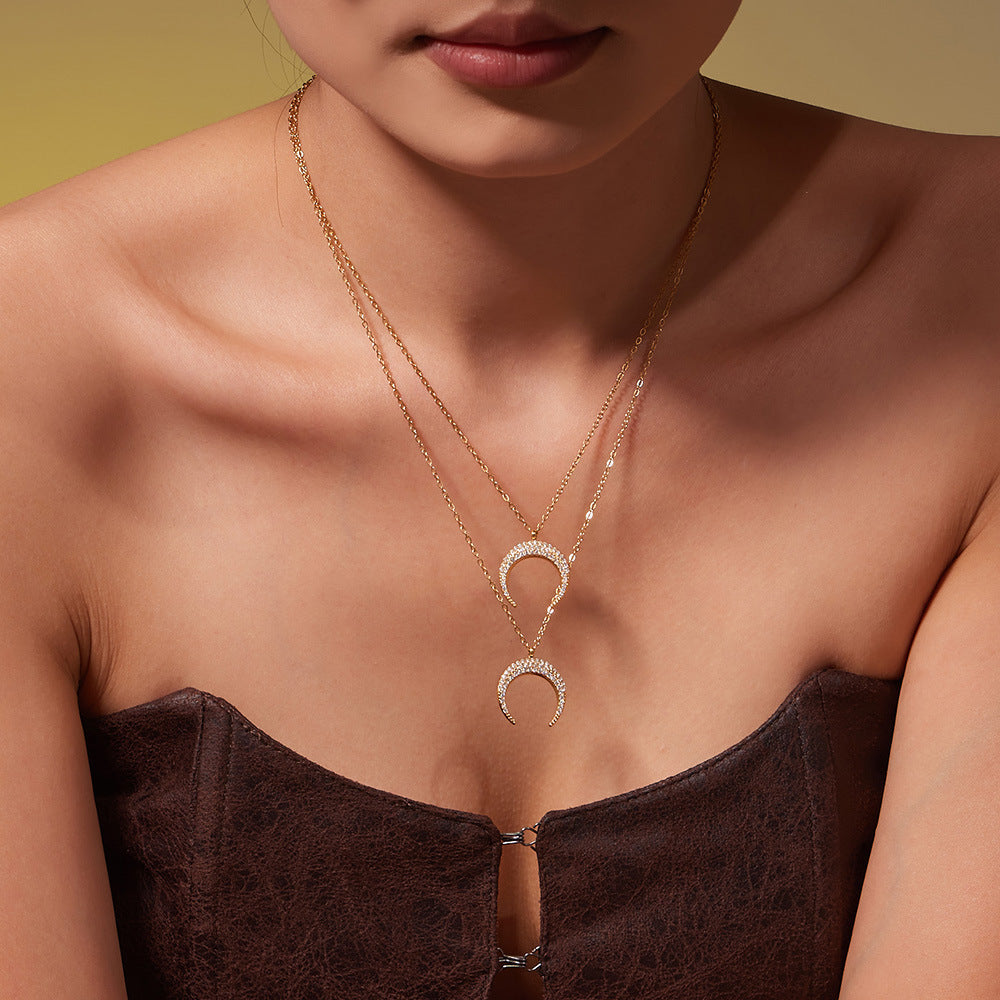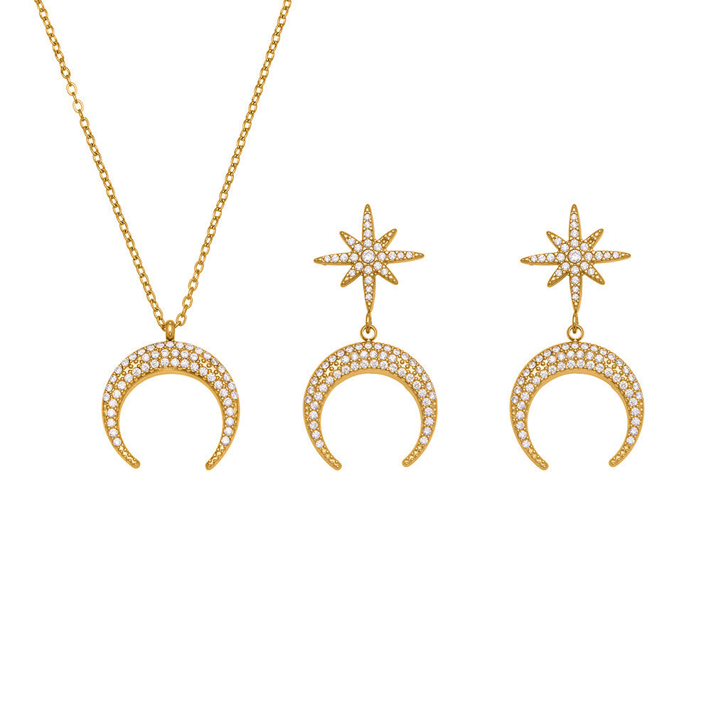 B廠【TXP485】歐美熱銷新品不銹鋼5A鋯石八芒星月牙吊墜耳環項鍊首飾套裝 25.11-4
