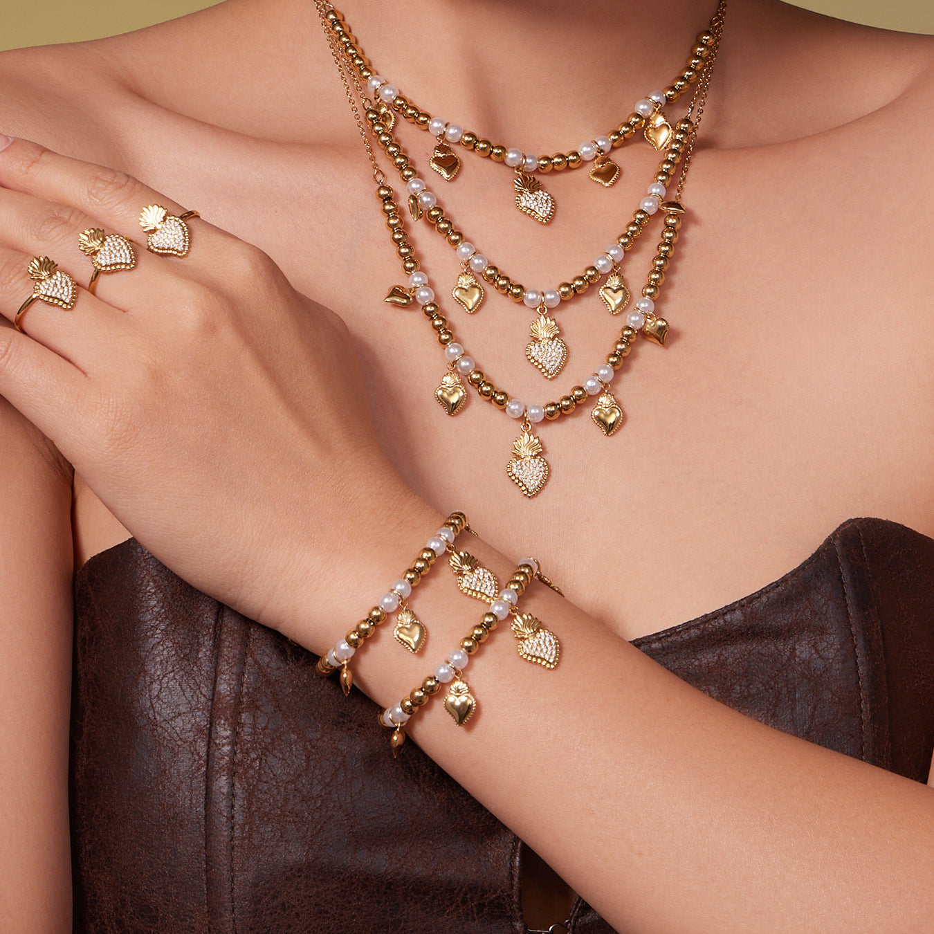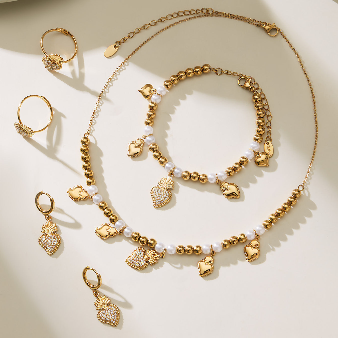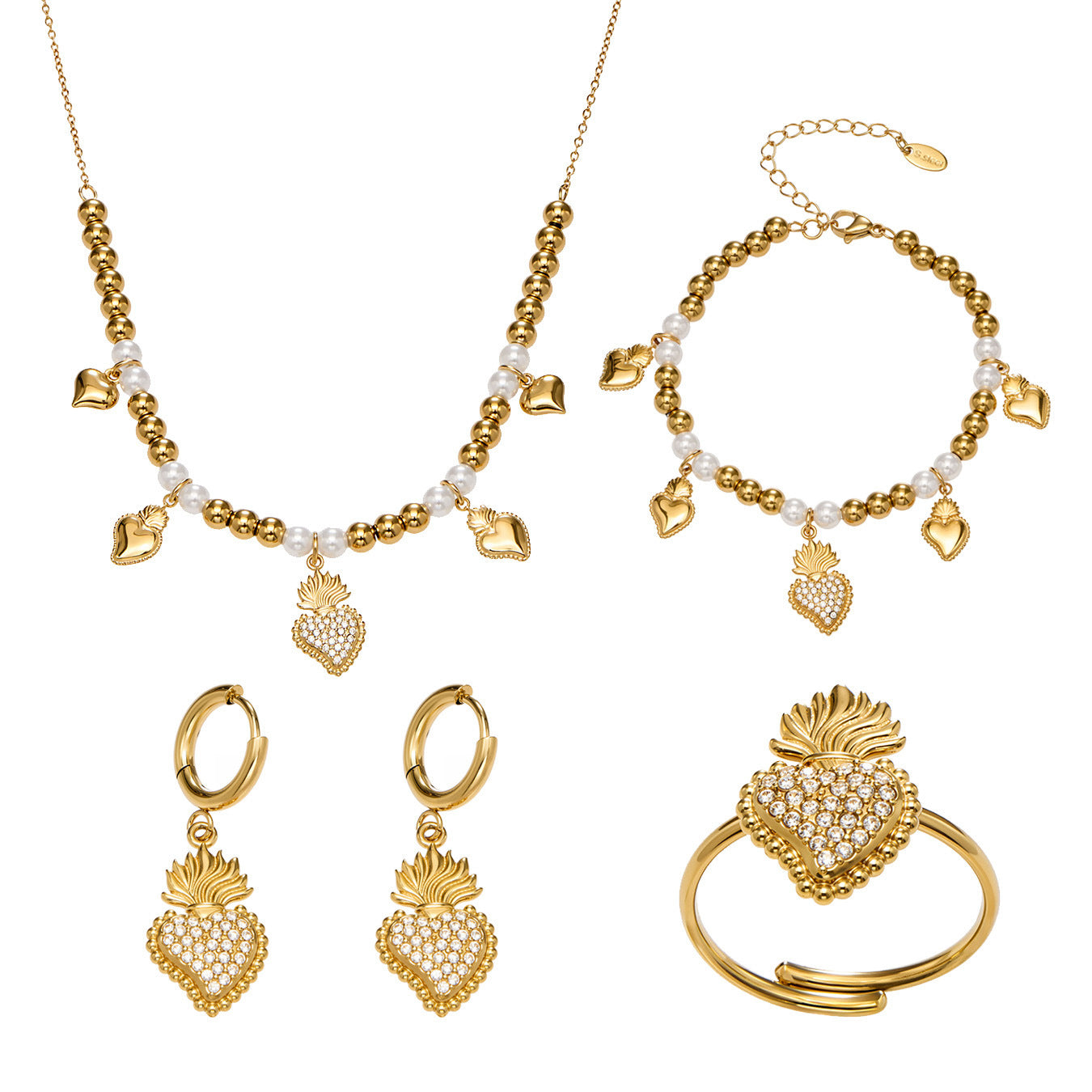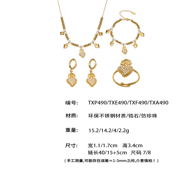 B廠【TXP490】5A鋯石愛心皇冠吊墜項鍊耳環手鍊戒指組不銹鋼鍍18k真金 25.11-4