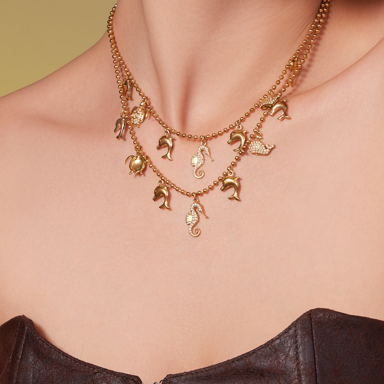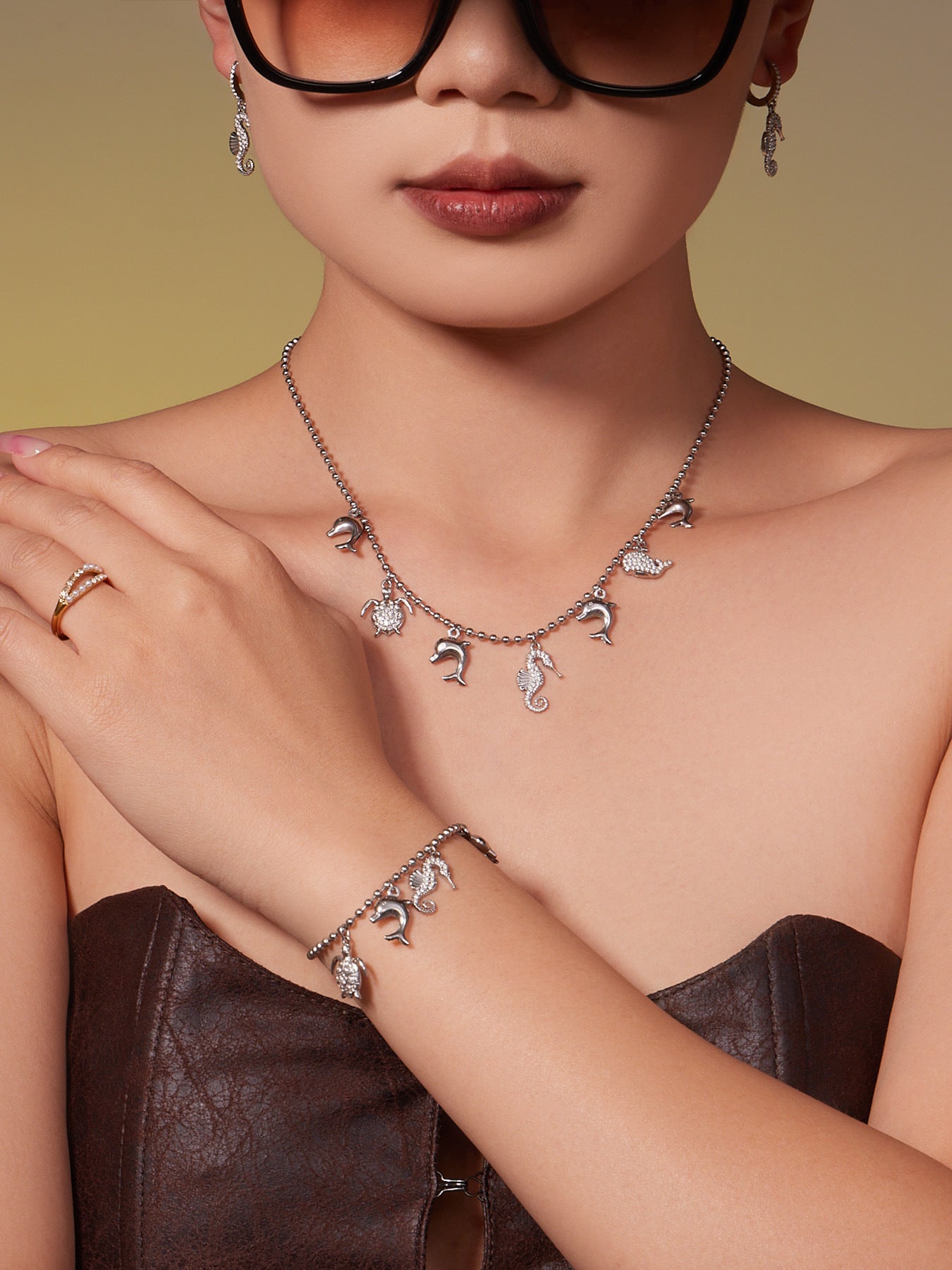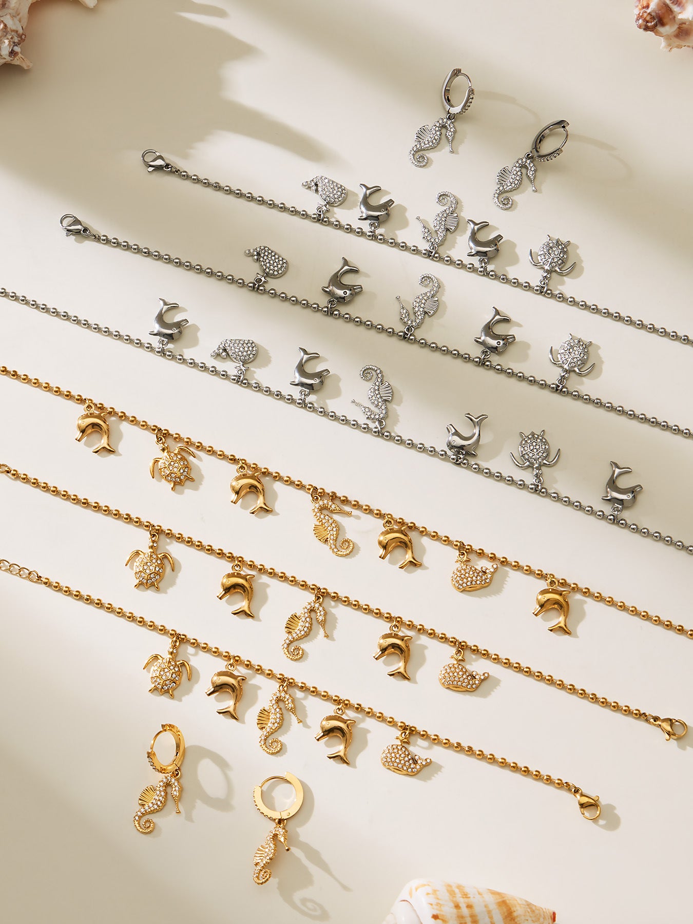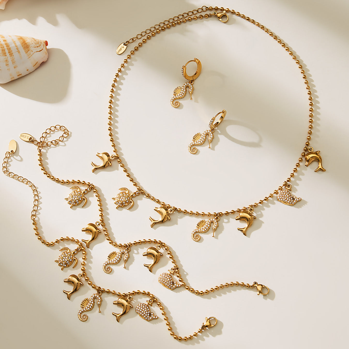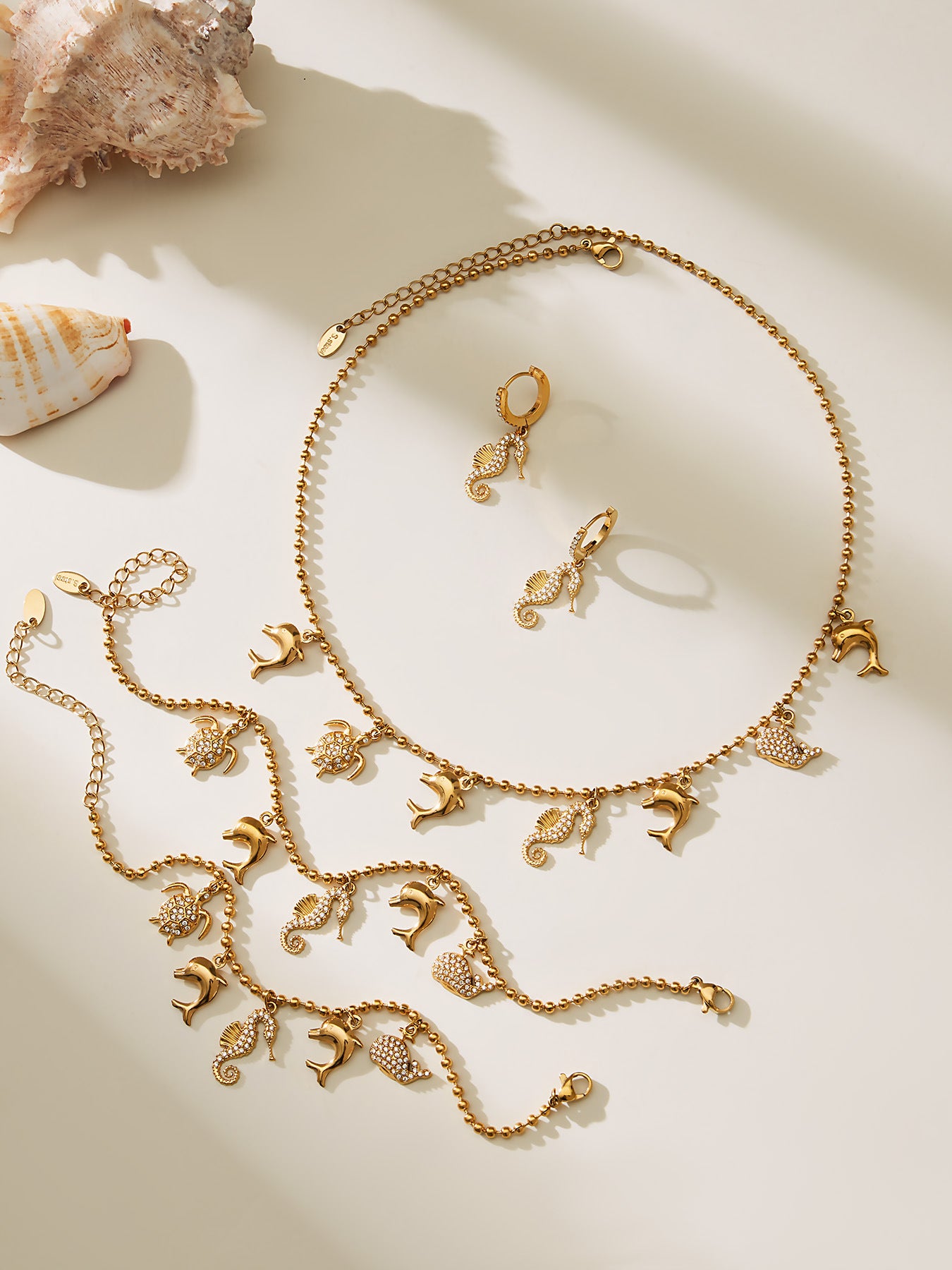 B廠【TXP494】海洋風DIY多吊墜滿鑽鋯石吊墜項鍊手鍊手鍊套組不銹鋼鍍18k真金 25.11-4