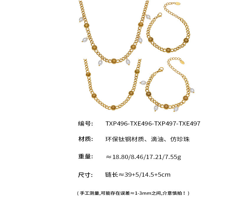 B廠【TXP496】歐美熱銷款仿珍珠流蘇項鍊手鍊不鏽鋼鍍18k金ins小眾設計首飾套裝 25.11-4