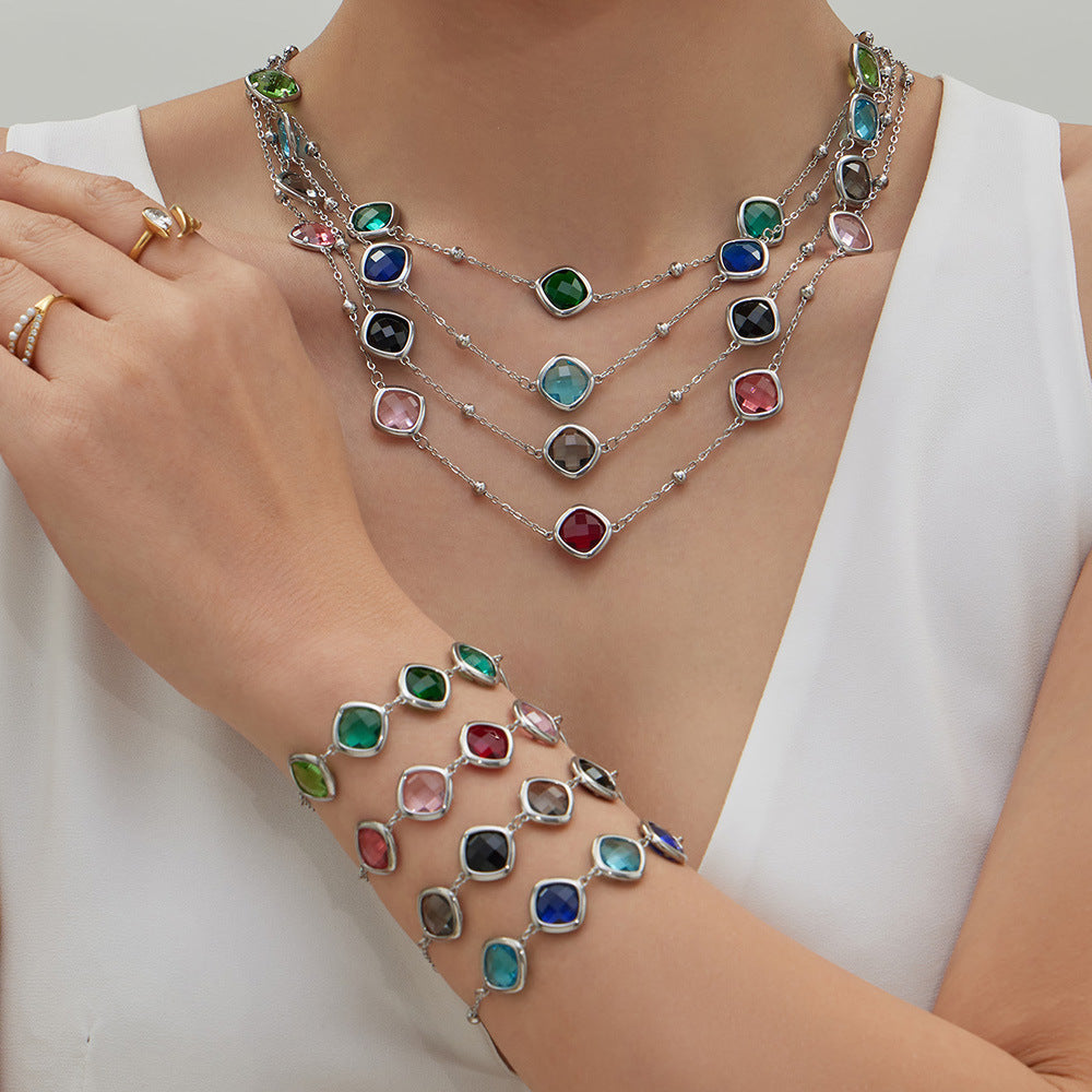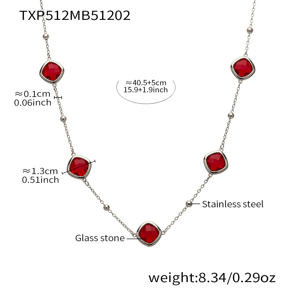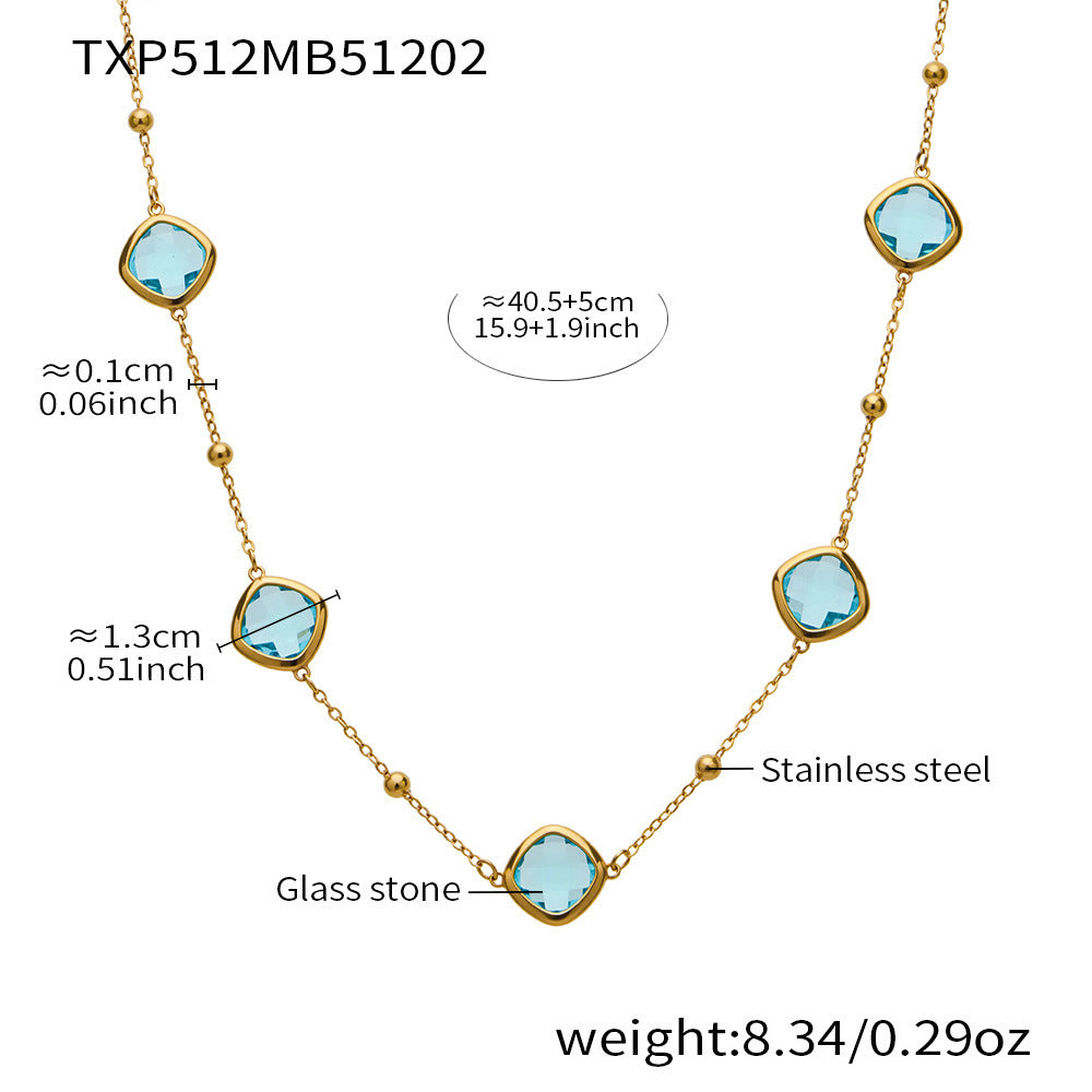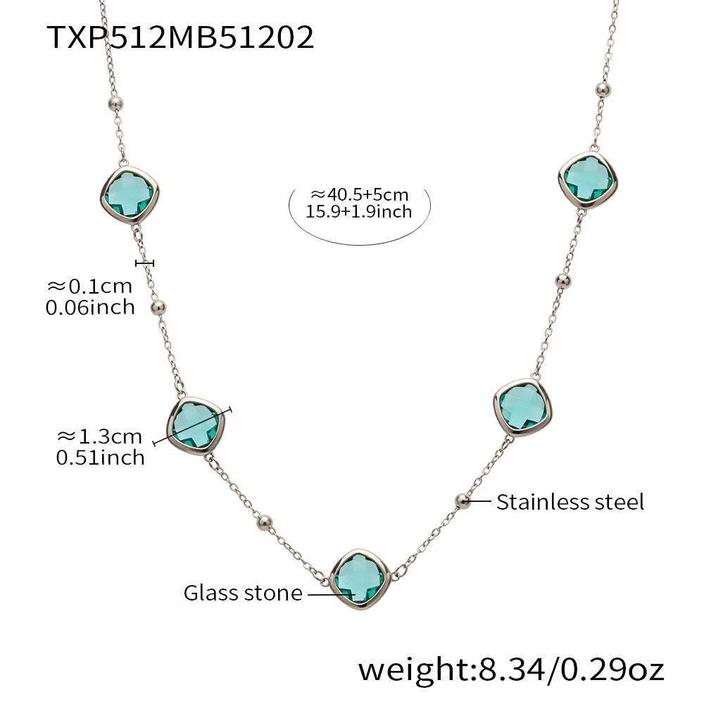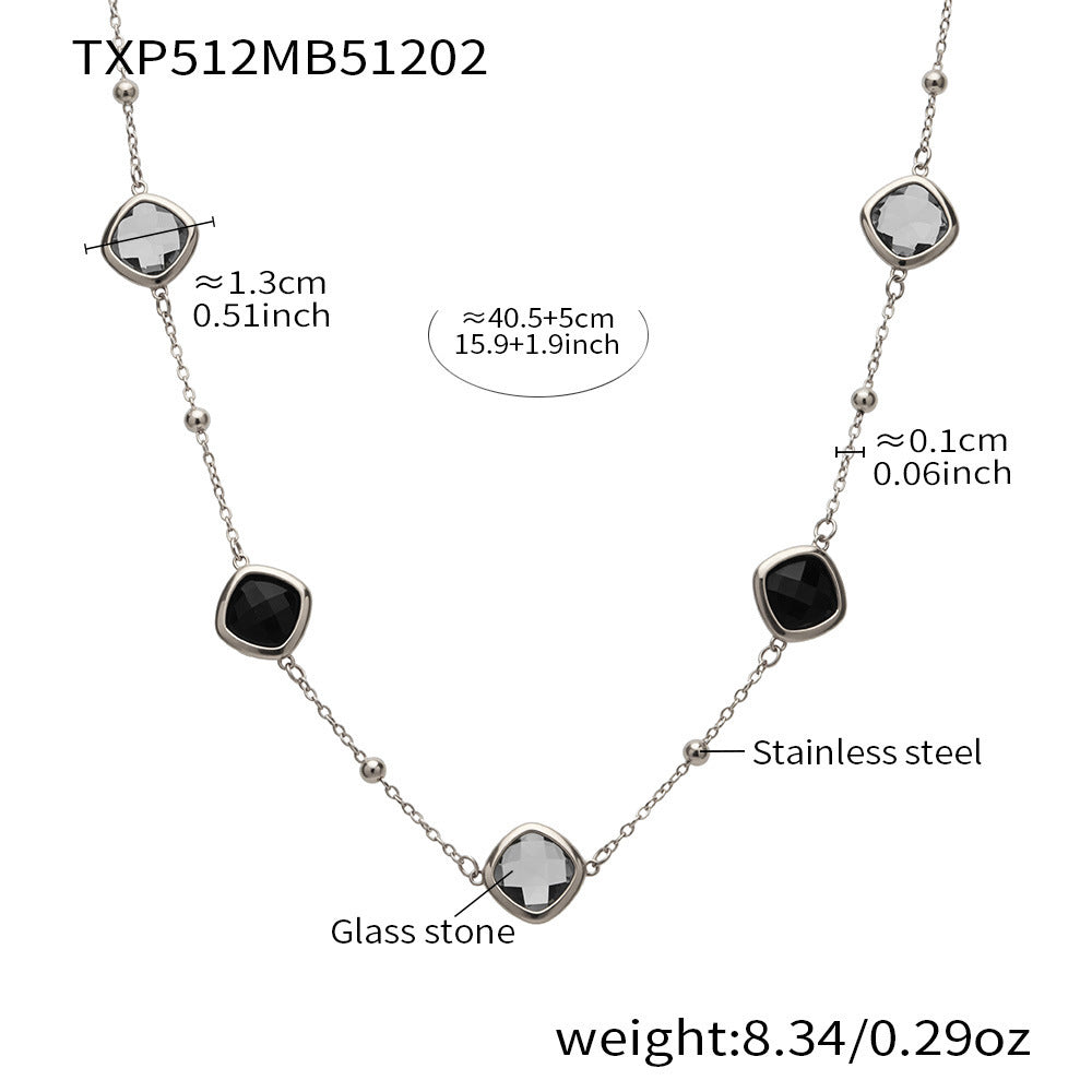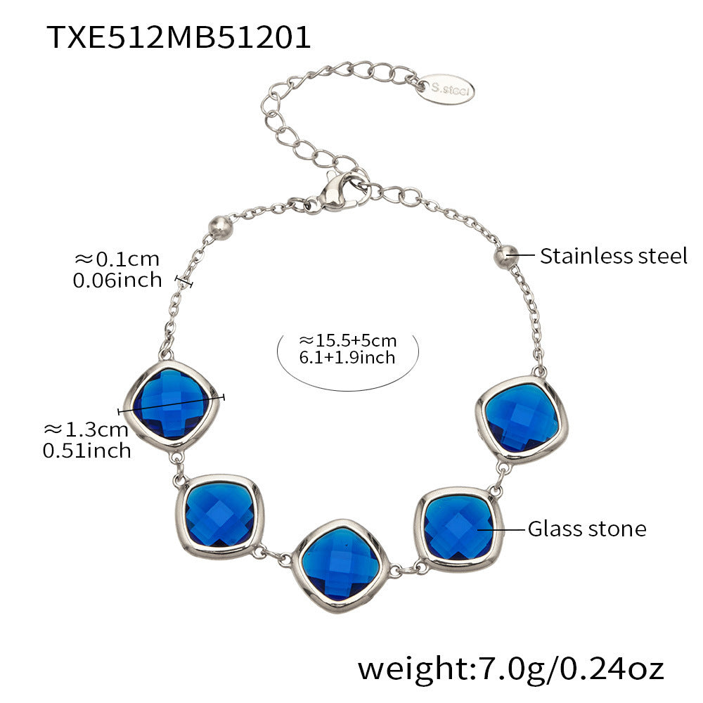 B廠【TXP512】不銹鋼正方形切面玻璃石手鍊項鍊耳環套裝歐美風潮酷氣質珠寶首飾 25.12-2
