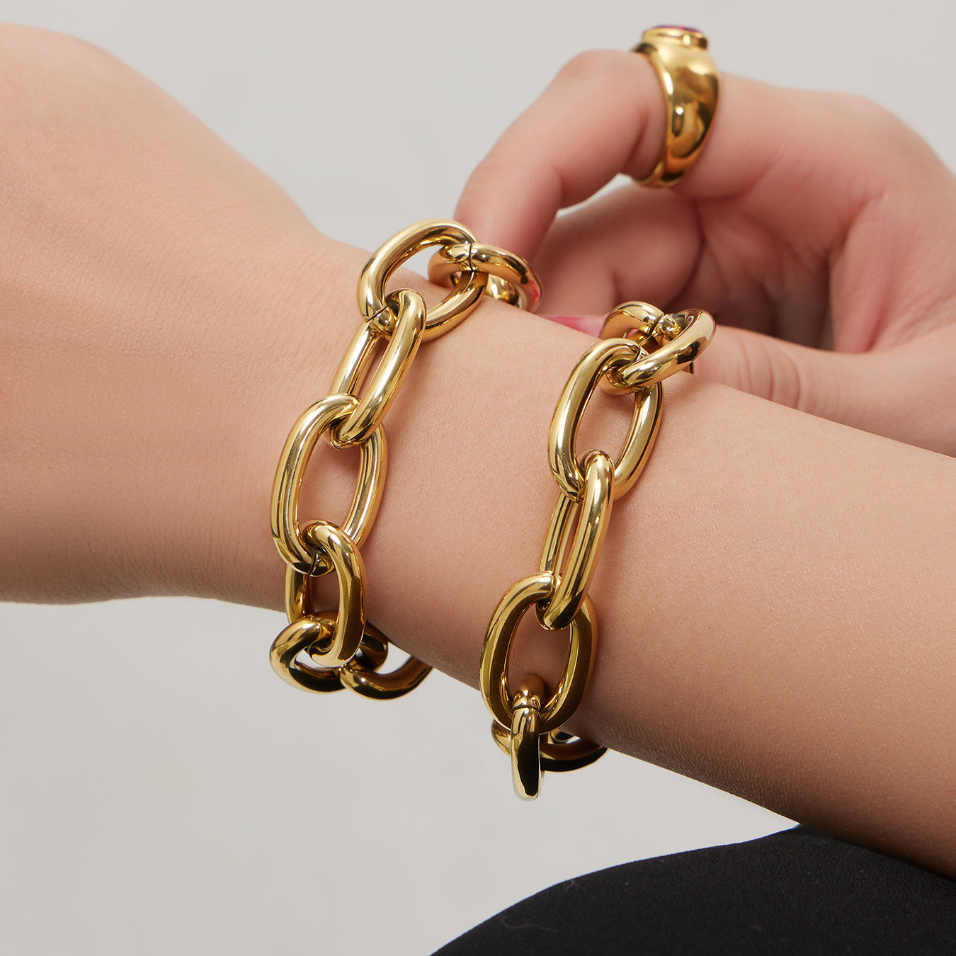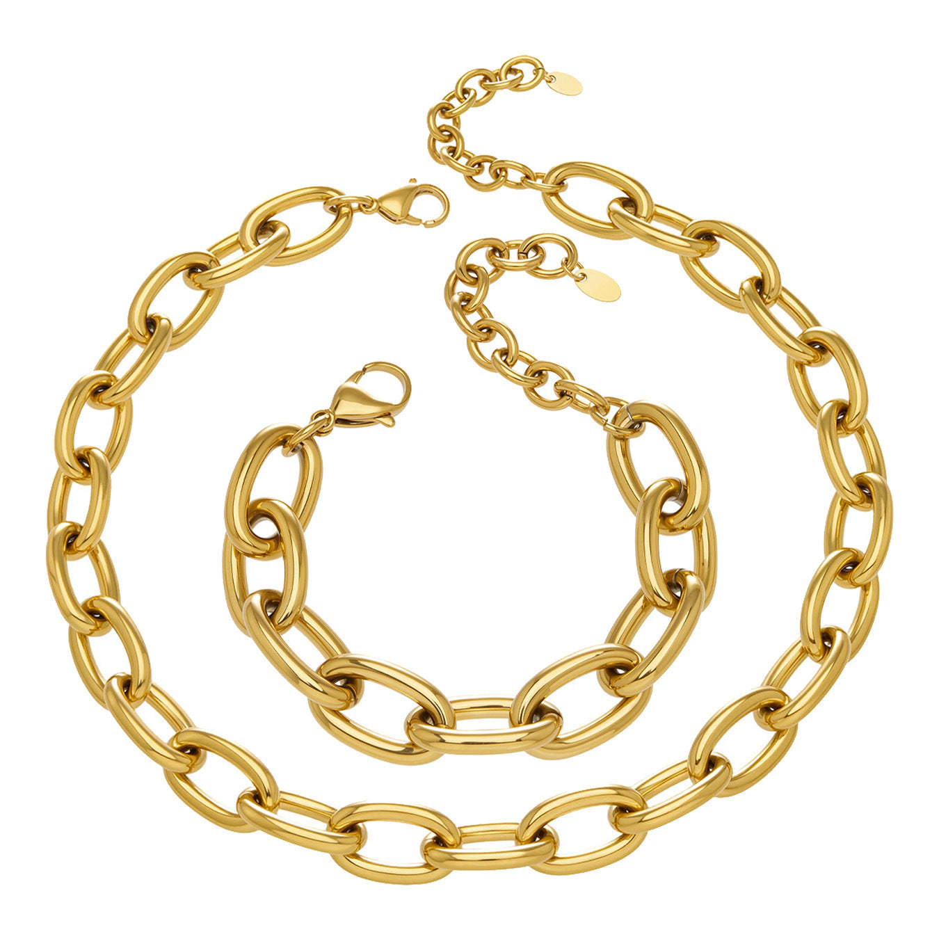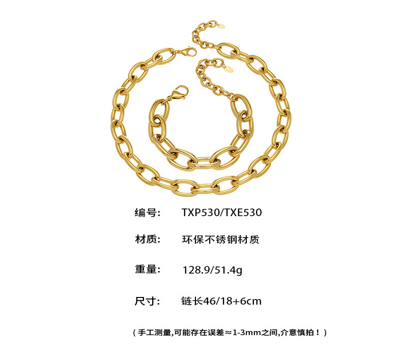 B廠【TXP530】歐美ins嘻哈風粗鏈條項鍊手鍊套裝不鏽鋼鍍18k真金簡約輕奢設計感 26.01-2