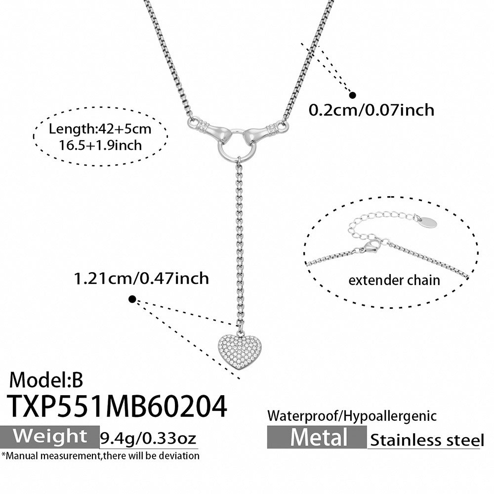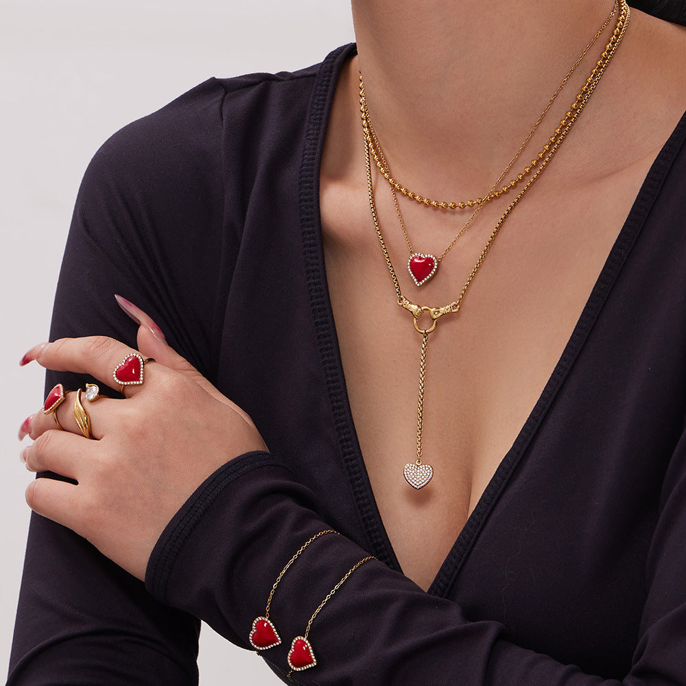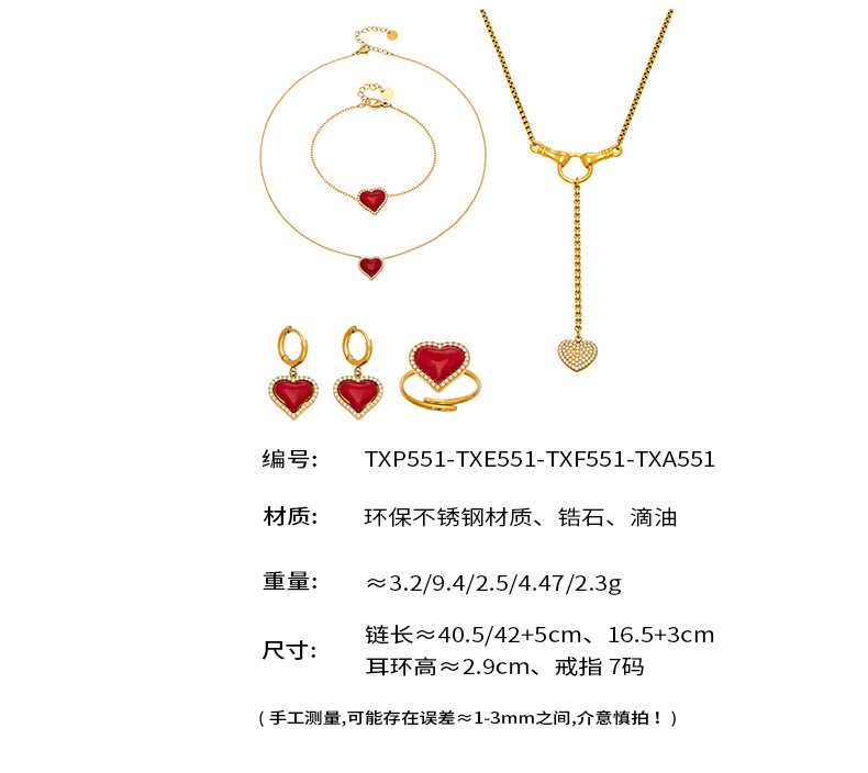B廠【TXP551】歐美ins風簡約輕奢滴油紅愛心包邊鋯石吊墜項鍊手鍊耳環戒指套裝 26.02-1