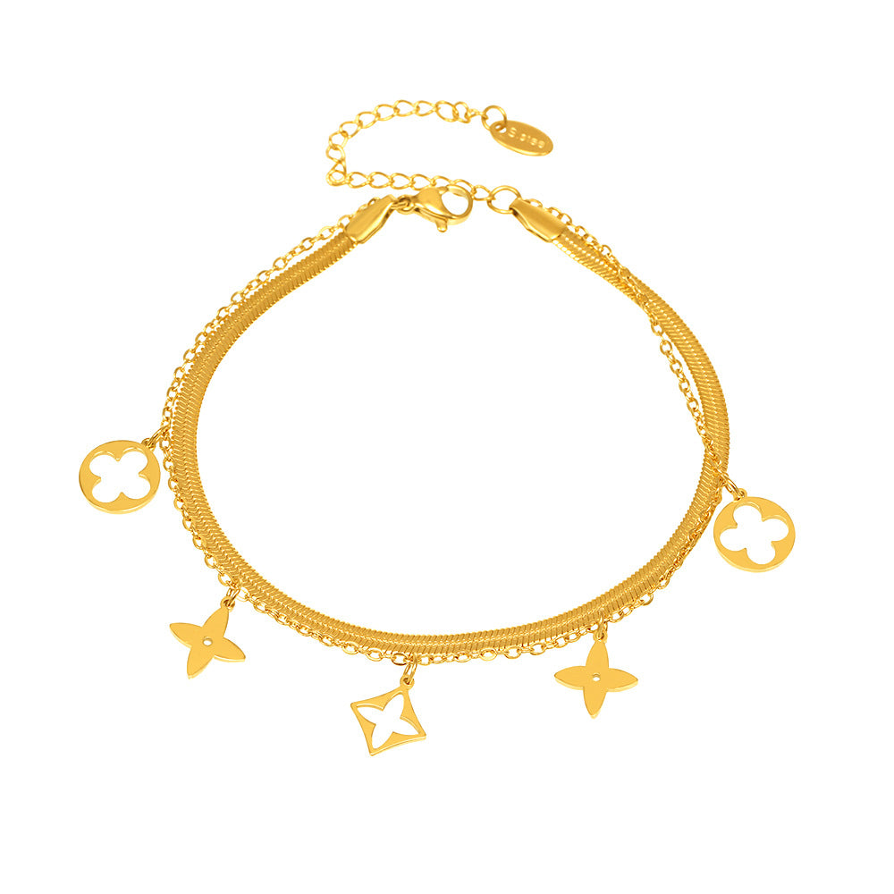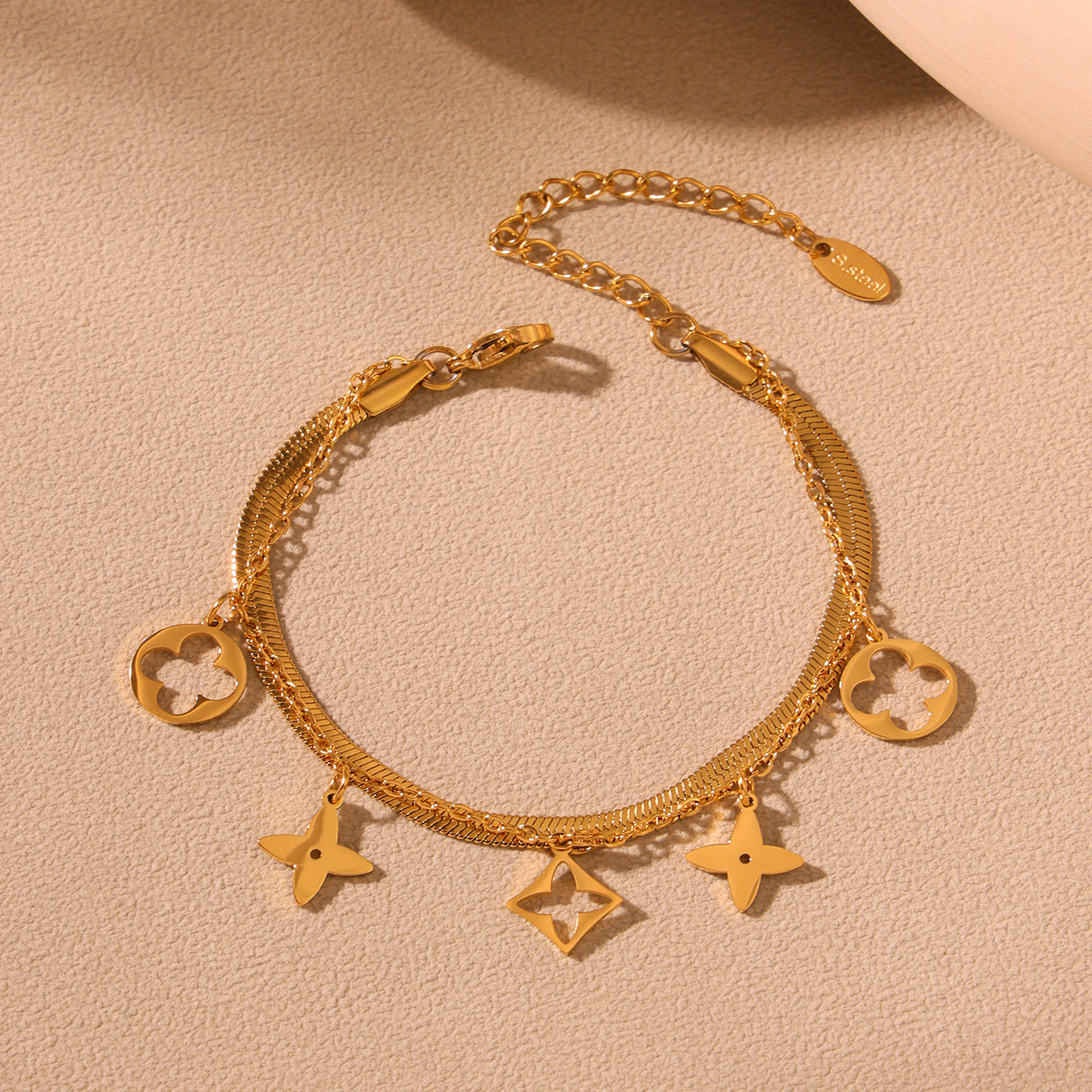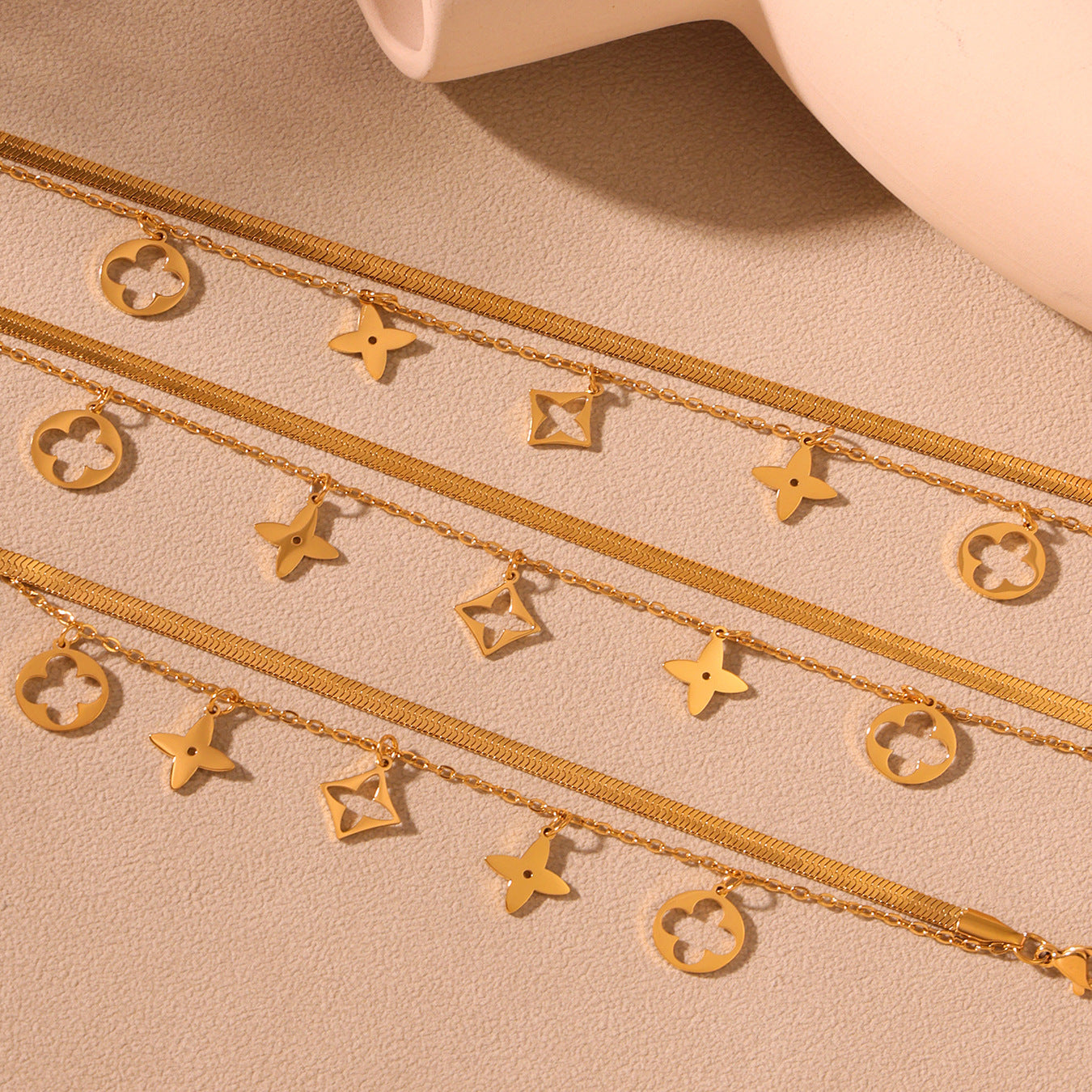 B廠【TXS257】簡約輕奢風不鏽鋼刀片雙層腳鍊鏤空老花多配件吊墜夏日潮款 25.05-2