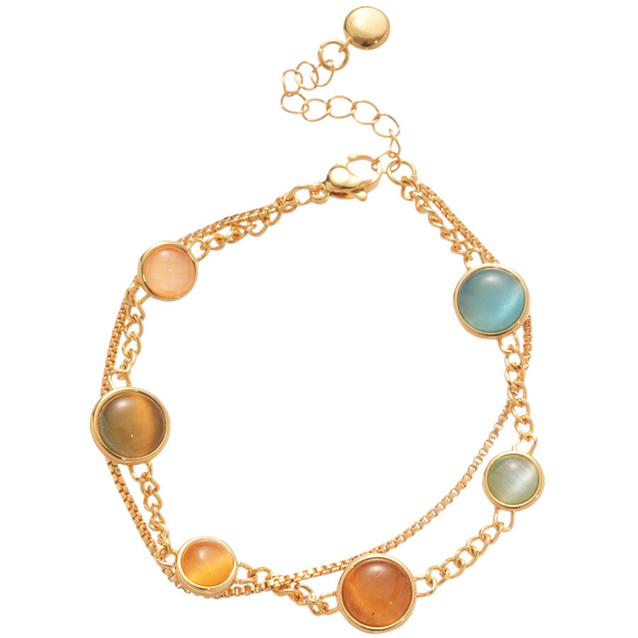 A廠【WB1617】18k真金電鍍貓眼石圓形雙層手鍊復古宮廷風手環輕奢高級感手飾女 25.09-3