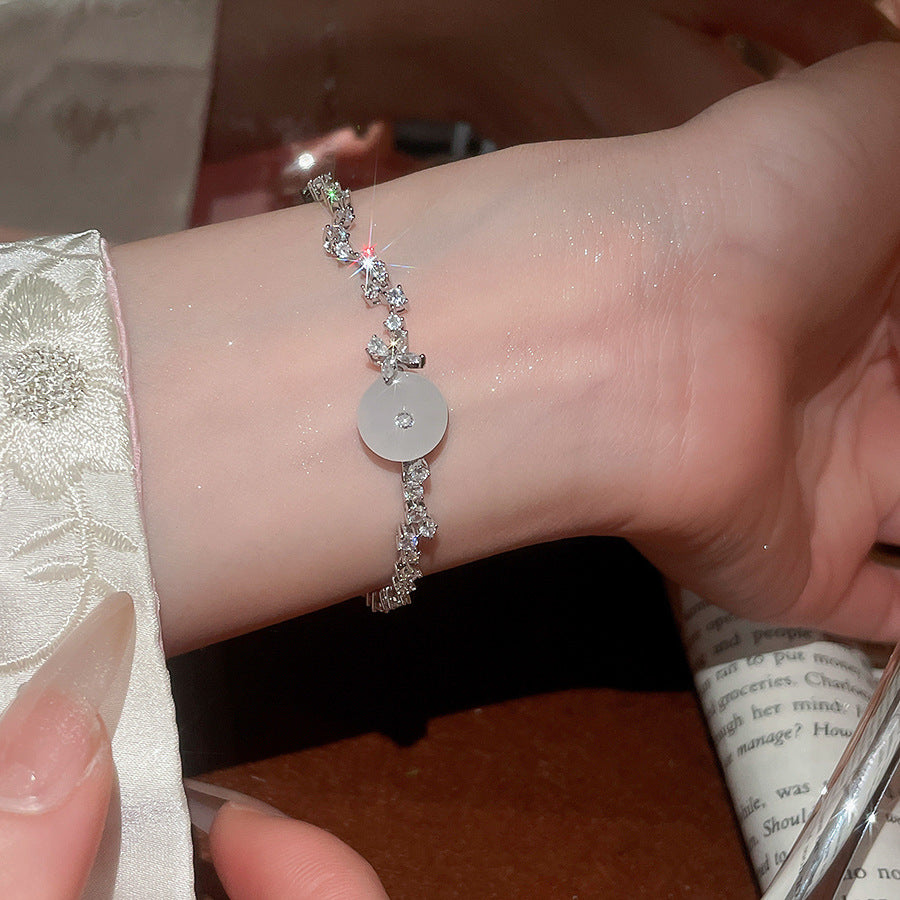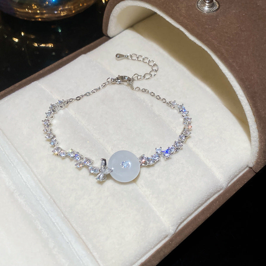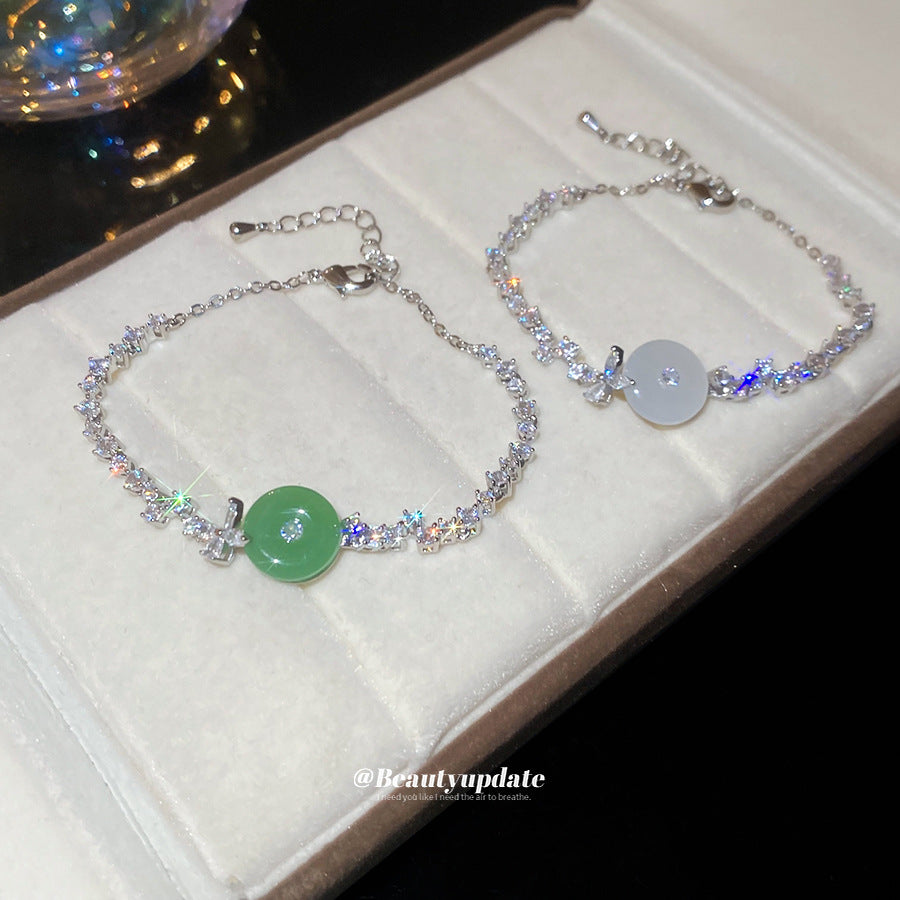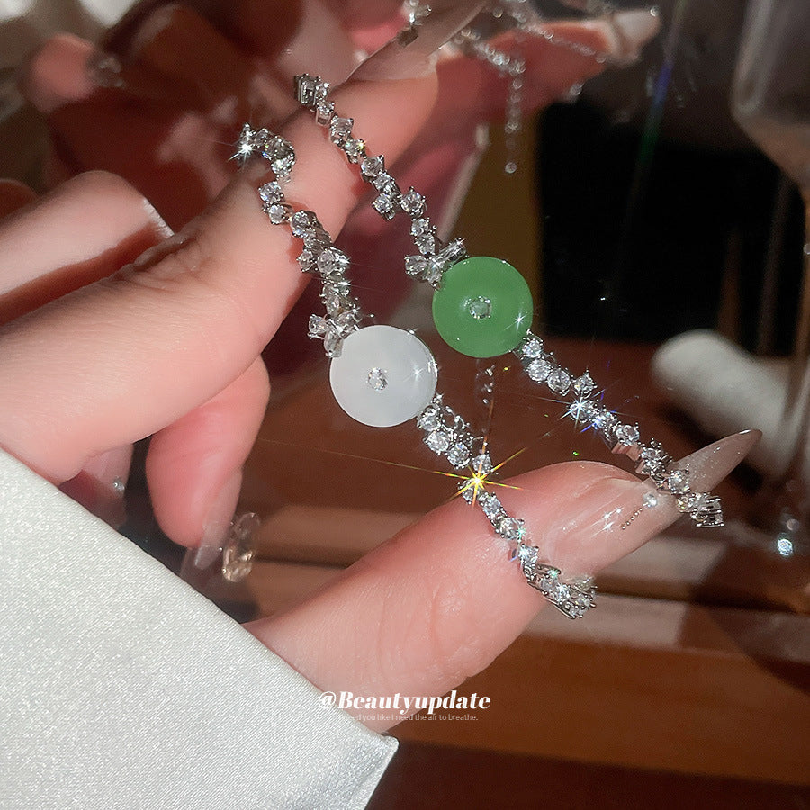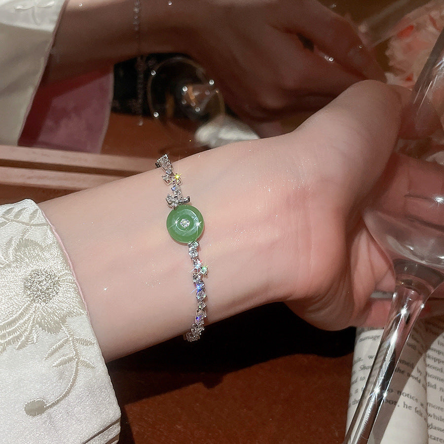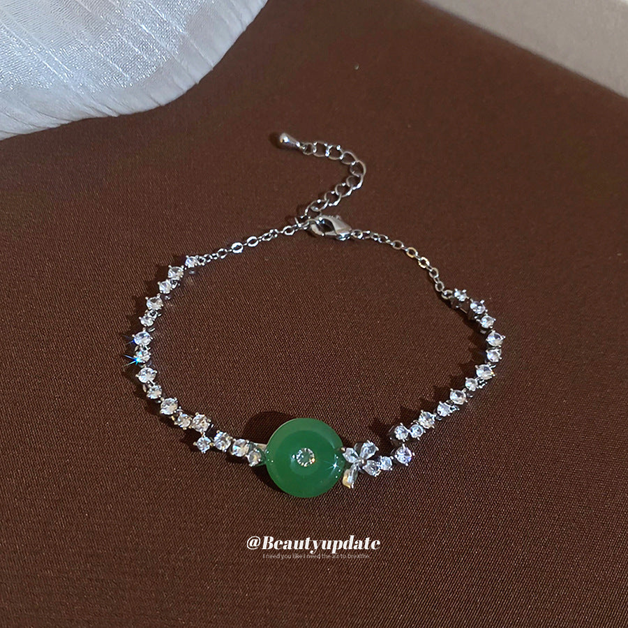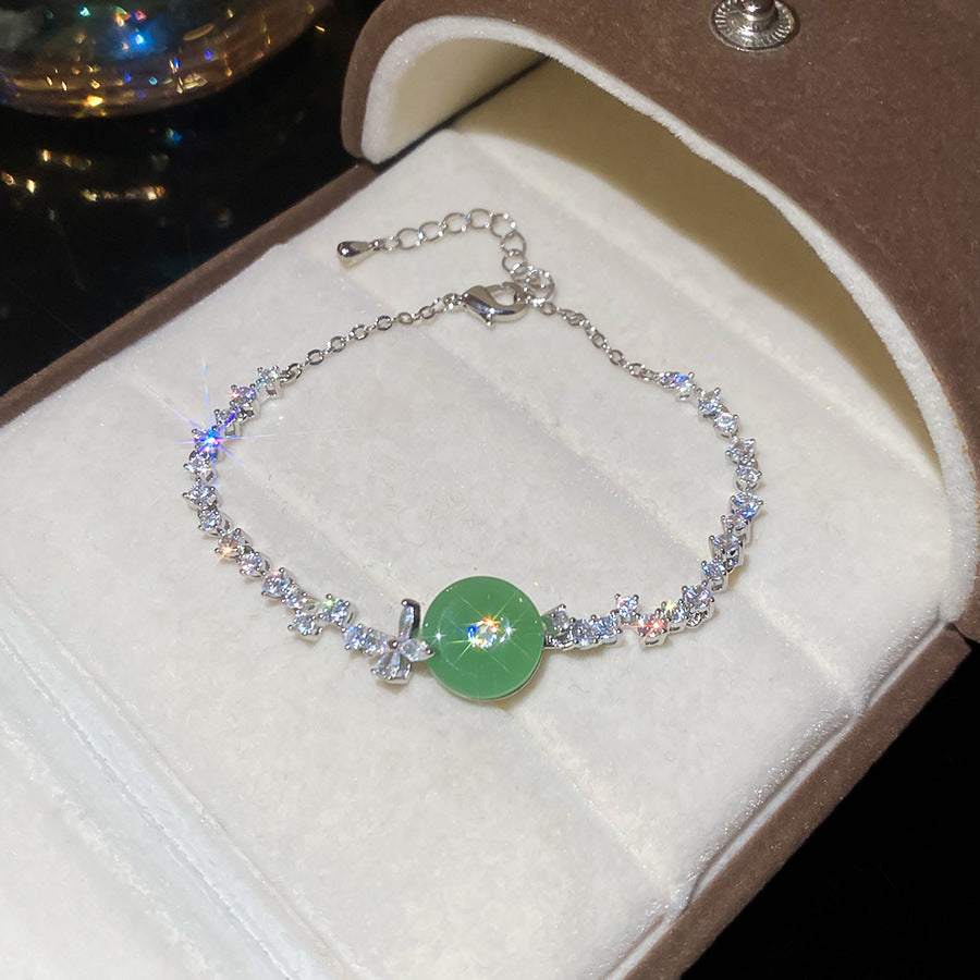A廠【WB1727】新中式鋯石玉髓幾何圓形吊墜手鍊時尚優雅氣質手環輕奢高級感手飾 25.10-4