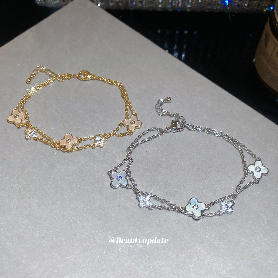 A廠【WB1740】18K真金電鍍花朵可調式手鍊簡約時尚日常百搭手環輕奢高級感手飾 25.10-5