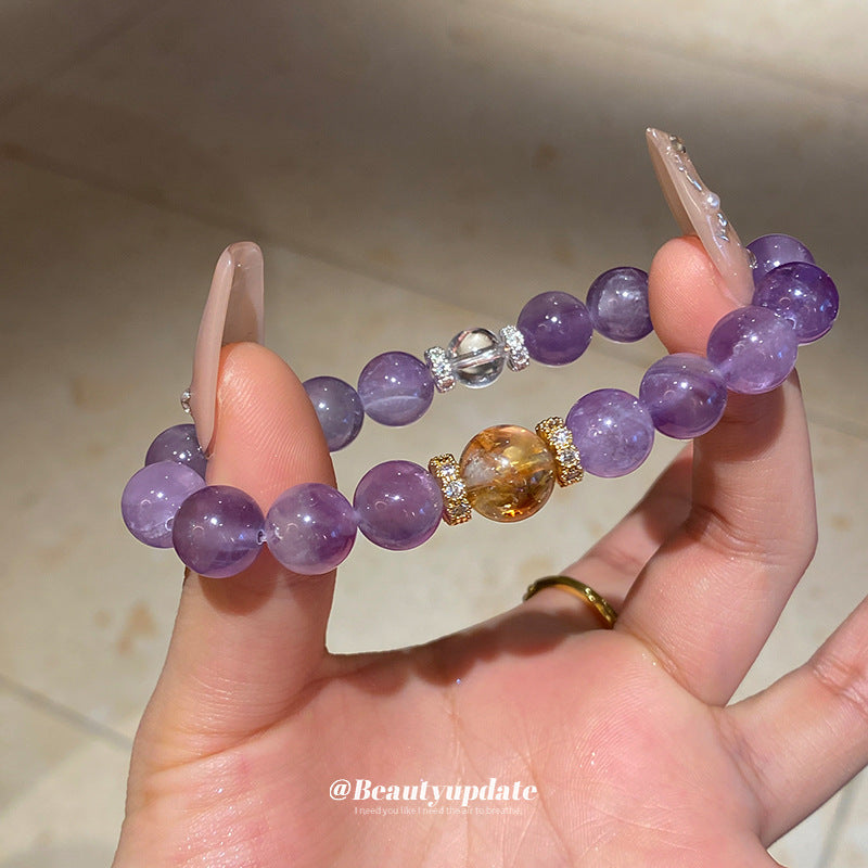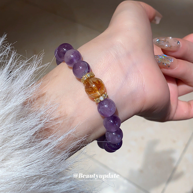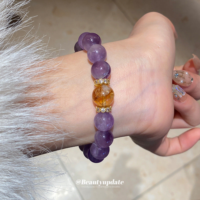 A廠【WB448】新中式鋯石圓球淺紫晶黃塔晶手鍊輕奢高級感水晶手串氣質小眾手飾 25.01-4