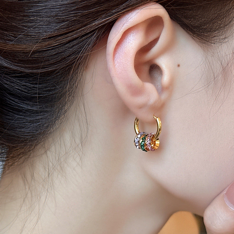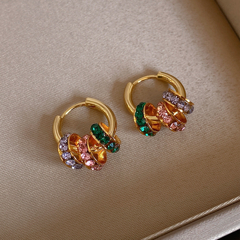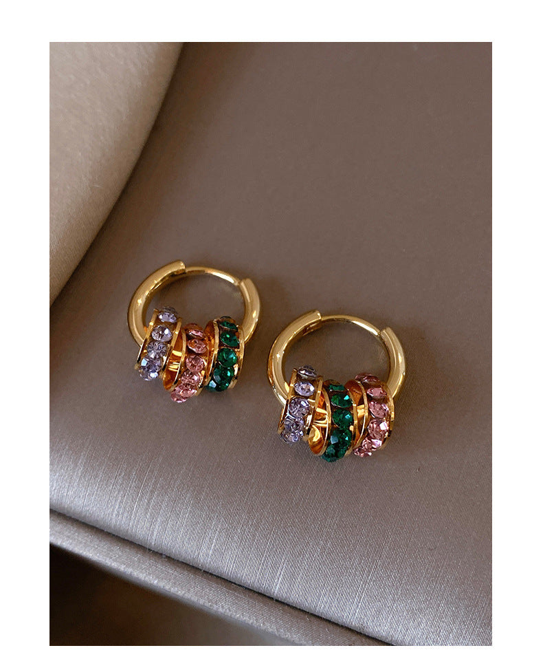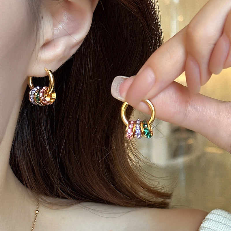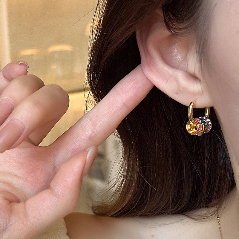 A廠【WE3997】超閃彩色鋯石圓圈耳環復古時尚氣質百搭耳環輕奢高級感小眾耳飾女 25.08-3