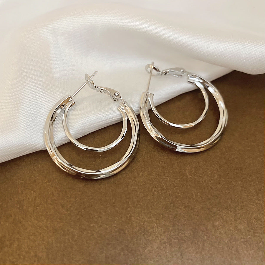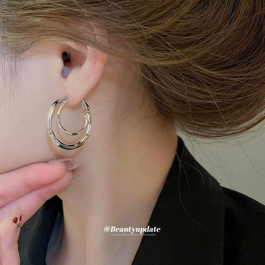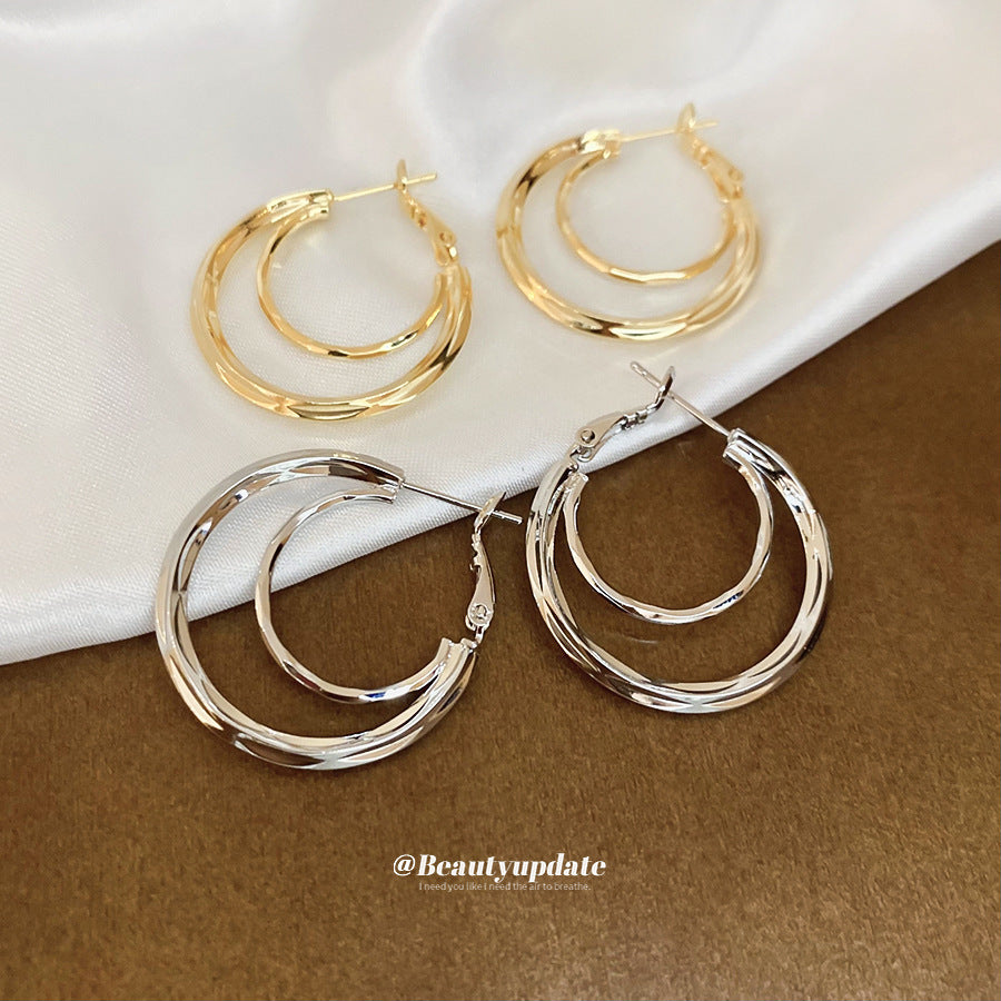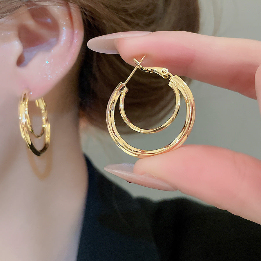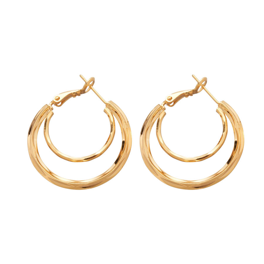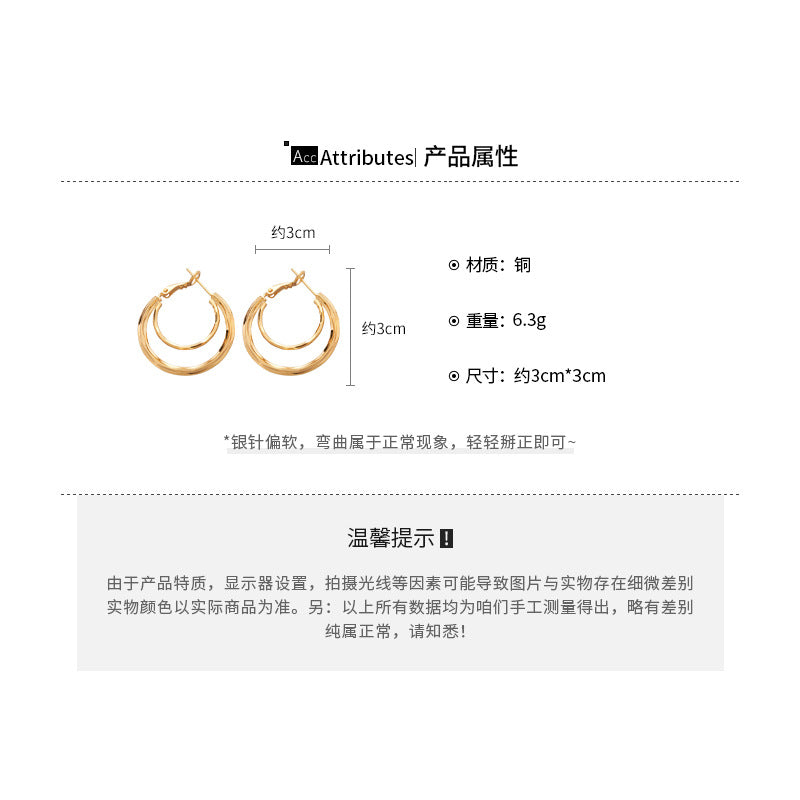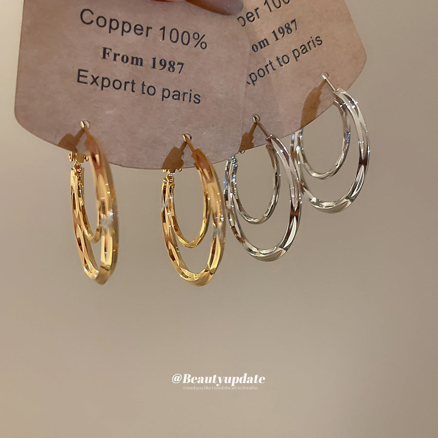 A廠【WE4054】18k真金電鍍925銀針雙層切面耳圈歐美時尚簡約耳環小眾設計感耳飾女 25.08-5