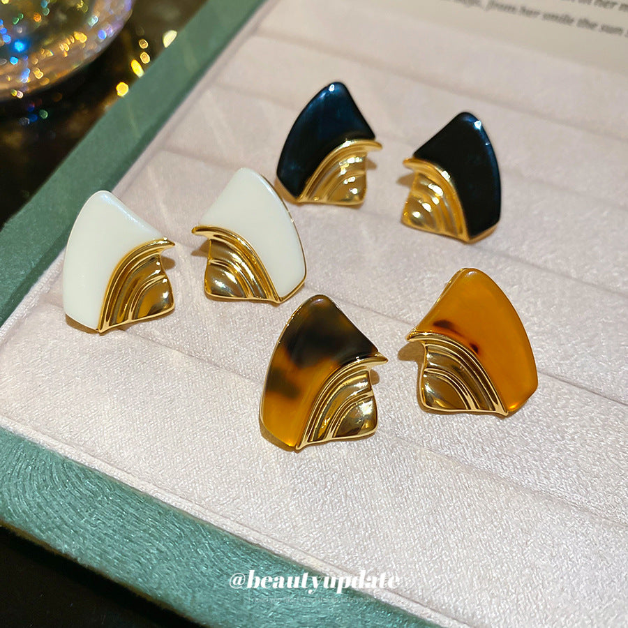A廠【WE4104】18k真金電鍍925銀針樹脂幾何吊墜耳環歐美百搭耳環小眾高級感耳飾女 25.08-5
