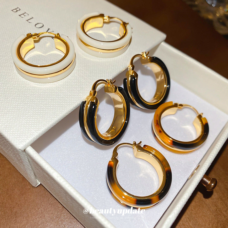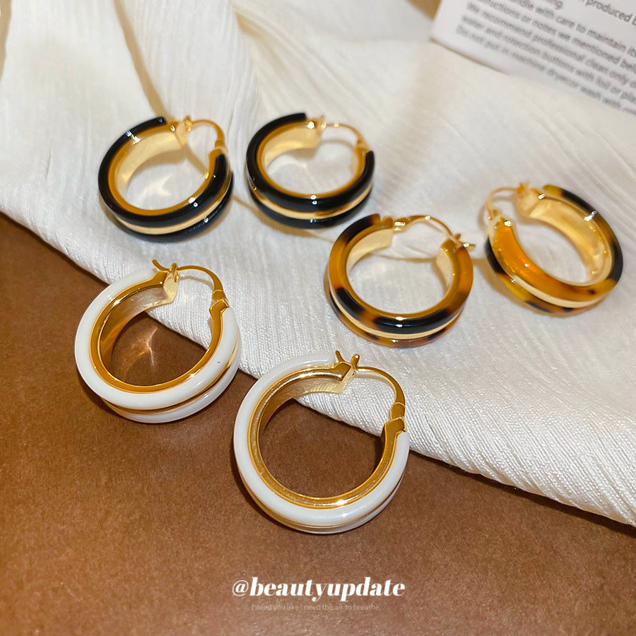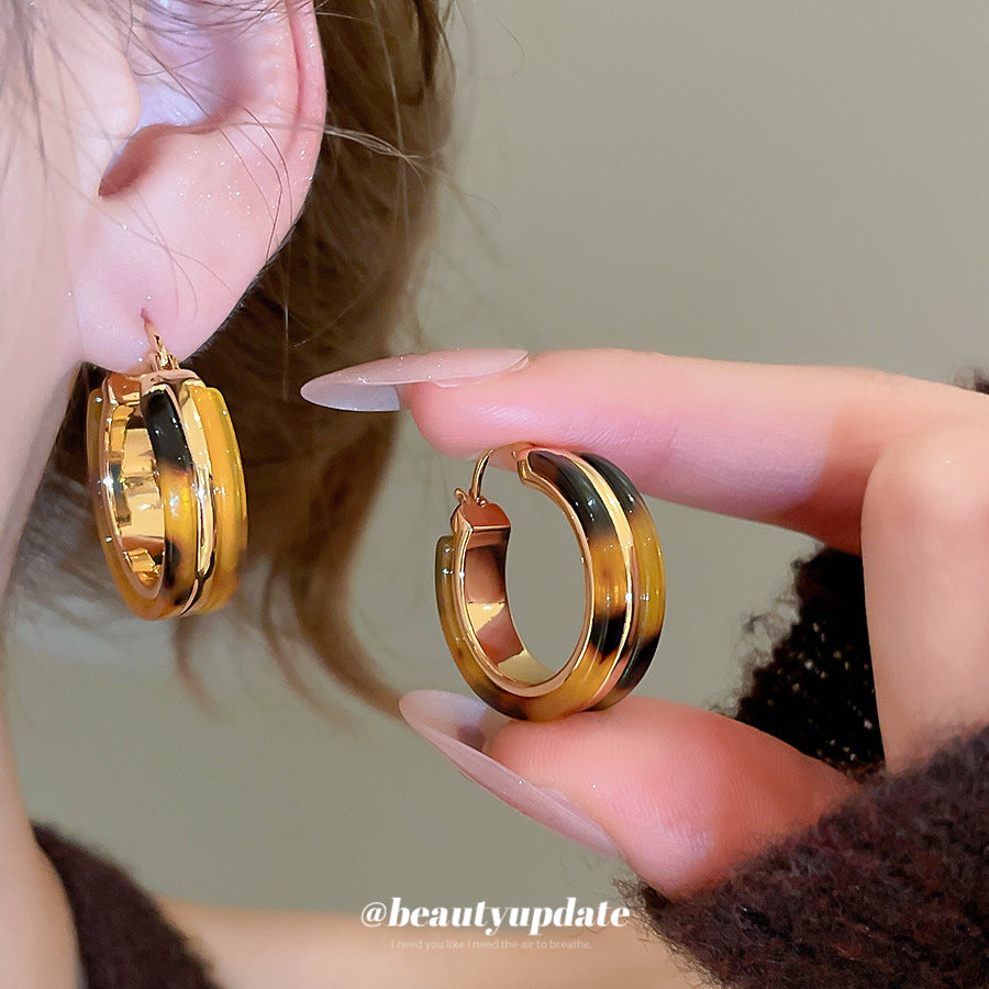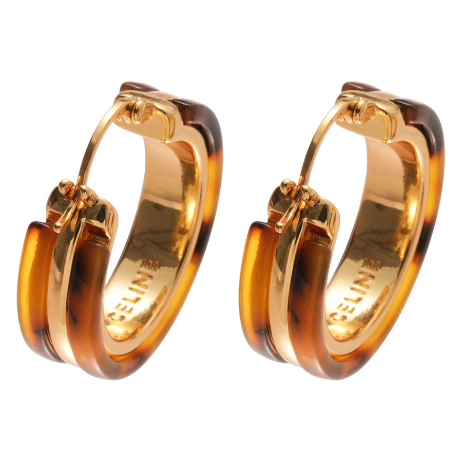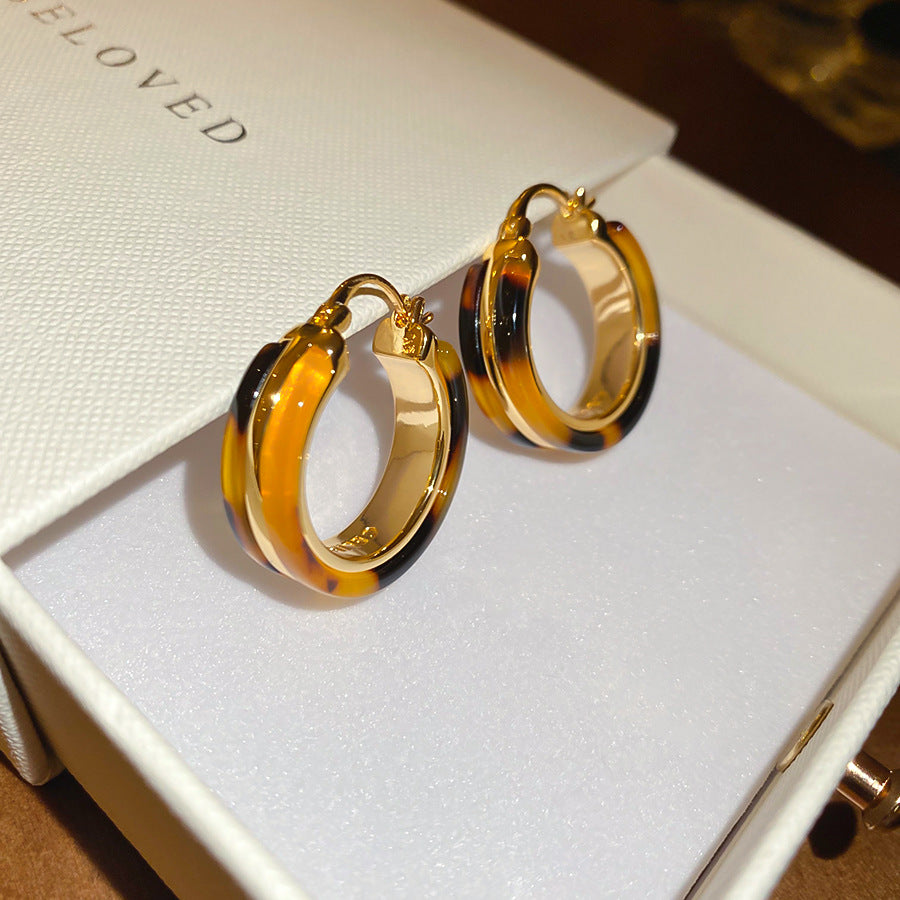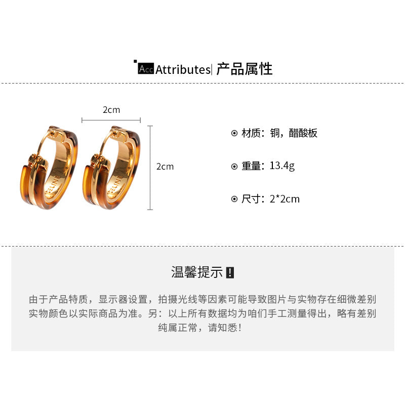 A廠【WE4105】18k真金電鍍醋酸板圓形耳扣歐美宮廷風豹紋耳環輕奢高級感耳飾女 25.08-5
