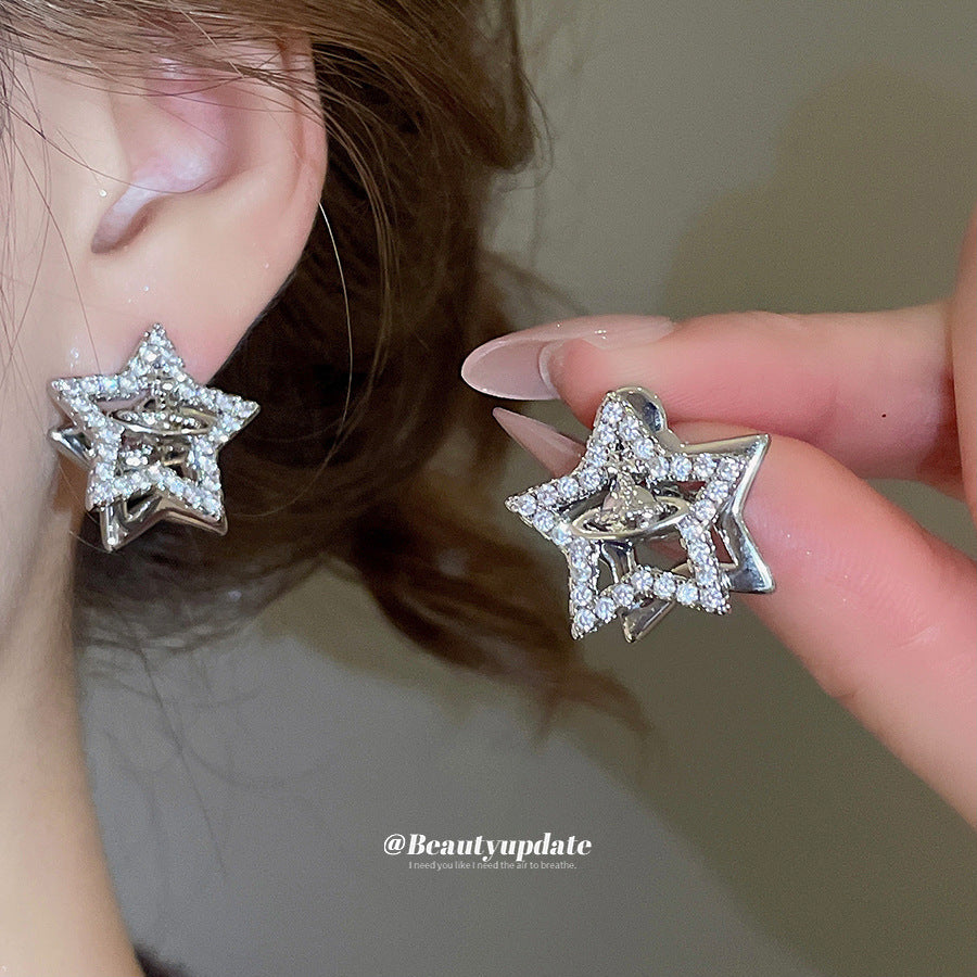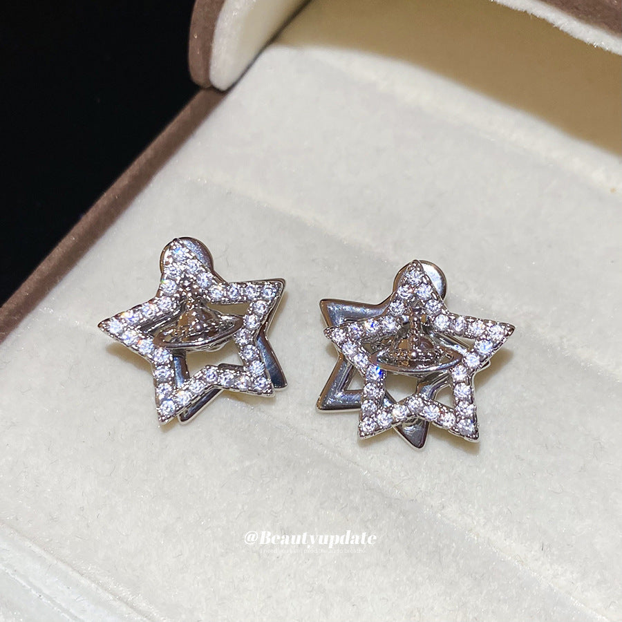 A廠【WE4124】925銀針超閃鋯石土星吊墜耳環時尚冷淡風氣質耳環精緻輕奢高級感耳環 25.08-5