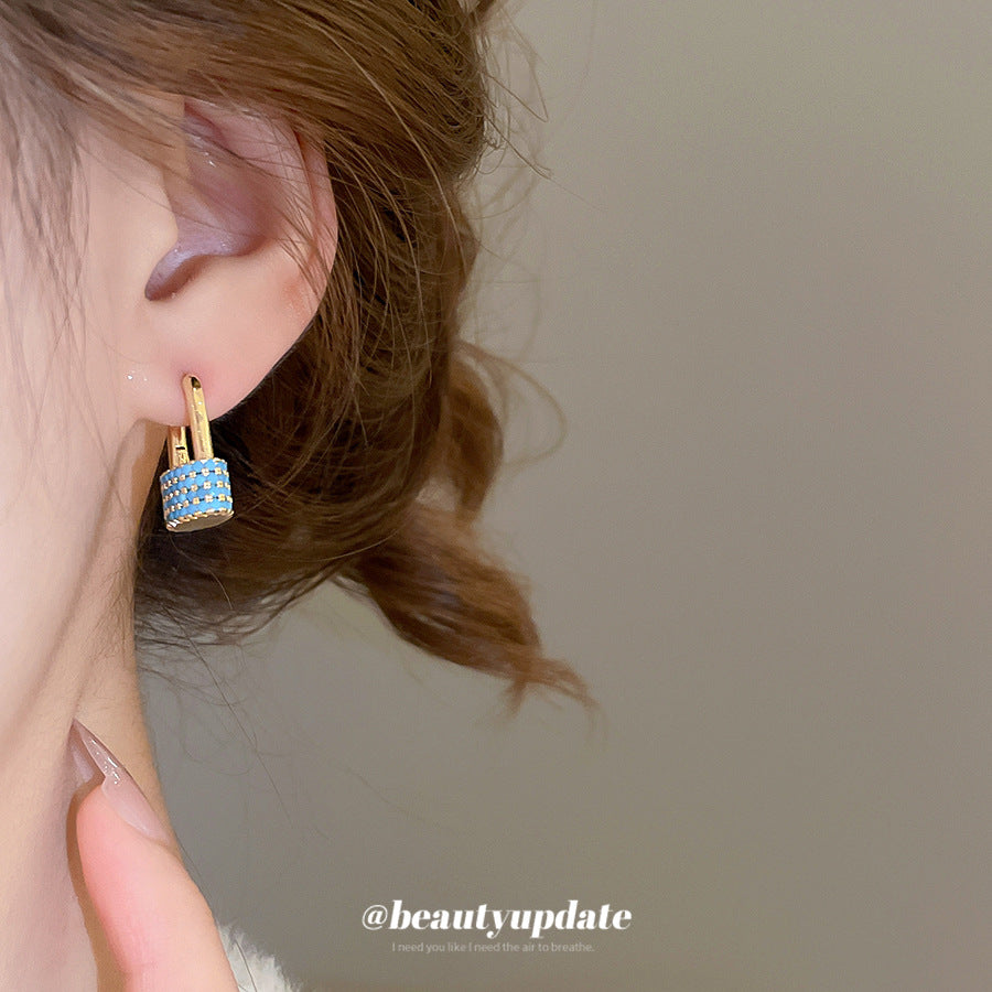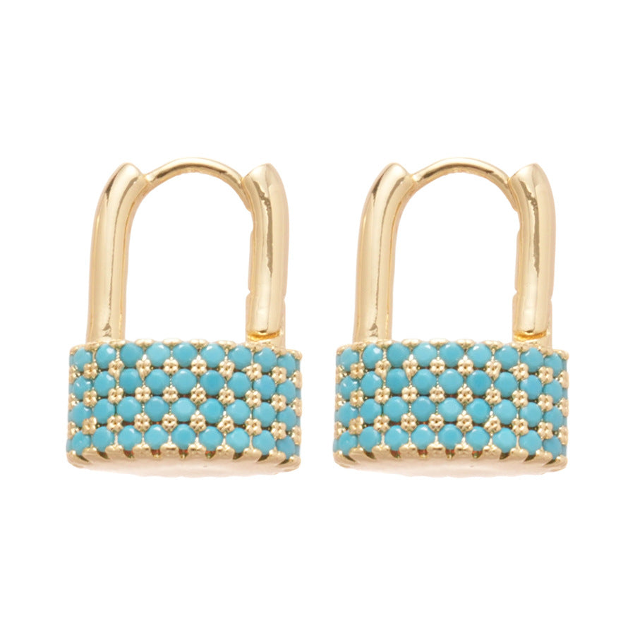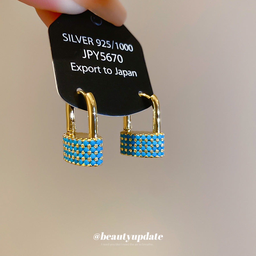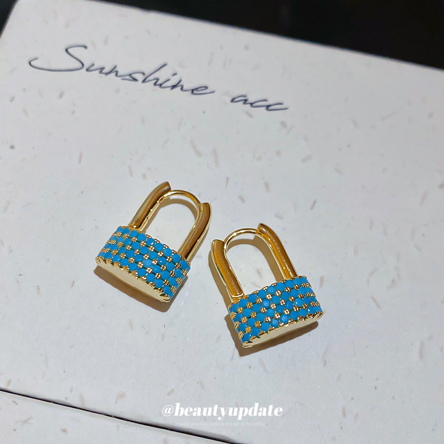 A廠【WE4142】鋯石幾何橢圓形鎖吊吊墜耳環時尚個性獨特設計感耳環輕奢高級感耳飾 25.08-5