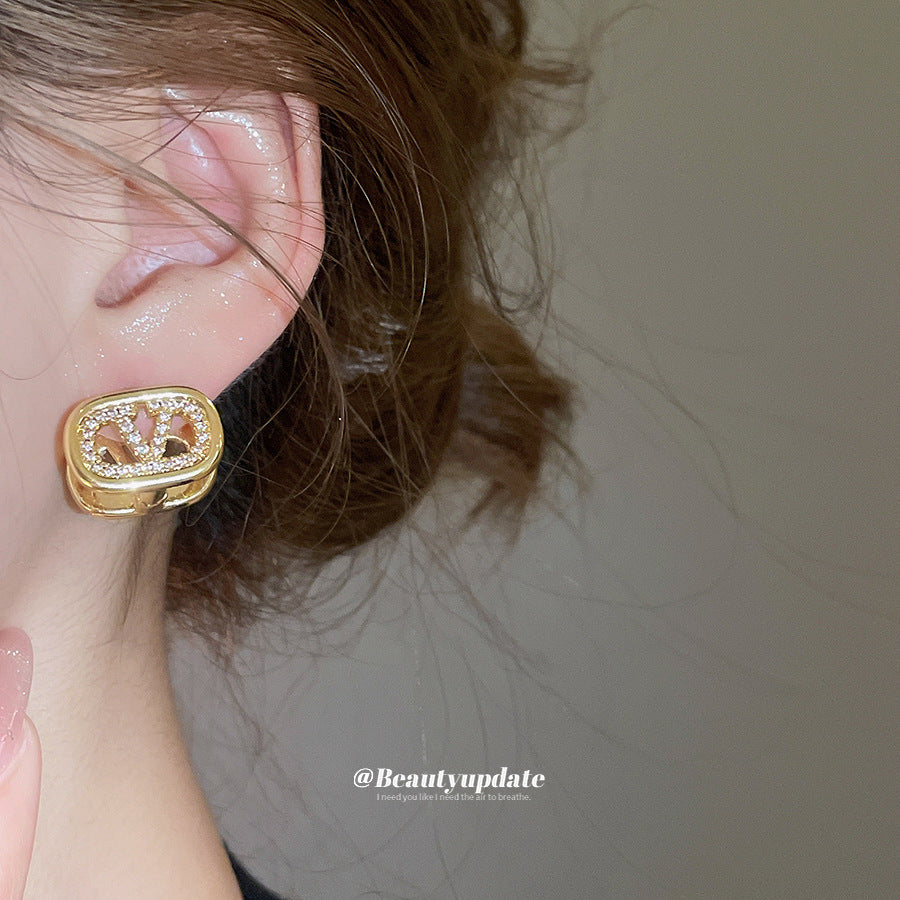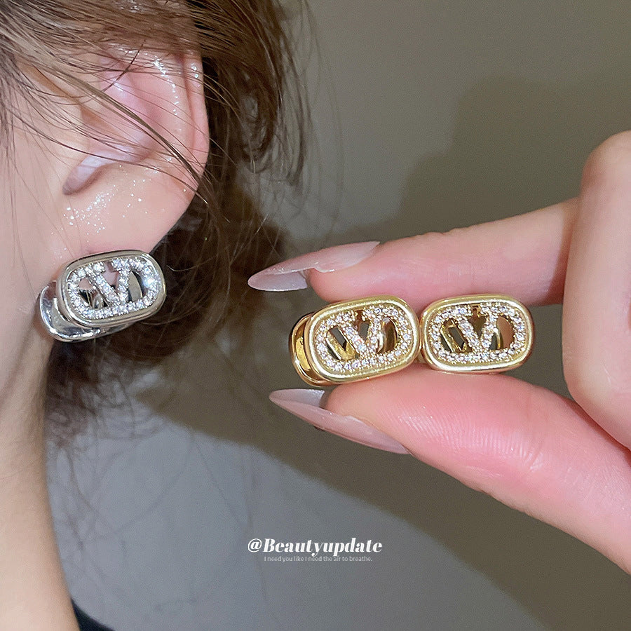 A廠【WE4175】18k真金電鍍鋯石橢圓字母雙面耳扣法式宮廷風耳環輕奢高級感耳飾 25.09-1