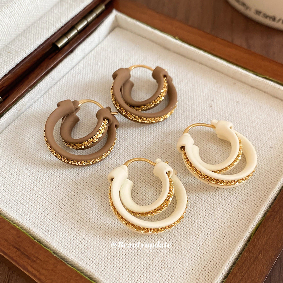 A廠【WE4290】18k真金電鍍雙層圓形吊墜耳環歐美時尚復古耳環小眾設計感耳飾女 25.09-3