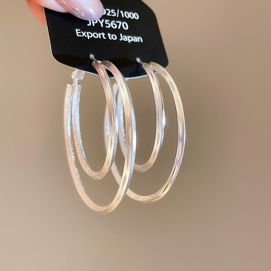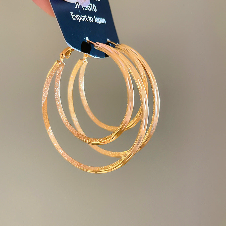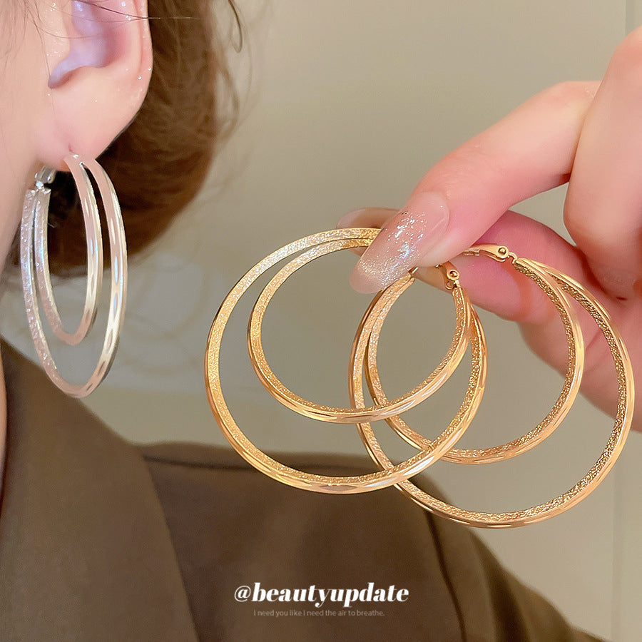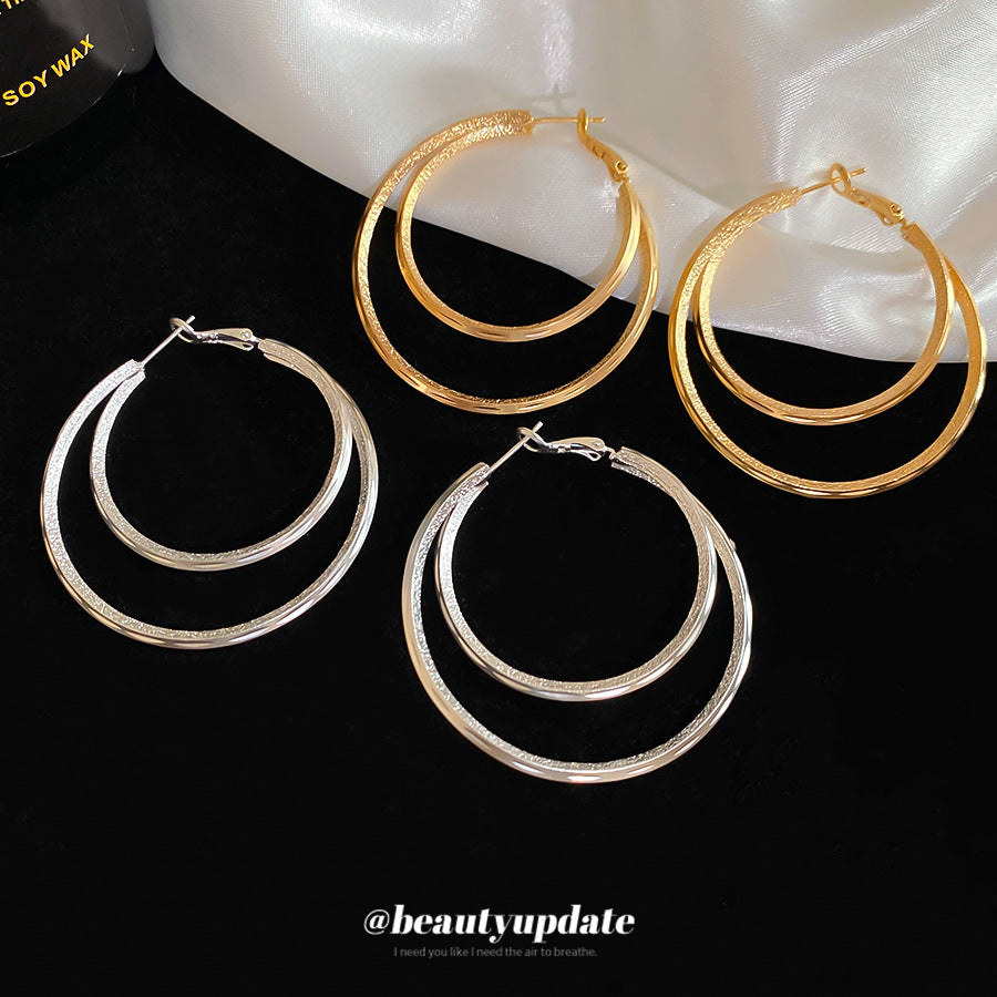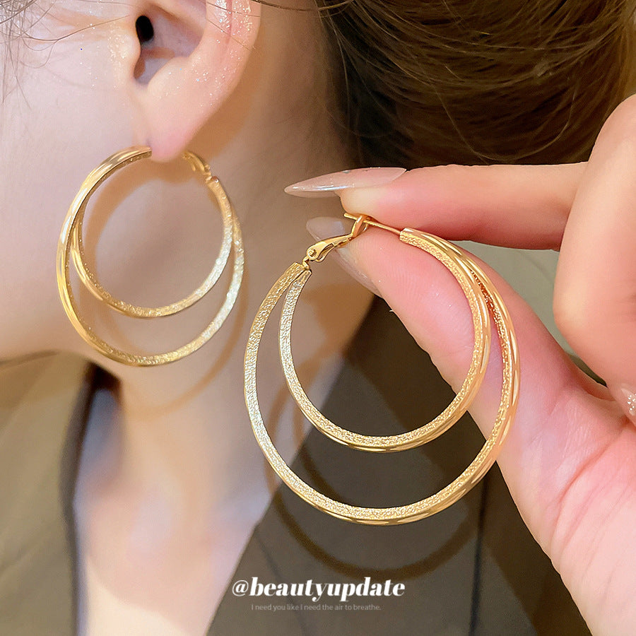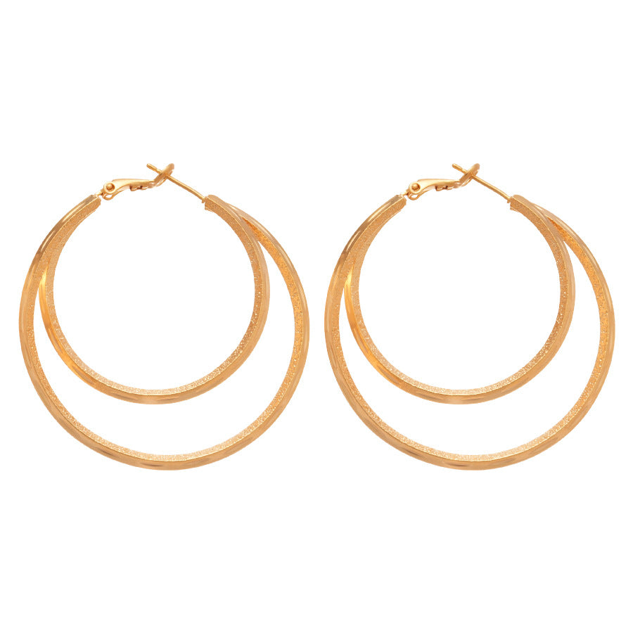 A廠【WE4596】18k真金電鍍霧面雙層圓形吊墜耳圈歐美耳環耳環小眾設計感耳飾女 25.09-3