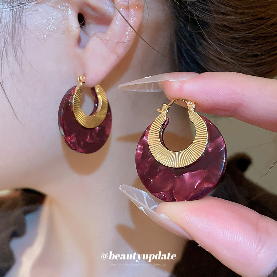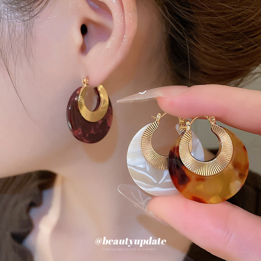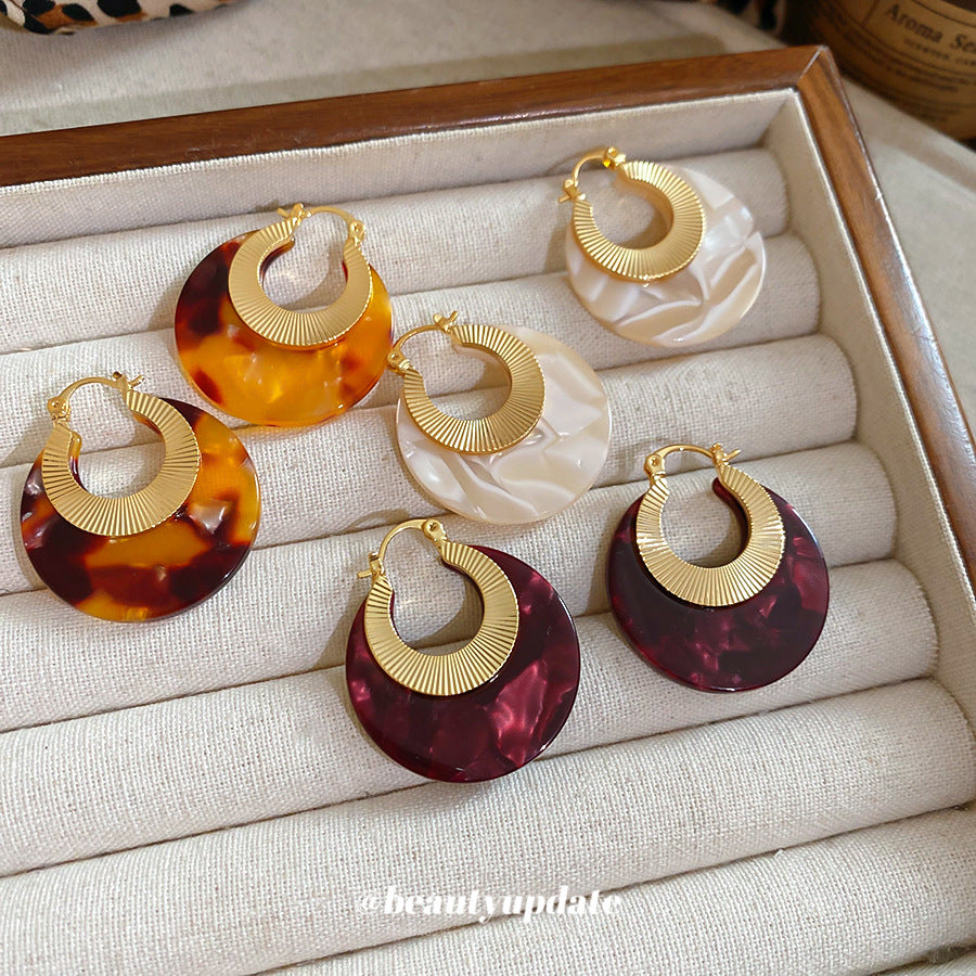 A廠【WE4666】歐美醋酸板暈染圓形吊墜耳環時尚百搭氣質耳環個性小眾設計感耳環 25.09-4