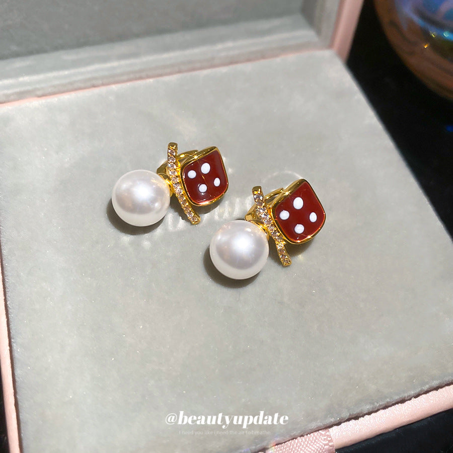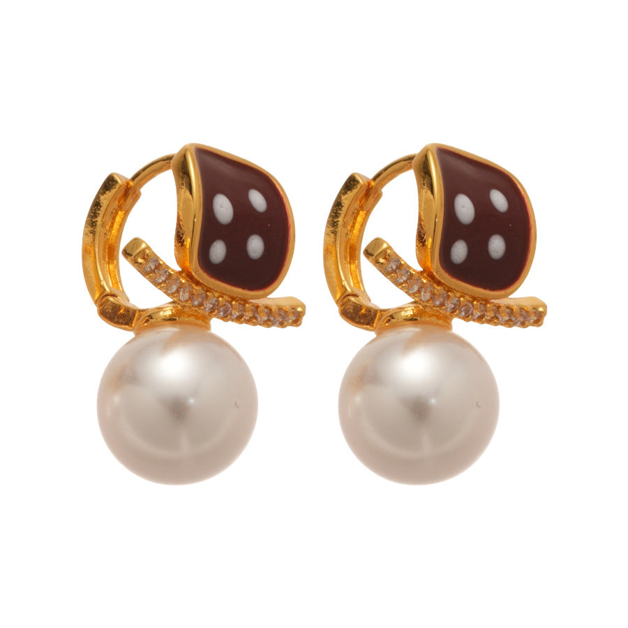 A廠【WE4725】18K真金電鍍安克拉紅珍珠吊墜耳扣宮廷風耳環耳環輕奢高級感耳飾 25.10-2