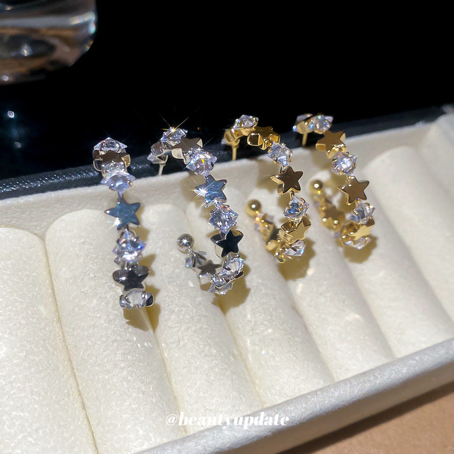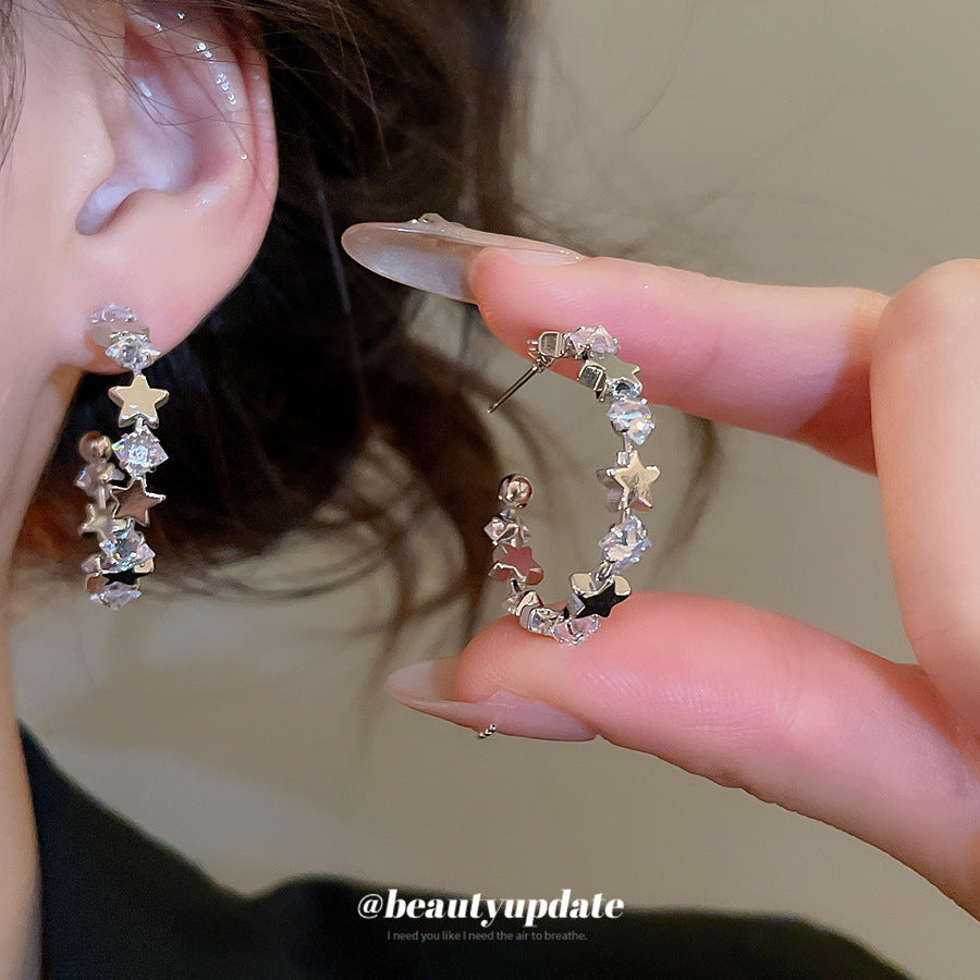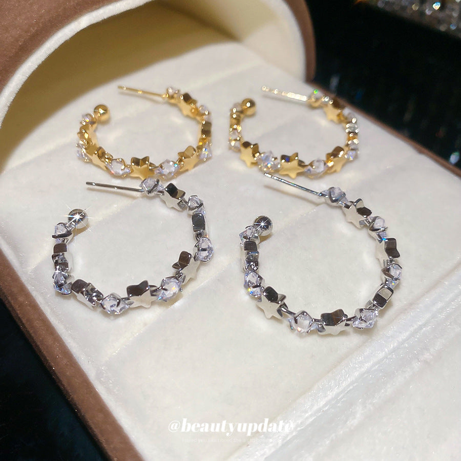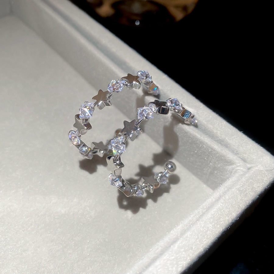 A廠【WE4838】925銀針超閃鋯石星星幾何C形耳環簡約百搭時尚耳環輕奢高級感耳飾女 25.10-5