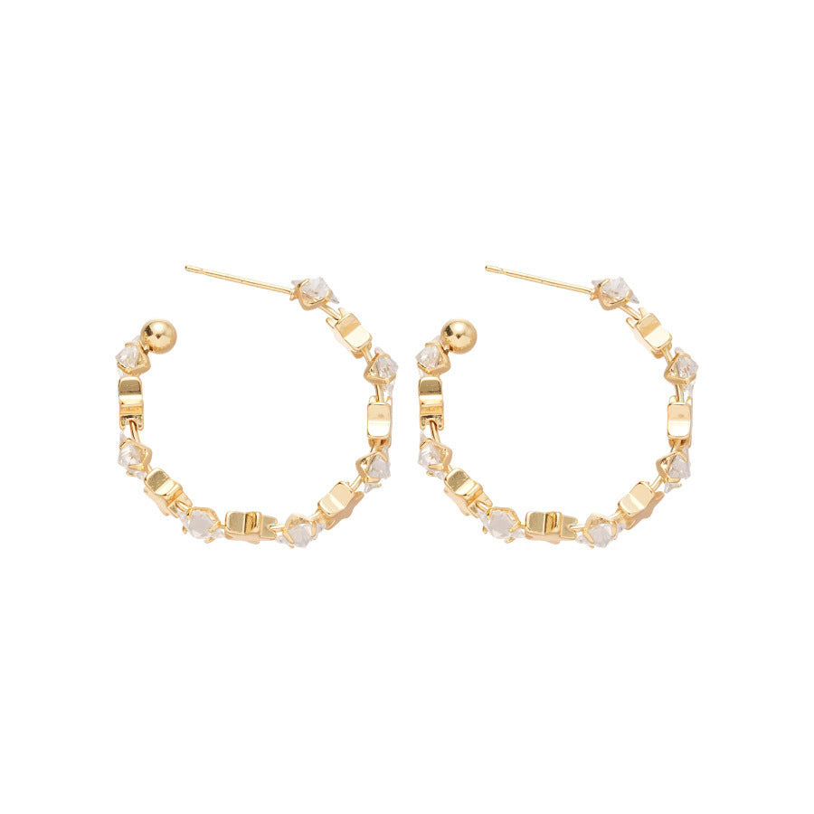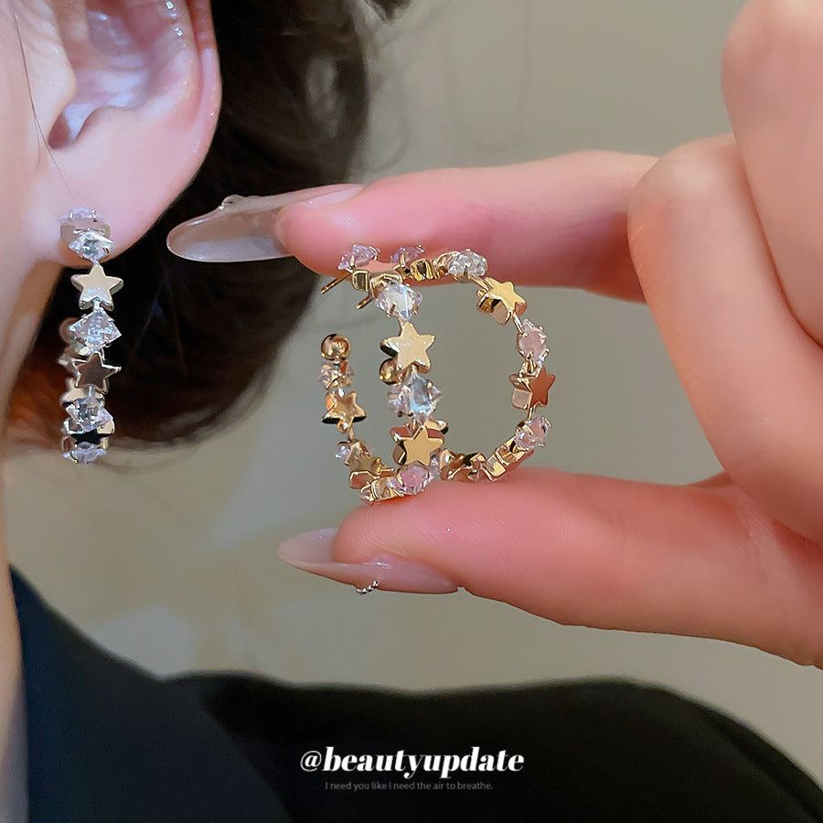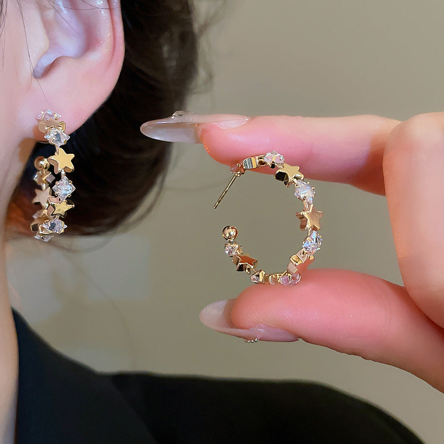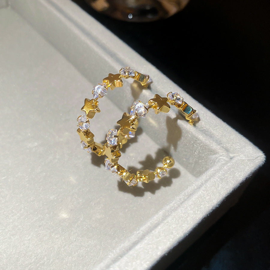 A廠【WE4838】925銀針超閃鋯石星星幾何C形耳環簡約百搭時尚耳環輕奢高級感耳飾女 25.10-5