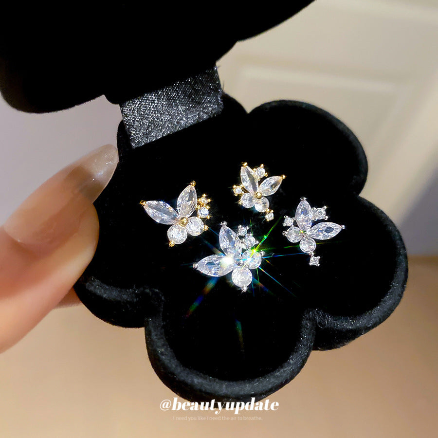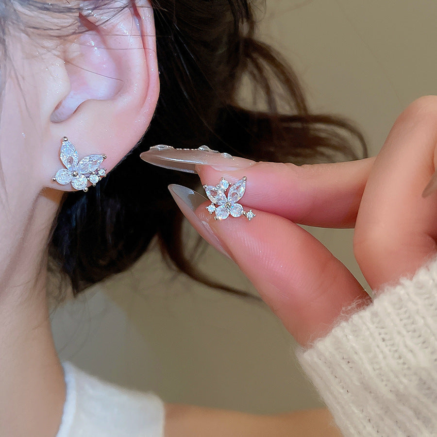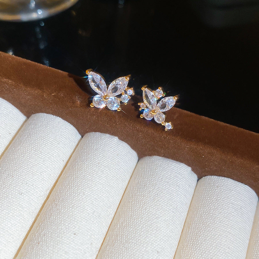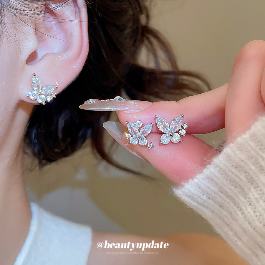 A廠【WE4865】真金電鍍925銀針鋯石蝴蝶耳環輕奢高級感時尚耳環極簡氣質通勤耳環女 25.11-1
