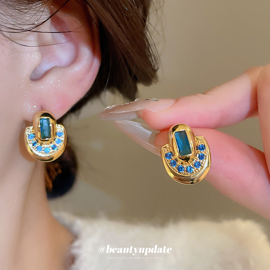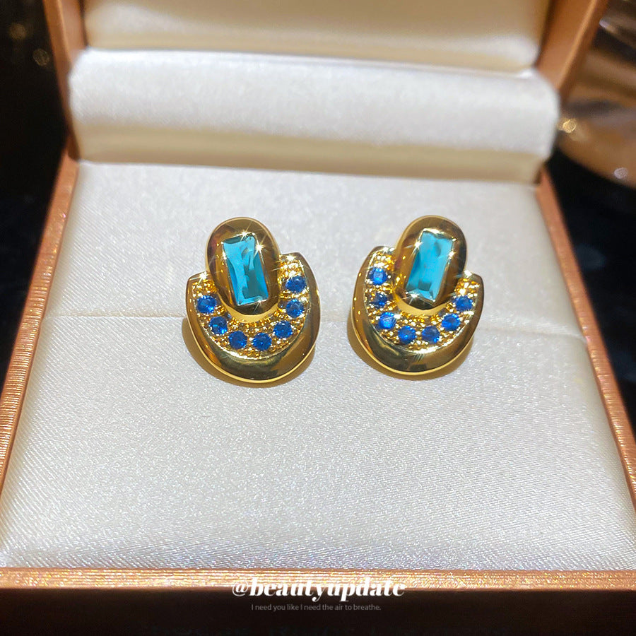 A廠【WE4914】18K真金電鍍925銀針鋯石橢圓形吊墜耳環宮廷風耳環輕奢高級感耳飾女 25.10-4