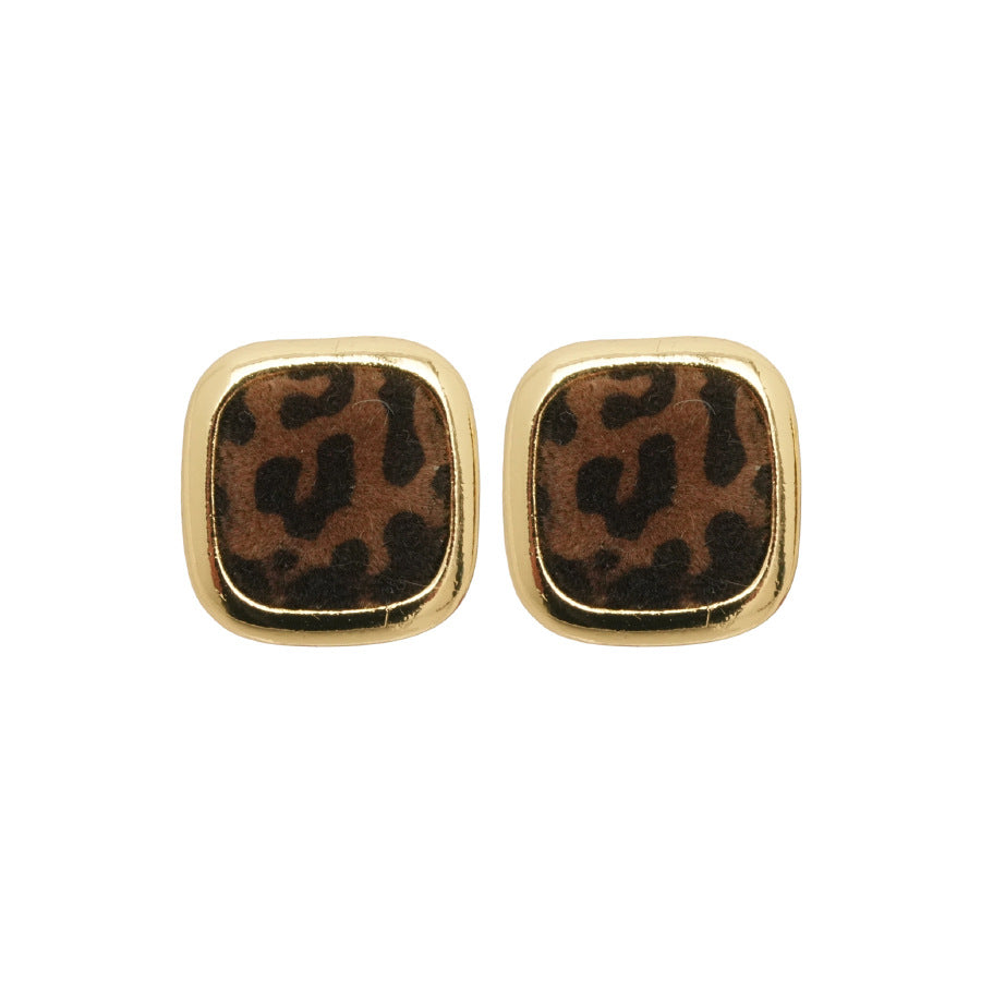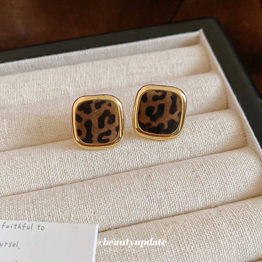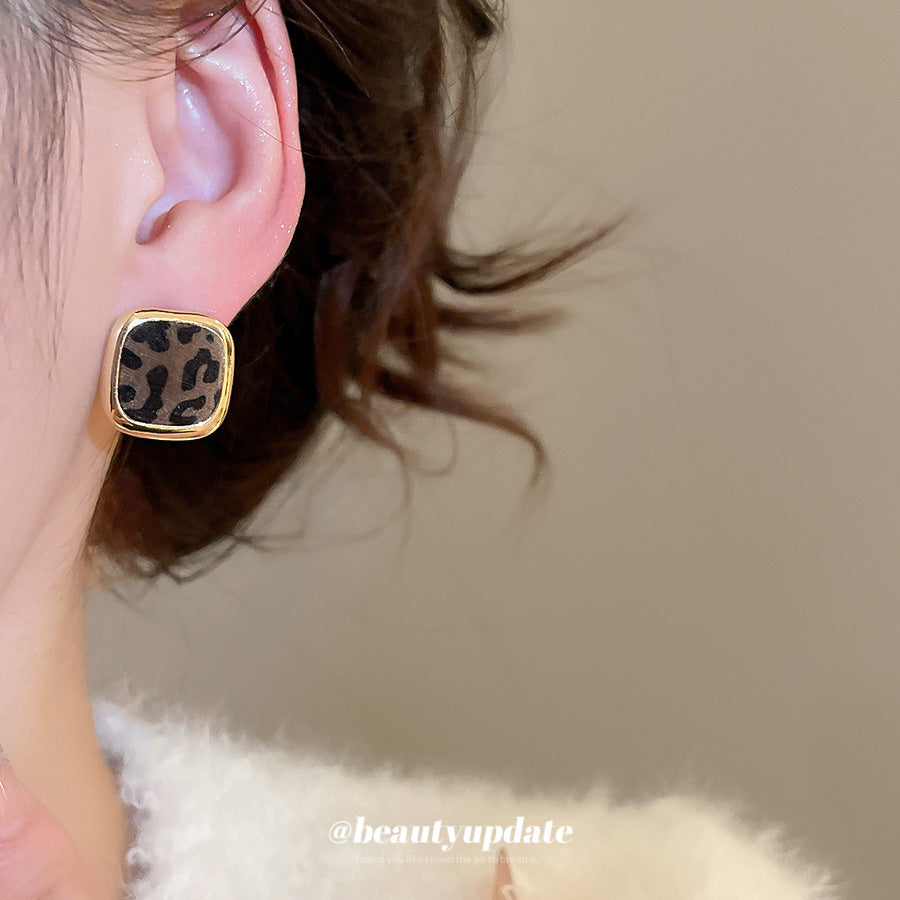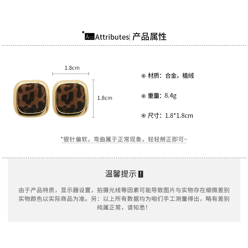A廠【WE4949】925銀針秋冬復古植絨豹紋幾何方形耳環美拉德簡約耳環小眾高級感耳飾 25.10-5